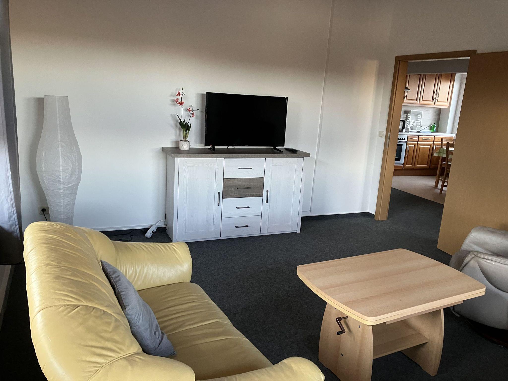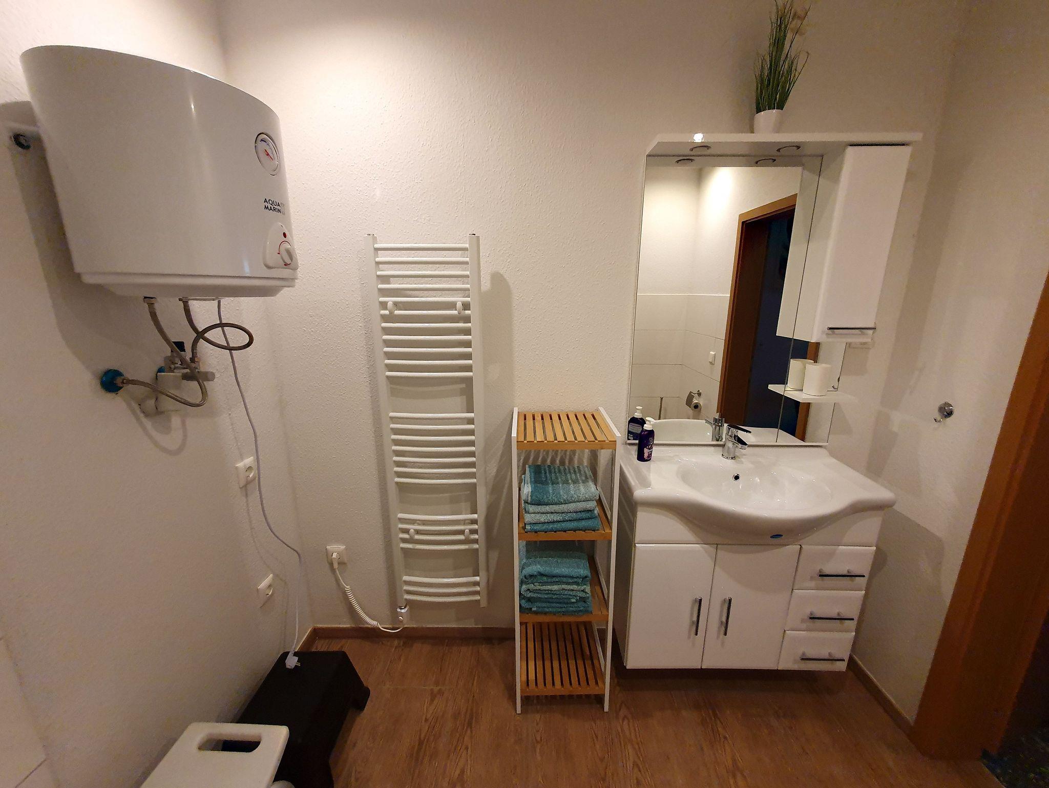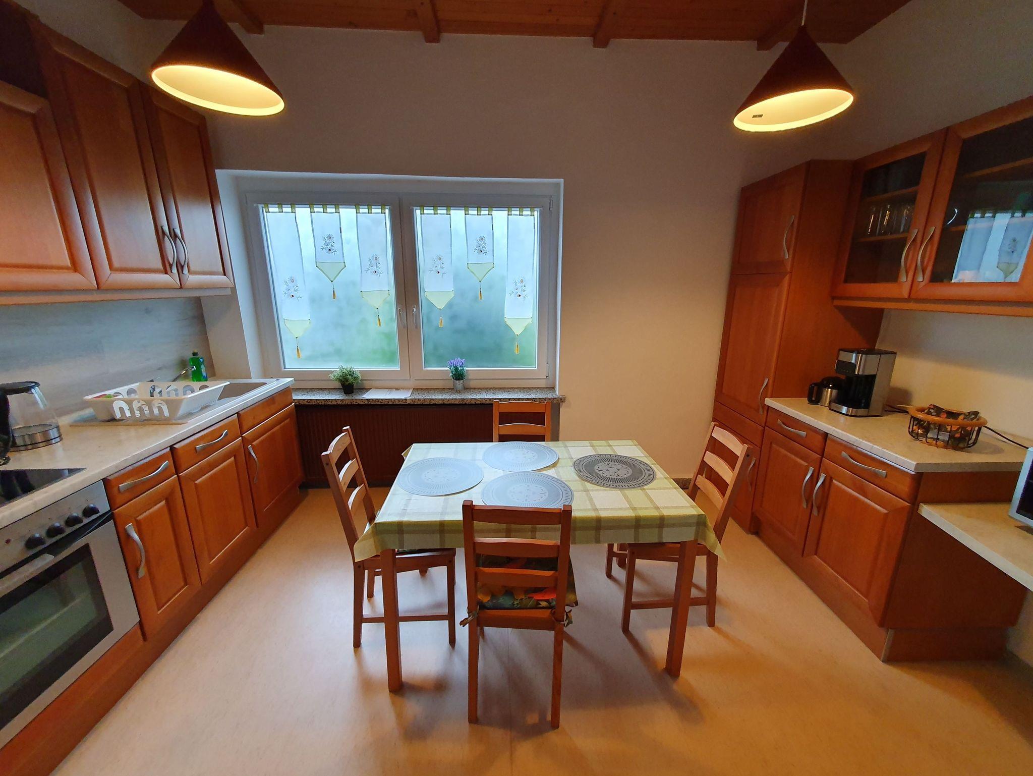 Willkommen in unserer Ferienwohnung, welche sich auf unserem Grundstück befindet und über eine Treppe erreichbar ist. Sie verfügt über zwei Schlafzimmer, Wohnzimmer, Küche und Bad. Schlafzimmer 1 ist mit einem Doppelbett 180X200 cm ausgestattet. Bei Bedarf gibt es auch ein Baby Bett, welches wir Ihnen dazustellen können. Das zweite Schlafzimmer verfügt über zwei Einzelbetten. Das Wohnzimmer ist mit 2 und 3 Sitz Sofa und mit einem TV-SAT Anschluss (inkl. DVD Player) ausgestattet.