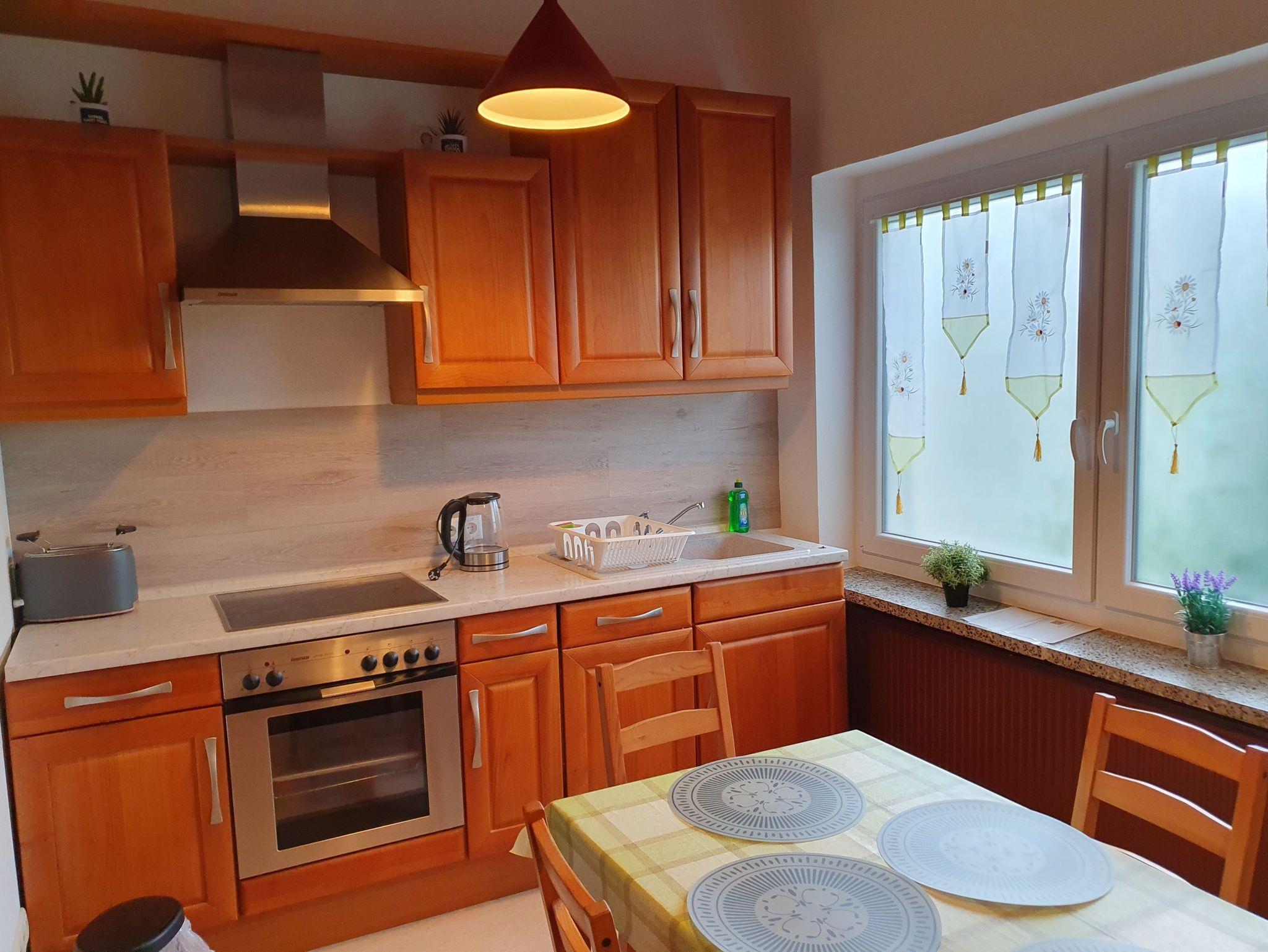 WLAN steht Ihnen kostenlos zur Verfügung. Zur Ausstattung der Küche gehören E-Herd, Spülmaschine, Mikrowelle, Wasserkocher, Kaffeemaschine und Toaster.
