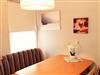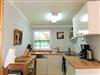 Die Küche hat eine kleine Sitzecke und ist mit Kühlschrank, Geschirrspüler, Elektroherd, Toaster, Wasserkocher, Kaffeemaschine und einem Radio ausgestattet.