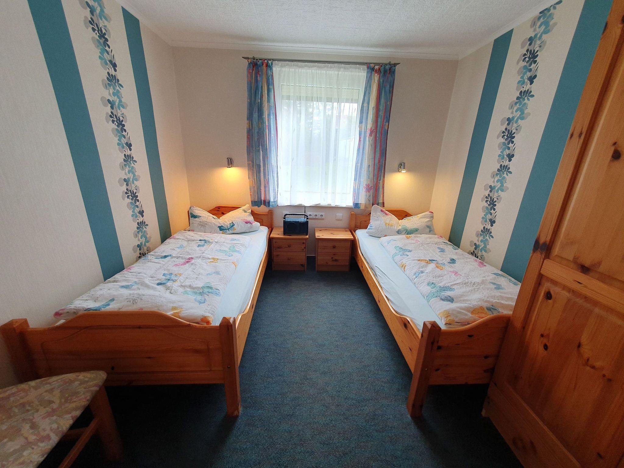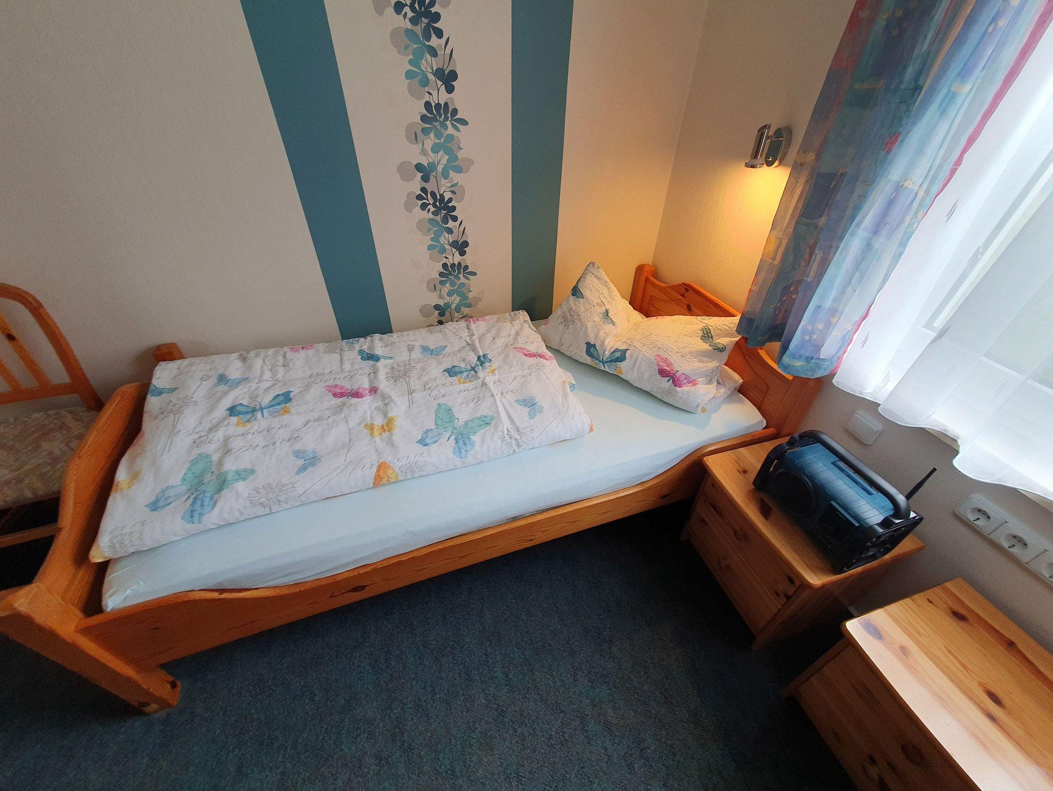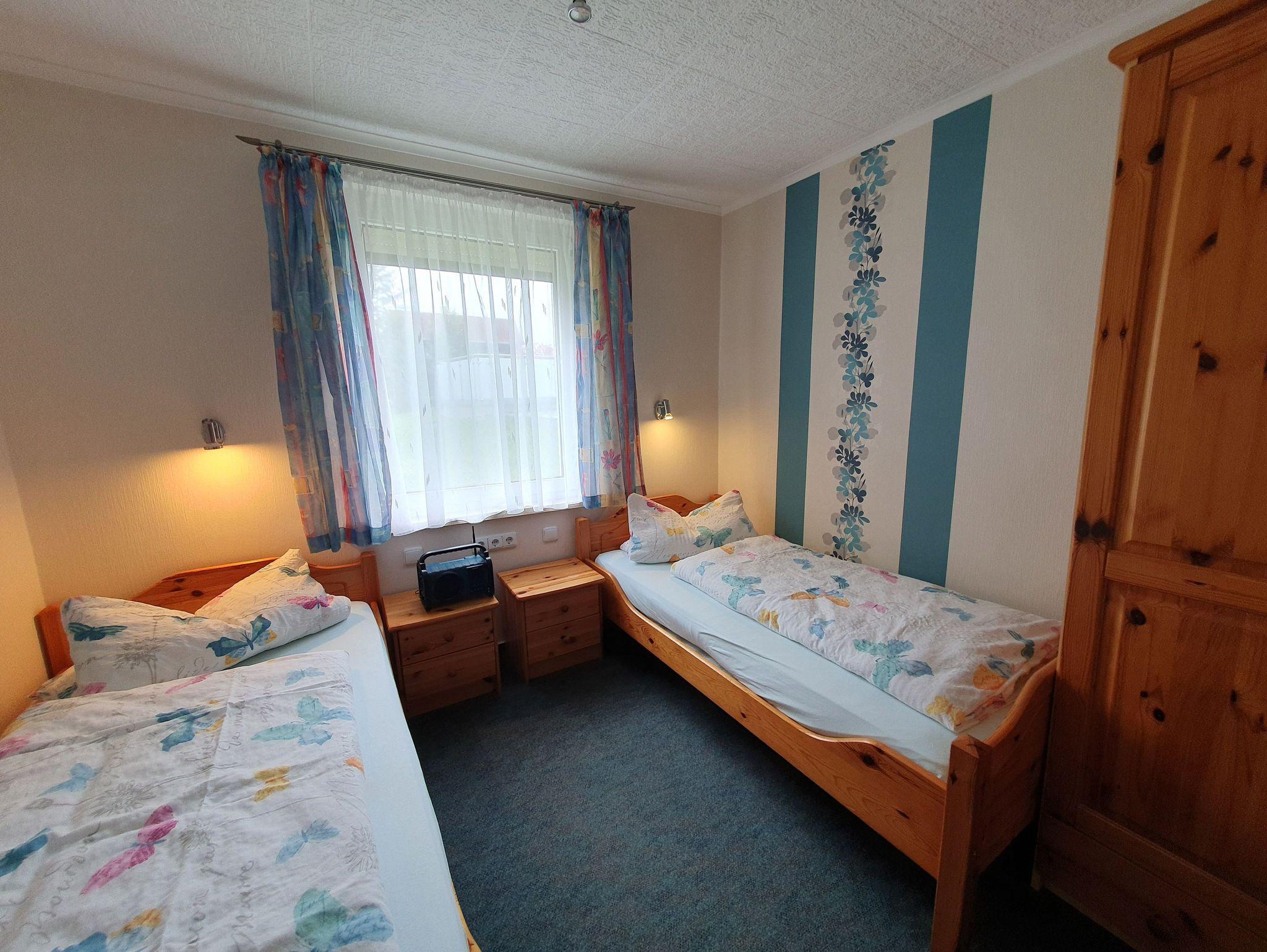 Es gibt zwei getrennte Schlafzimmer, eins mit Doppelbett, das andere mit zwei Einzelbetten sorgen für einen angenehmen Schlafkomfort. Alle Betten haben eine Höhenverstellung am Kopfende. Kissen, Betten, Bettwäsche und Handtücher sind vorhanden.