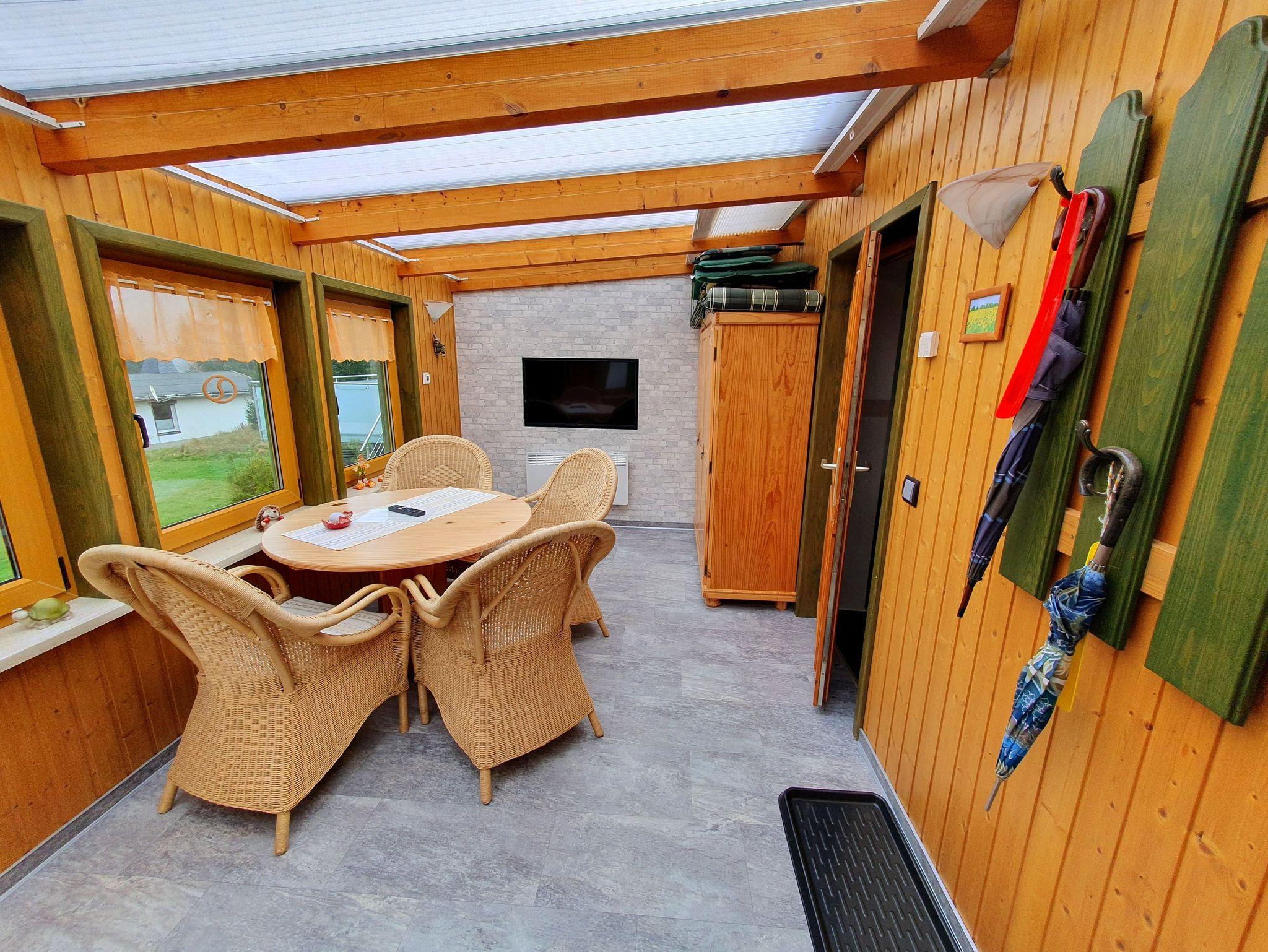 Genießen Sie entspannte Stunden im großzügigen Wohnzimmer mit Sat-TV, Radio, WLAN und Kaminofen. Zwei separate Schlafzimmer, eine komplett eingerichtete Küche sowie ein Badezimmer mit Dusche/WC sorgen für Ihren Komfort. Der Wintergarten mit TV und Radio sowie die überdachte Terrasse mit Gartenmöbeln laden zum Verweilen ein. Ein neu angebauter Sauna- und Wellnessbereich mit Sonnenterrasse bietet Ihnen die perfekte Möglichkeit zum Entspannen.
