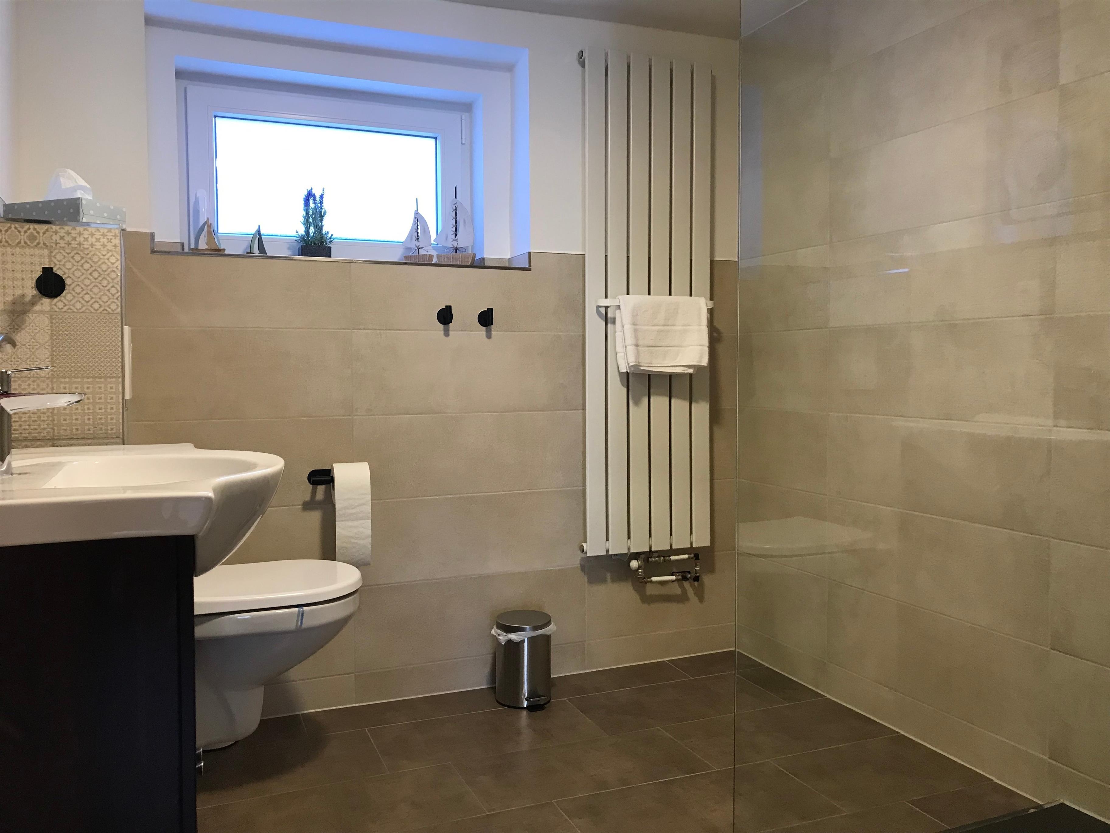 Neben einem Duschbad mit begehbarer Dusche und Fenster haben wir ein (wirklich niedliches) Gäste-WC vorgesehen.