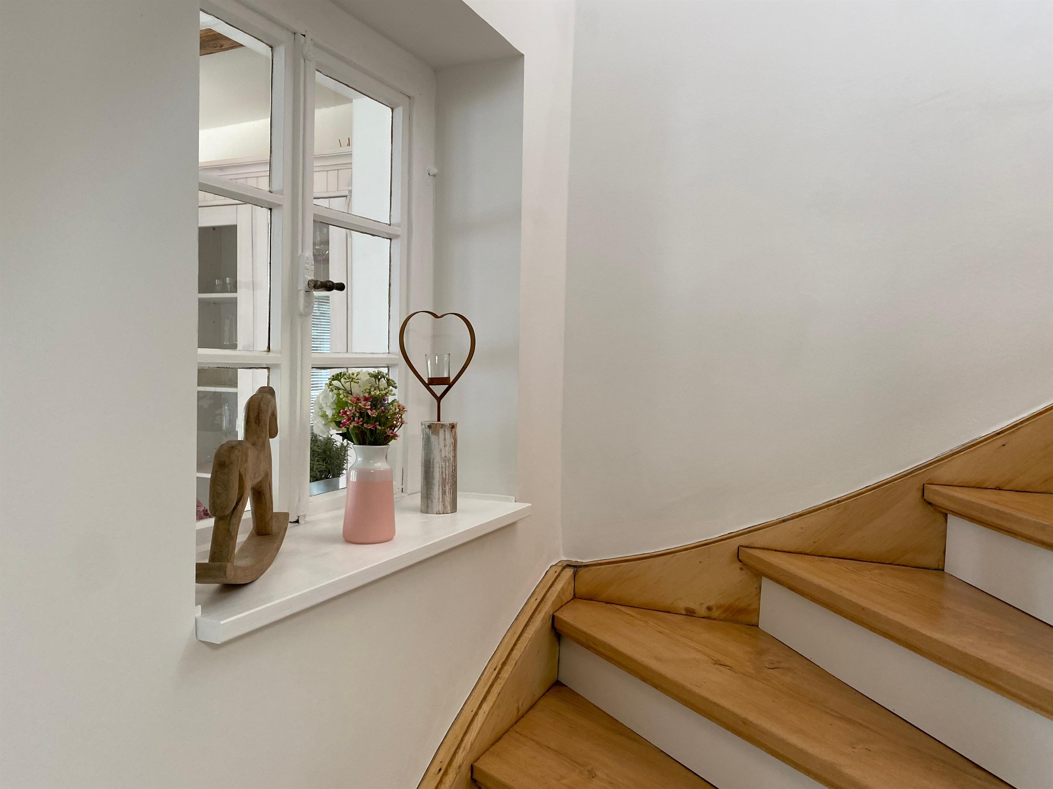 Neben dieser alten Treppe konnten wir glücklicherweise im gesamten oberen Bereich des Hauses auch die ursprünglichen Holzdielen erhalten.