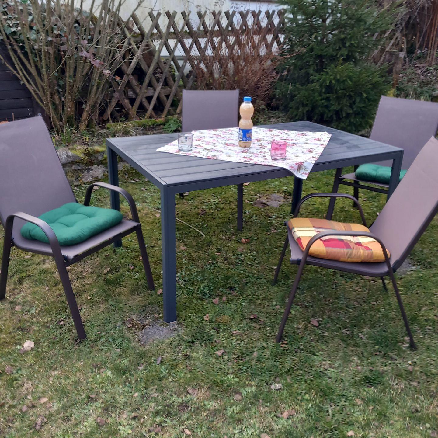 Der Garten verfügt über Sitzmöglichkeiten. So können Sei den Tag in gemütlicher runde Revue passieren lassen