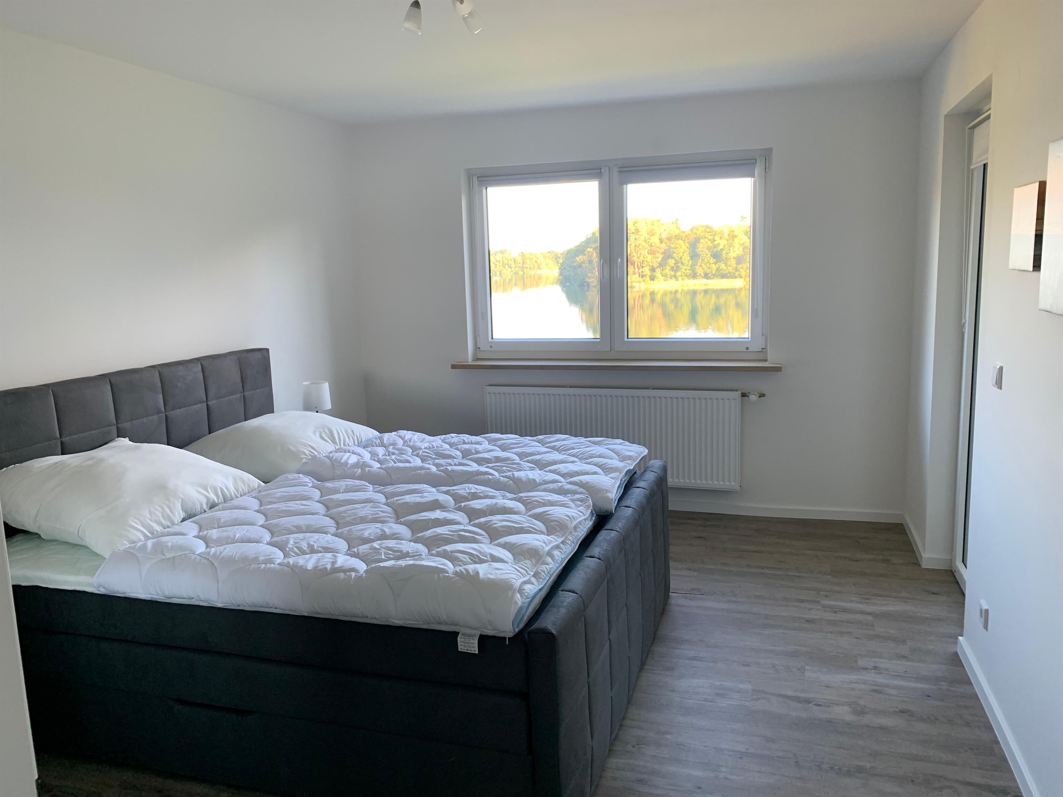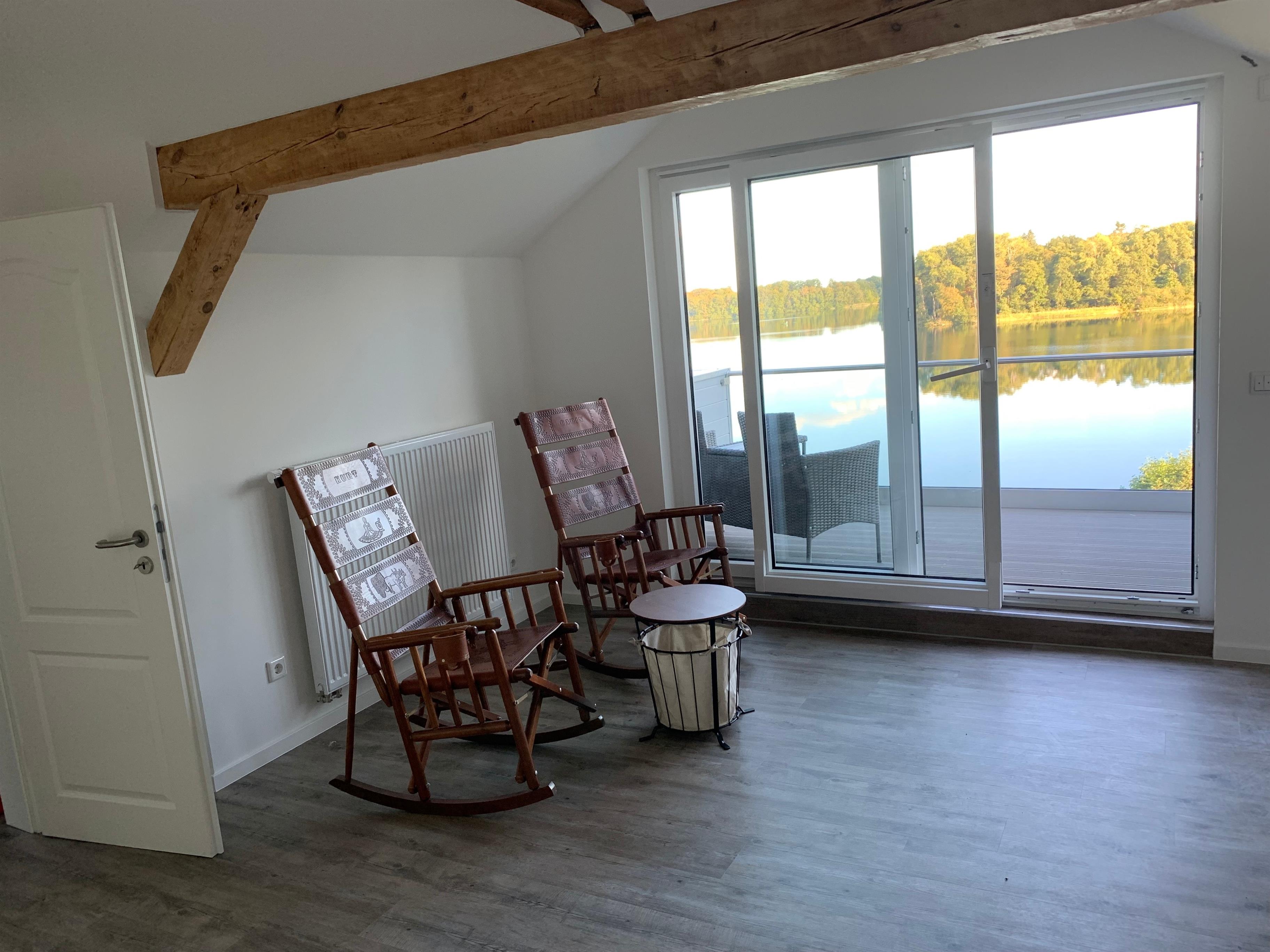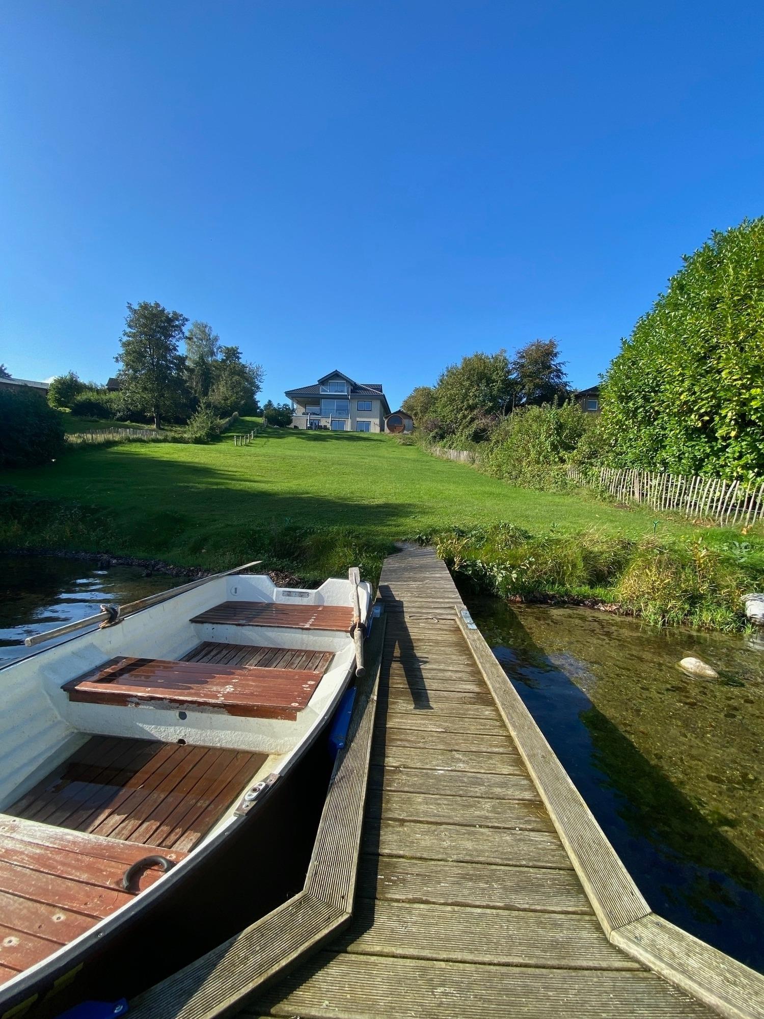 Die Unterkunft bietet eine unvergleichbare Aussicht auf den Stocksee, zu dem man durch das Grundstück direkten Zugang erhält. Der großzügige Garten von dem aus zum Badesteg sowie Ruderboot gelangt werden kann, ist mit modernen Lounge- und Gartenmöbeln ausgestattet.