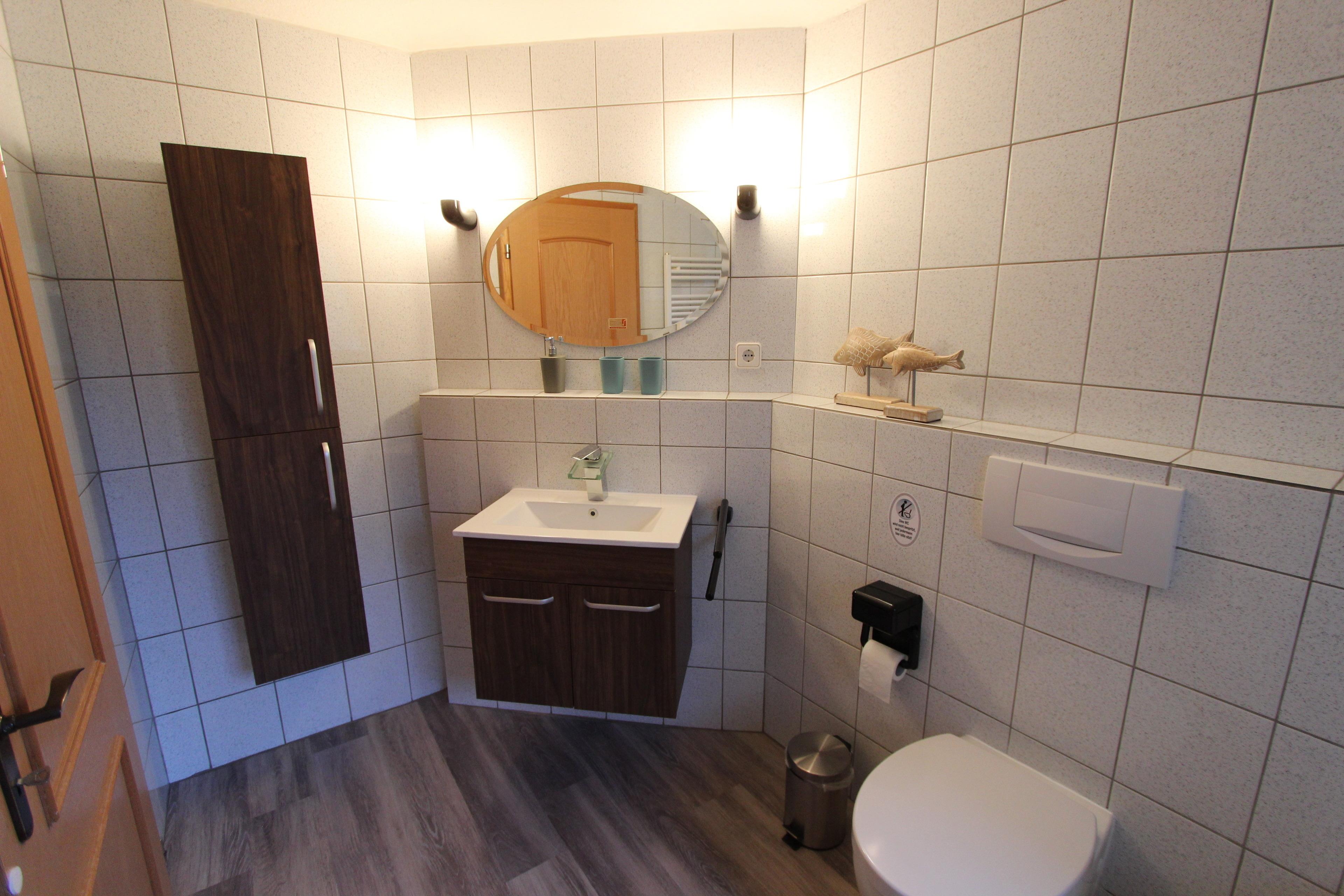 Im allgemeinen Wohnbereich im Erdgeschoss mit Wohnzimmer, großer (Wohn-) Küche sowie bodengleichem Duschbad sorgt die Fußbodenheizung in den kalten Monaten für ein angenehmes Wohnklima.