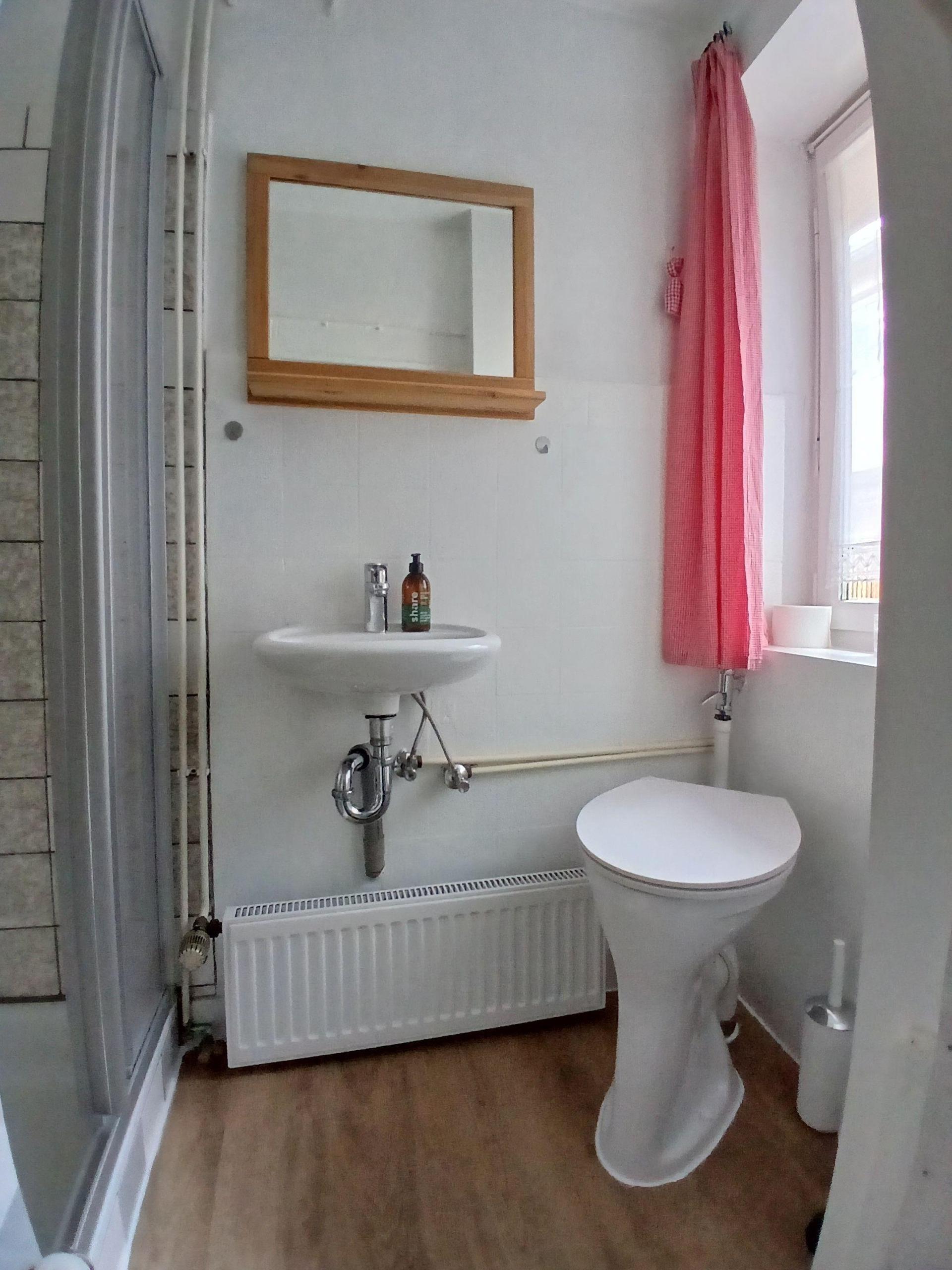 Die vollausgestattete Küche im OG hat alles, um ihren Aufenthalt so angenehm wie möglich zu machen. Geschirrspüler, 4 Platten-Herd mit Backofen, große Kühl-/Gefrierkombi, Filterkaffeemaschine, Wasserkocher, Toaster, Senseo-Pad Maschine mit Milchaufschäumer. Von der Küche haben Sie Zugang zur Dachterrasse. Das neue Vollbad mit Fenster im OG hat eine kleine Badewanne, WC und Waschbecken mit Blick in den Garten.