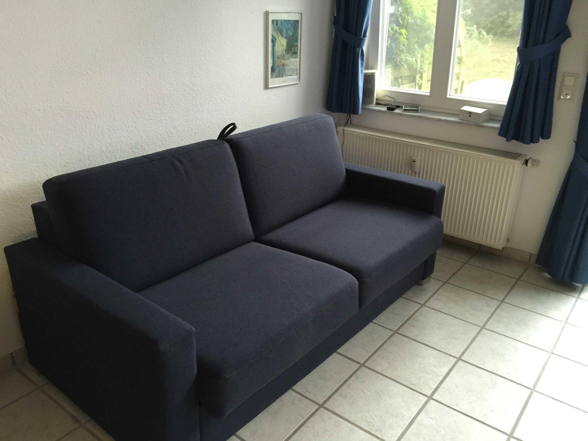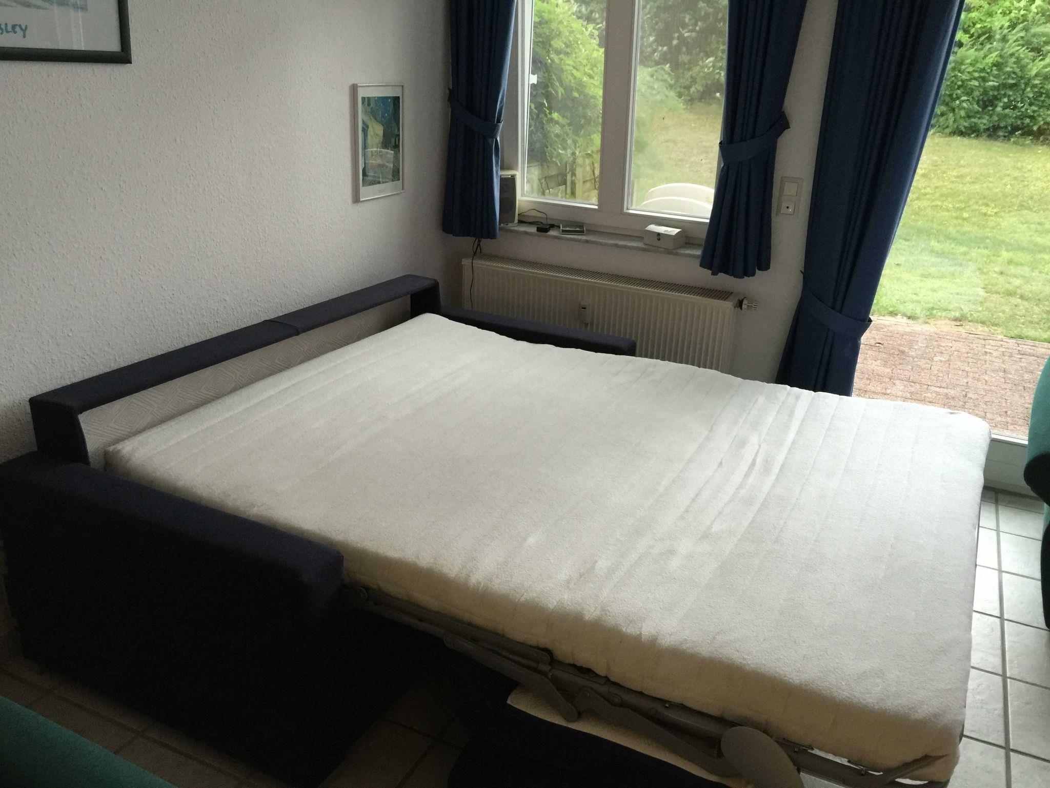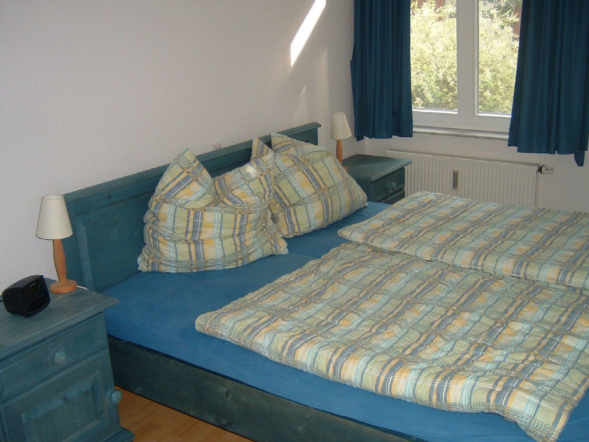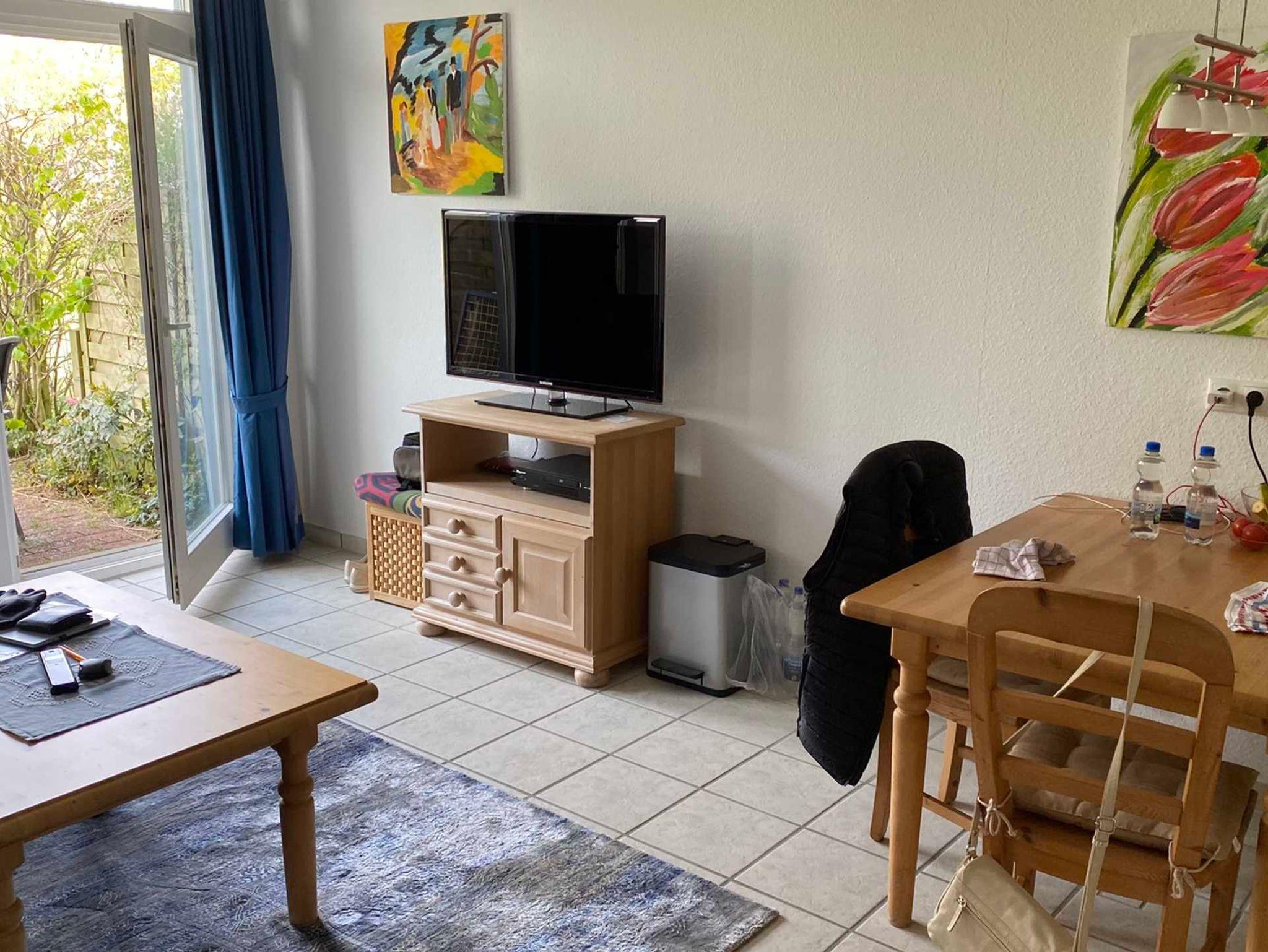 Ferienwohnung 2 Räume, Schlafraum mit Doppelbett, Wohnraum mit neuem Schlafsofa für 2 Personen, Esstisch, Küchenzeile, Sitzgruppe und großer TV-Flachbildschirm, schönes modernes Bad mit Dusche und WC.