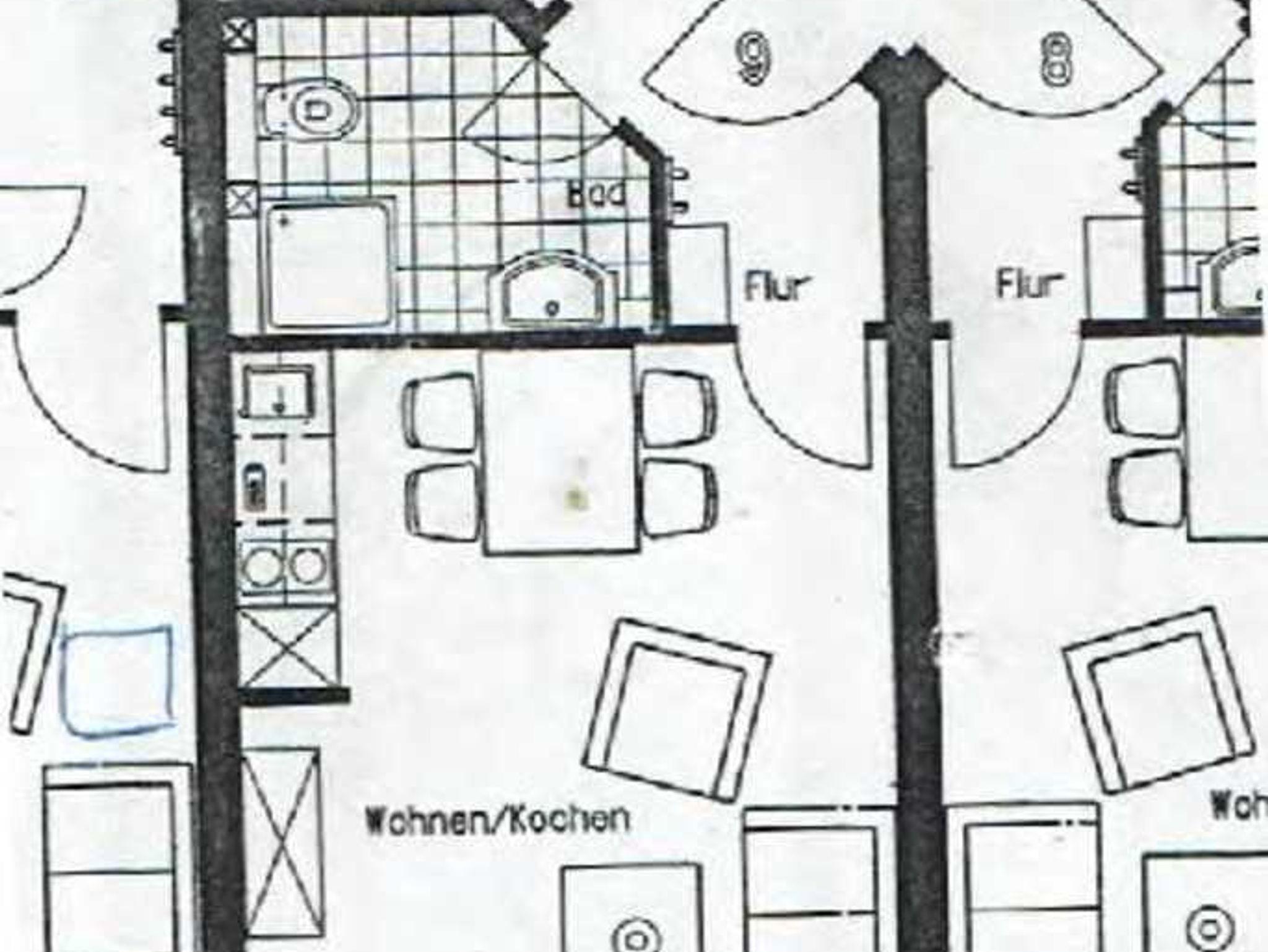 Zur Wohnung gehört ein PKW-Stellplatz, Fahrräder können untergestellt werden. Fahrradverleih bei Bedarf. Der städtische Tennisplatz ist in der Nähe (500m) gelegen. Versorgungsmöglichkeiten: Bäckerei zum Lieb haben und Gaststätte Remise am Ort (150m); Supermärkte, Apotheke, Ärzte in Usedom(3-4km).