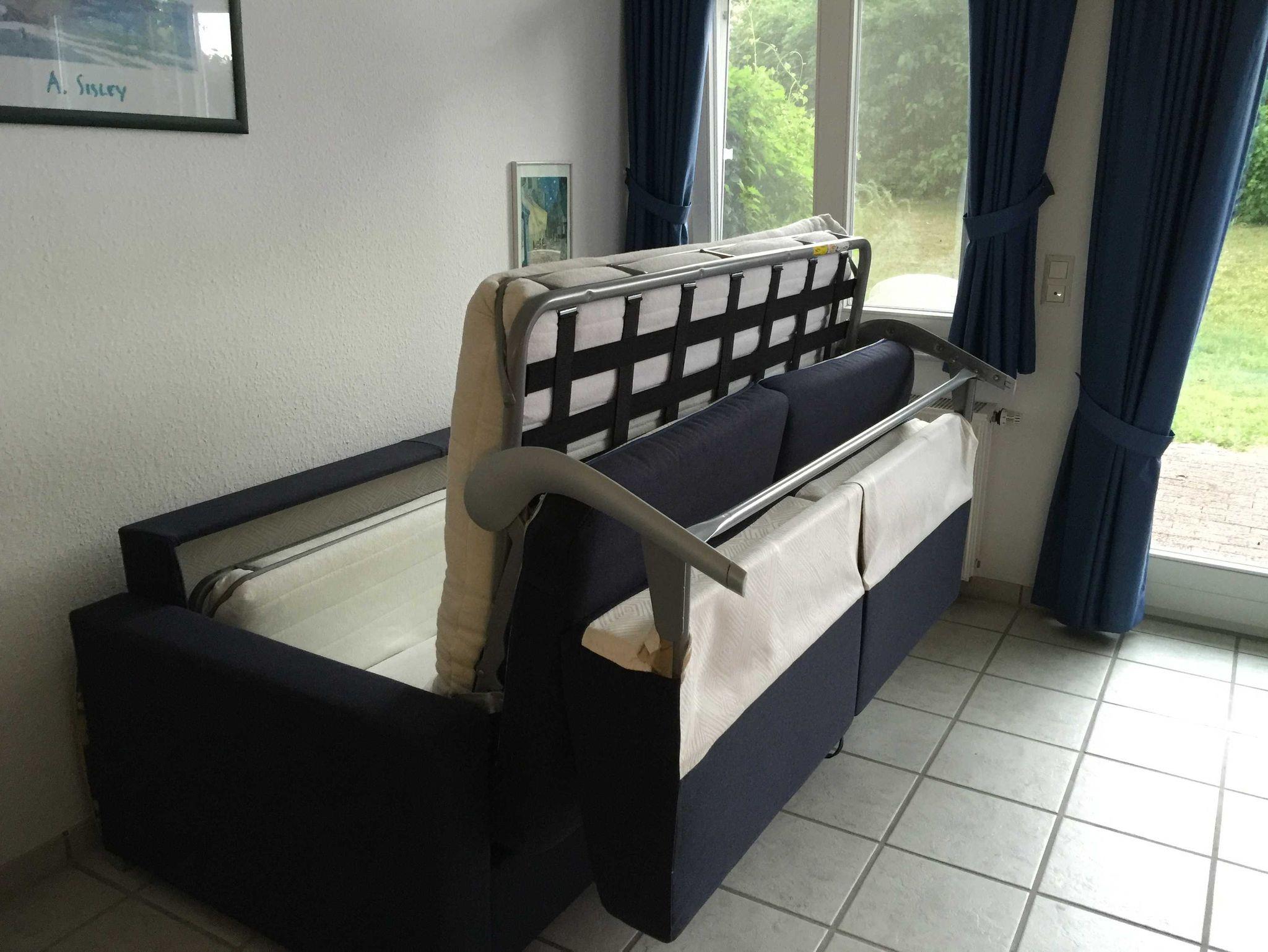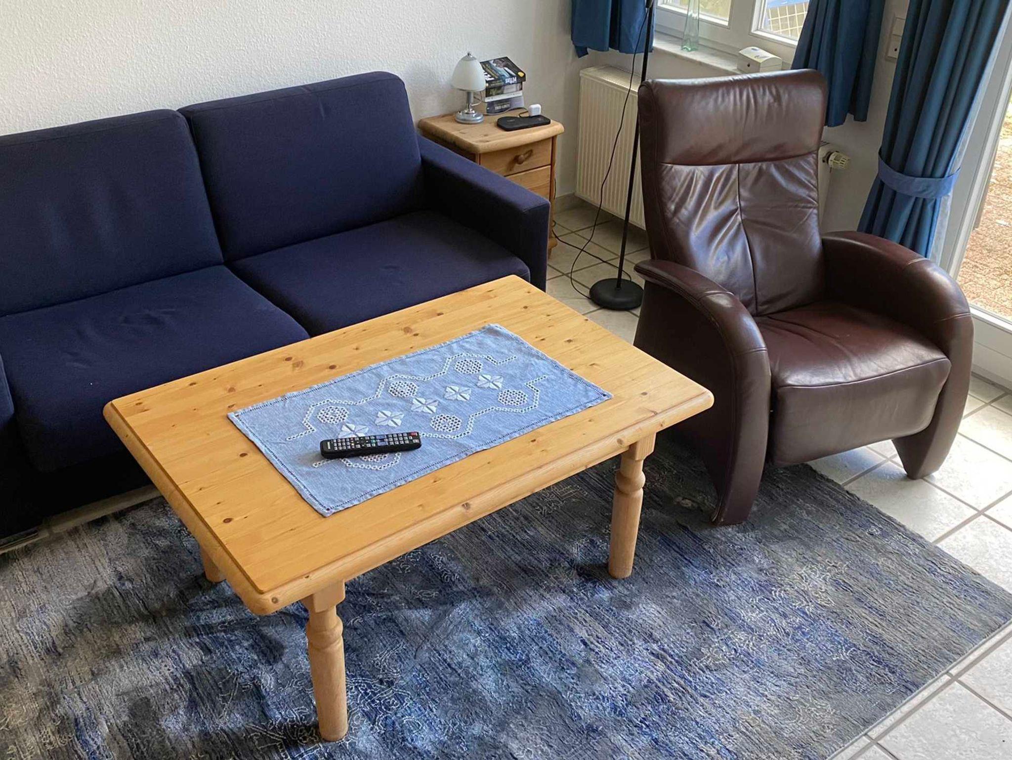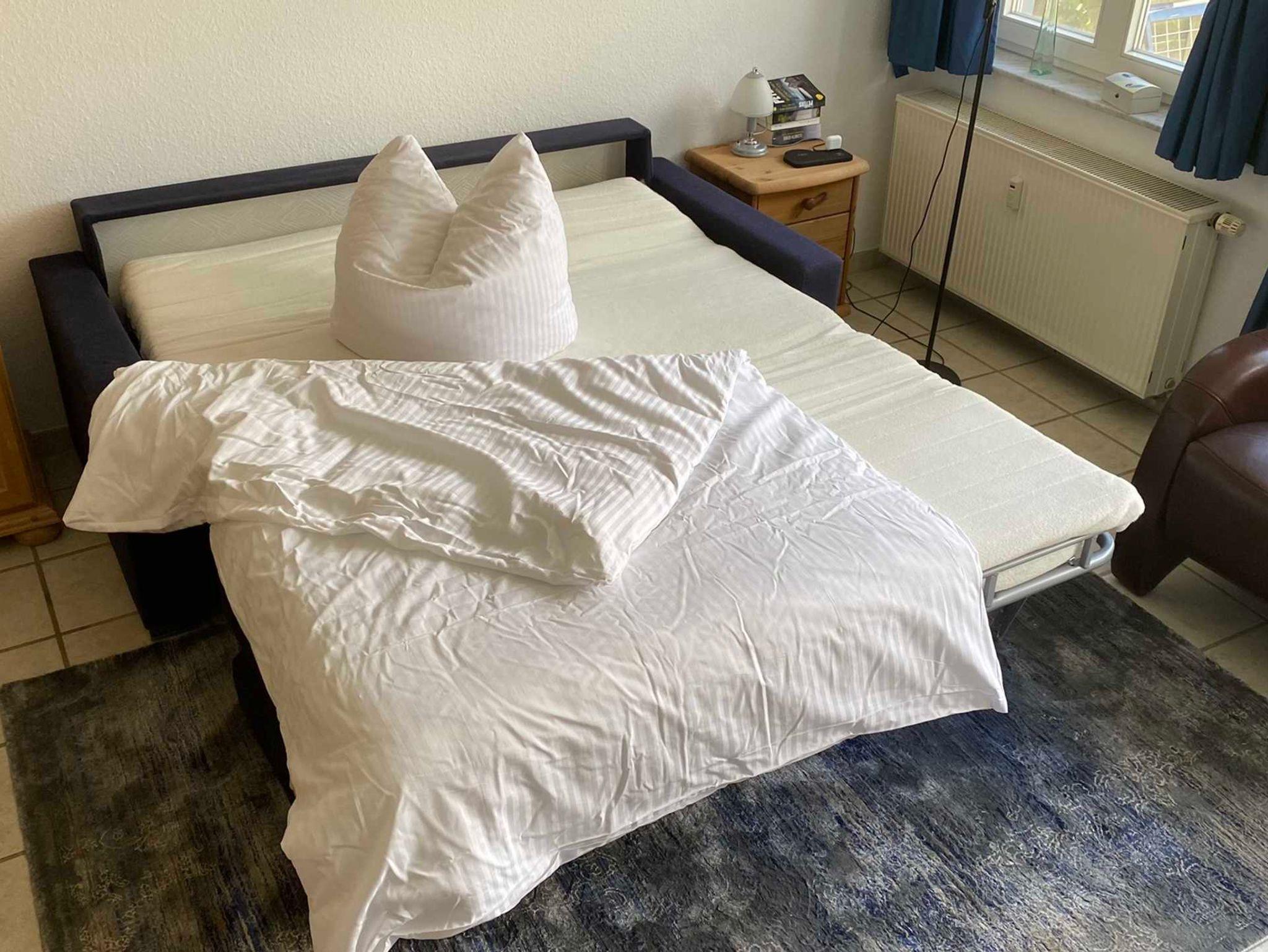 Gemütlicher Leder-Relaxsessel und ausziehbare Schlafcouch.