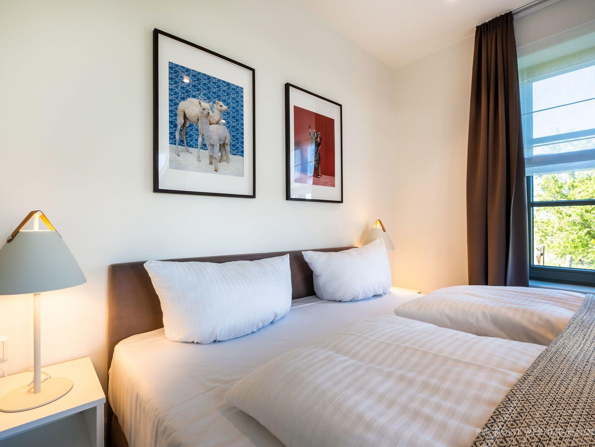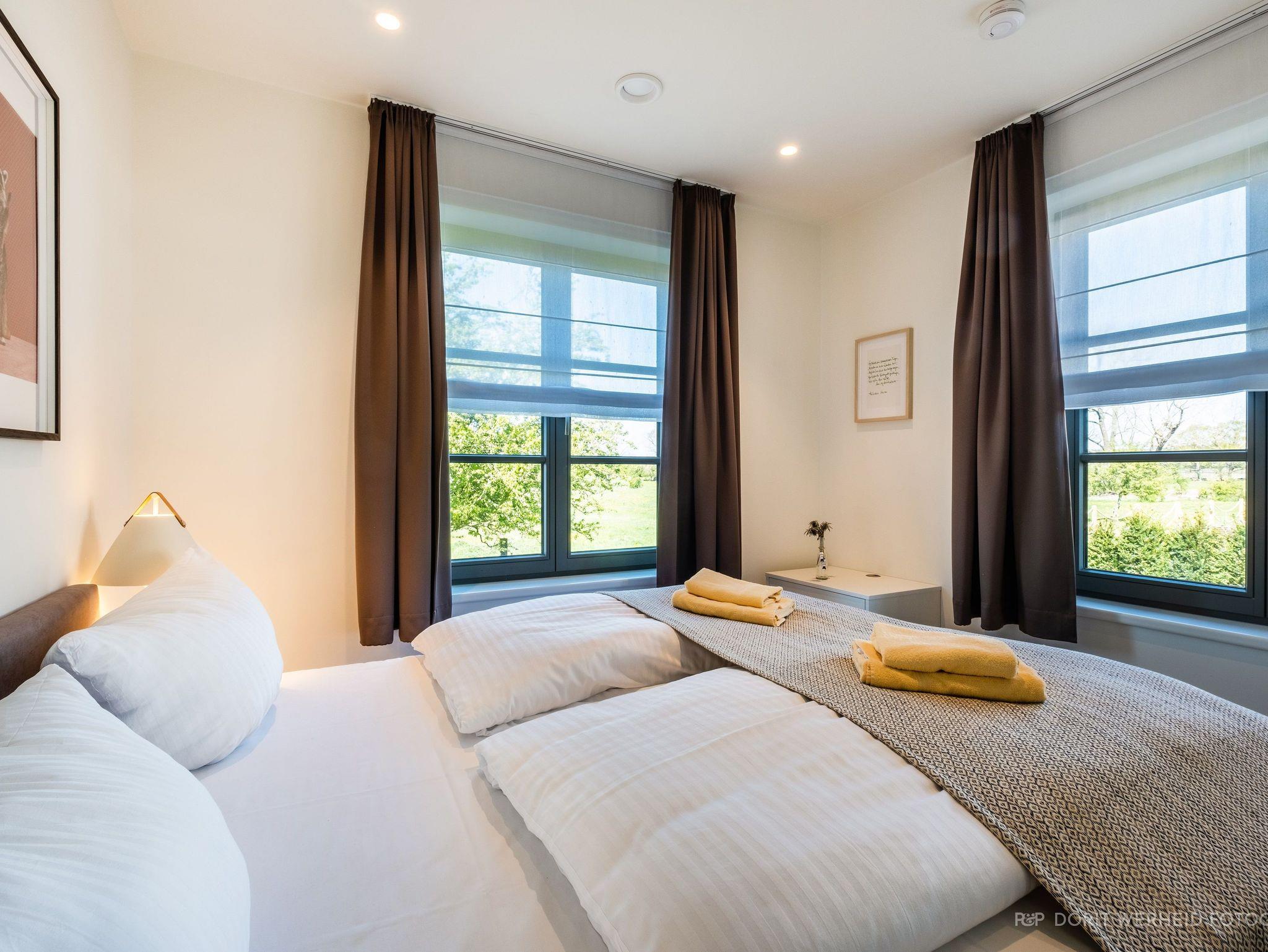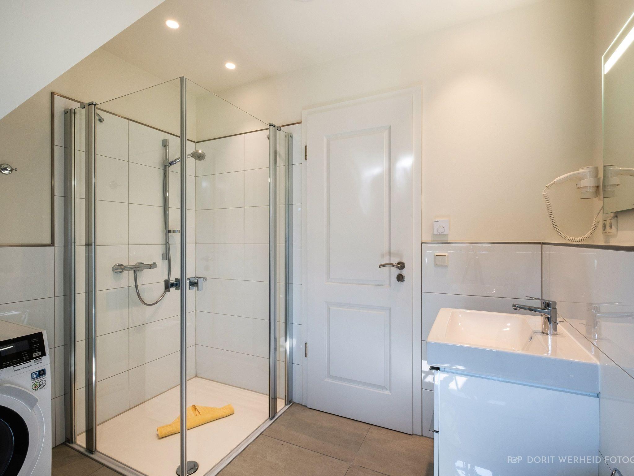 Im Obergeschoss befinden sich drei weitere Schlafzimmer mit TV sowie zwei Bäder. Alle Schlafzimmer verfügen über ein Doppelbett (Boxspringbett 1x 1,80m & 2x 1,60m). Das Master- Schlafzimmer verfügt über ein Badezimmer en Suite mit Waschbecken, WC und bodentiefer Dusche. Das andere Badezimmer verfügt ebenfalls über ein Waschbecken, WC, bodentiefe Dusche und zusätzlich über einen Waschtrockner. Ein Fön steht Ihnen ebenfalls zur Verfügung. Die Schlafzimmer sind zudem verdunkelbar.