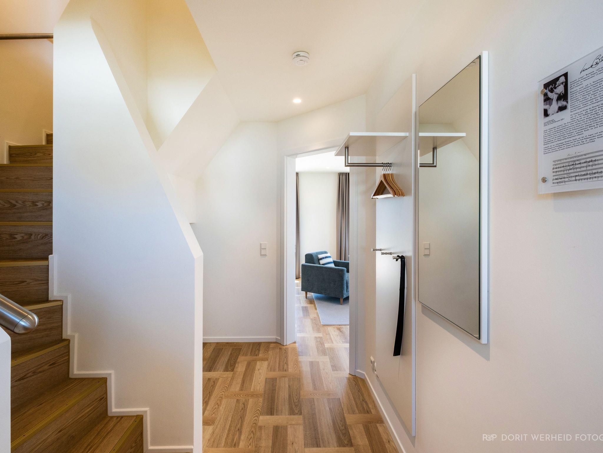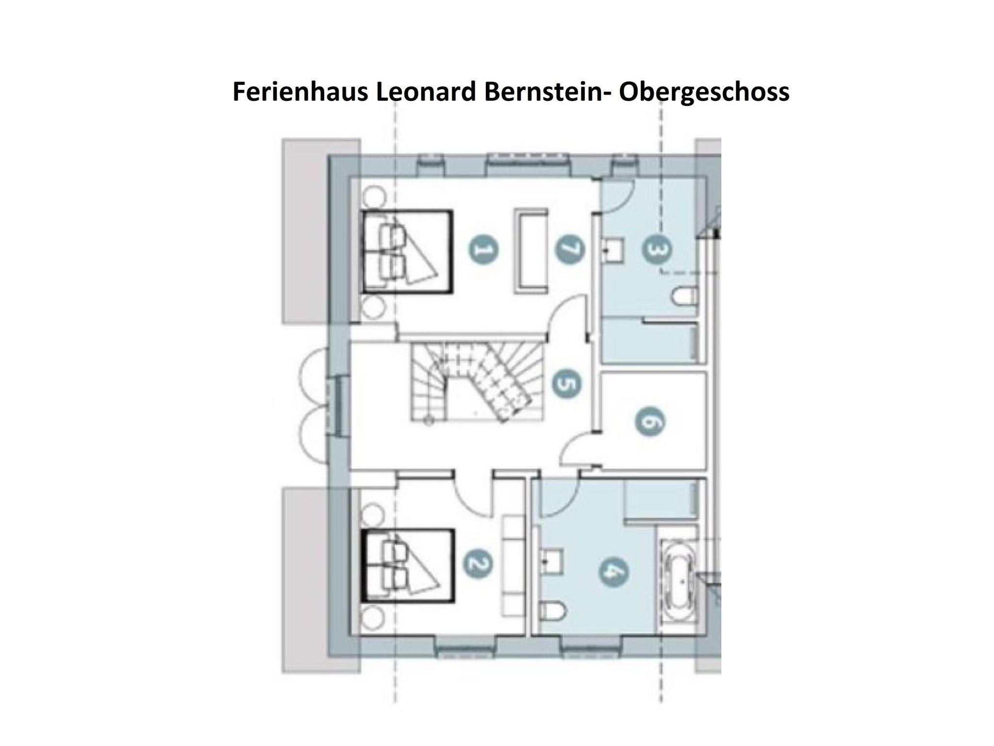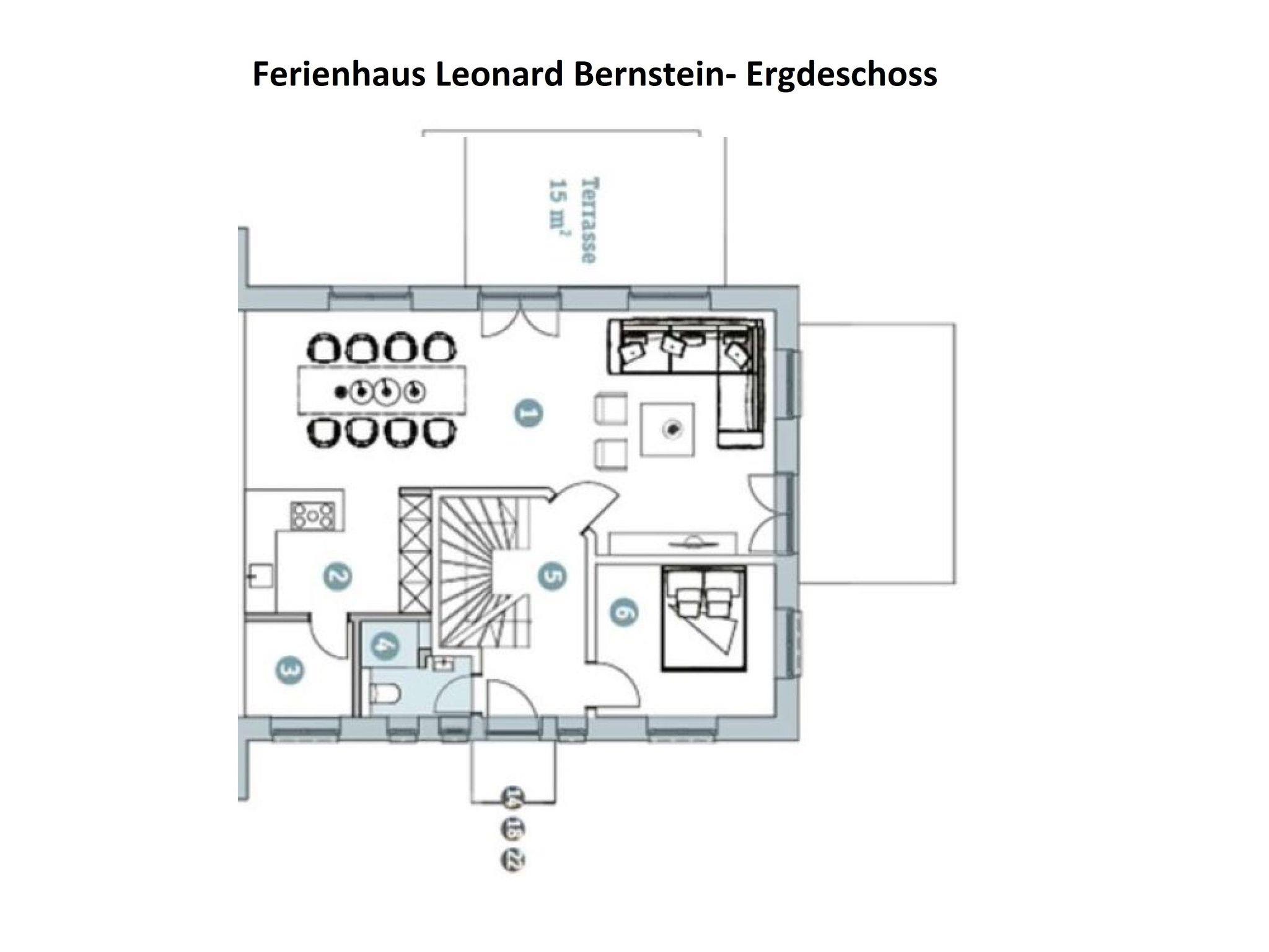 Willkommen im Ferienhaus Leonard Bernstein! Das 163 m² große Ferienhaus auf 3 Etagen ist für max. 8 Erwachsene und 1 Kind (bis 3 Jahre) geeignet und stilvoll-modern ausgestattet. Es verfügt über eine Wohnküche mit angrenzenden Terrassen, 4 Schlafzimmer, 3 Badezimmer und eine Fasssauna.