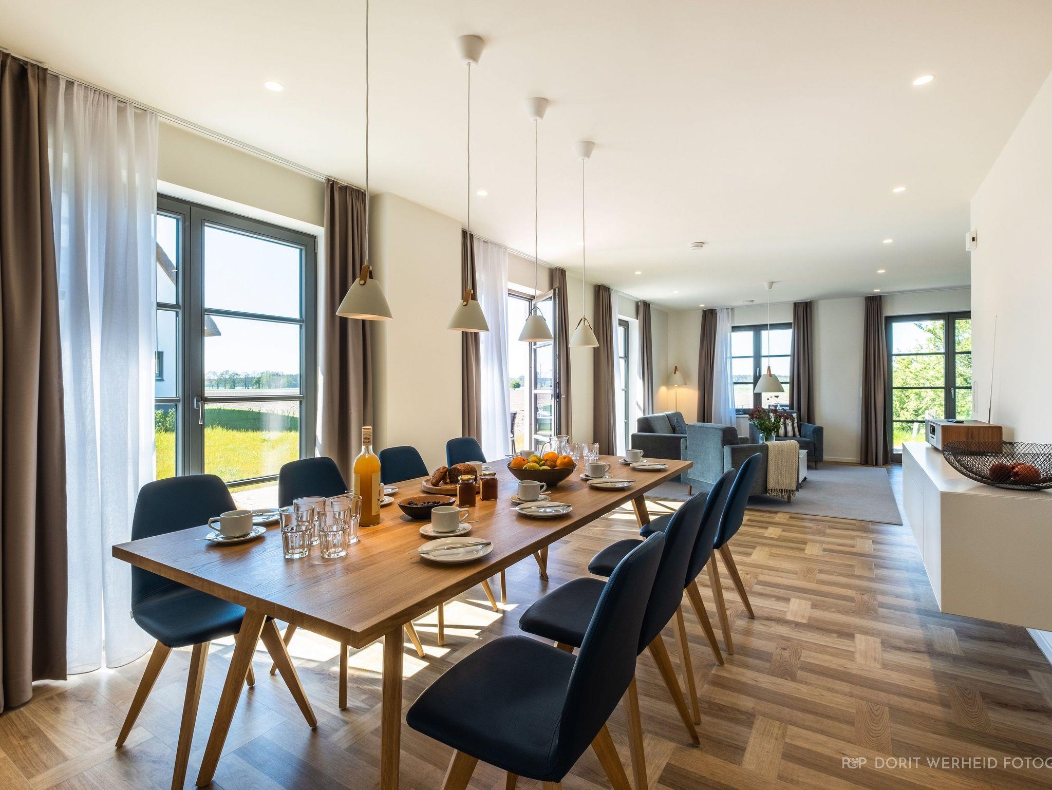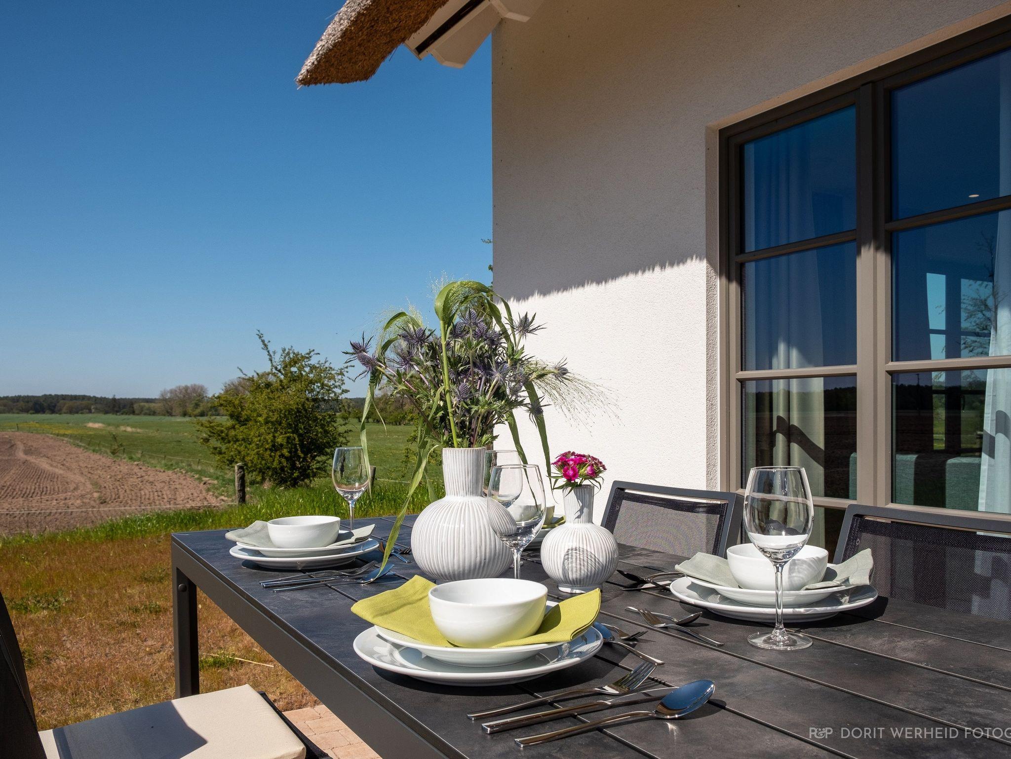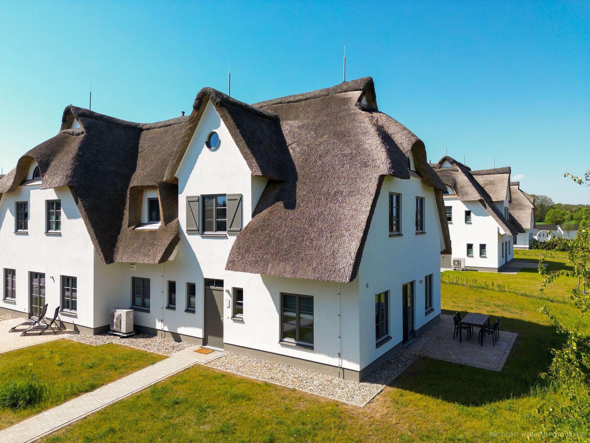 Die Reet gedeckten Häuser wurden in nachhaltiger Holzbauweise errichtet und die Einrichtung ist durch helle sowie freundliche Farben geprägt. Der Blick auf die Haffküste und die umliegende Natur machen Ihren Urlaub einzigartig.