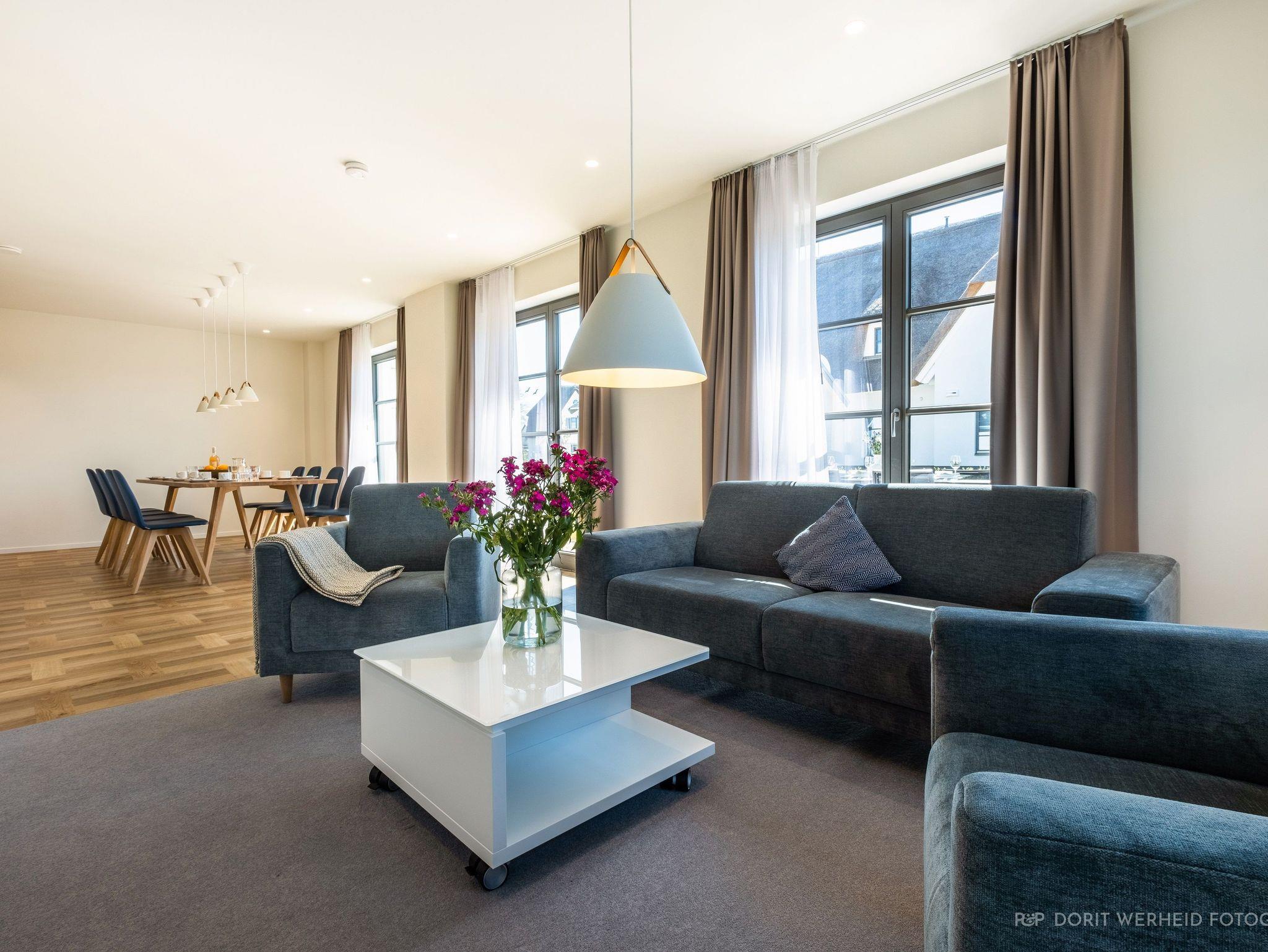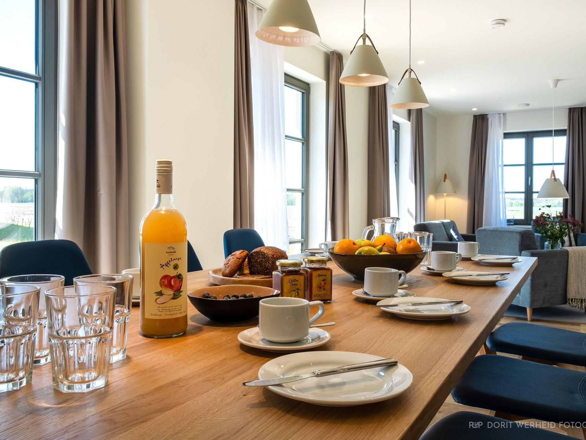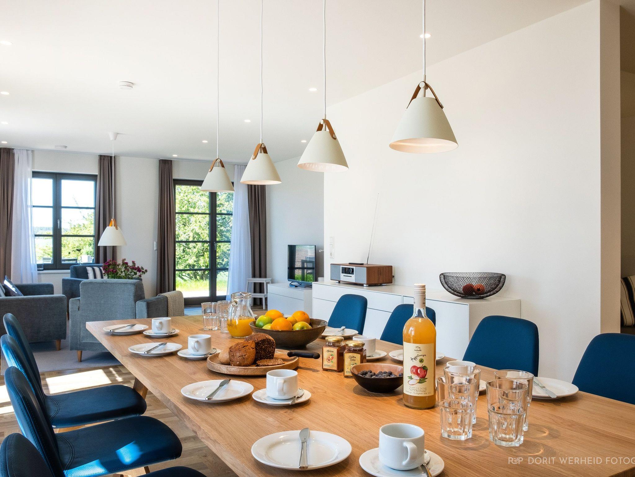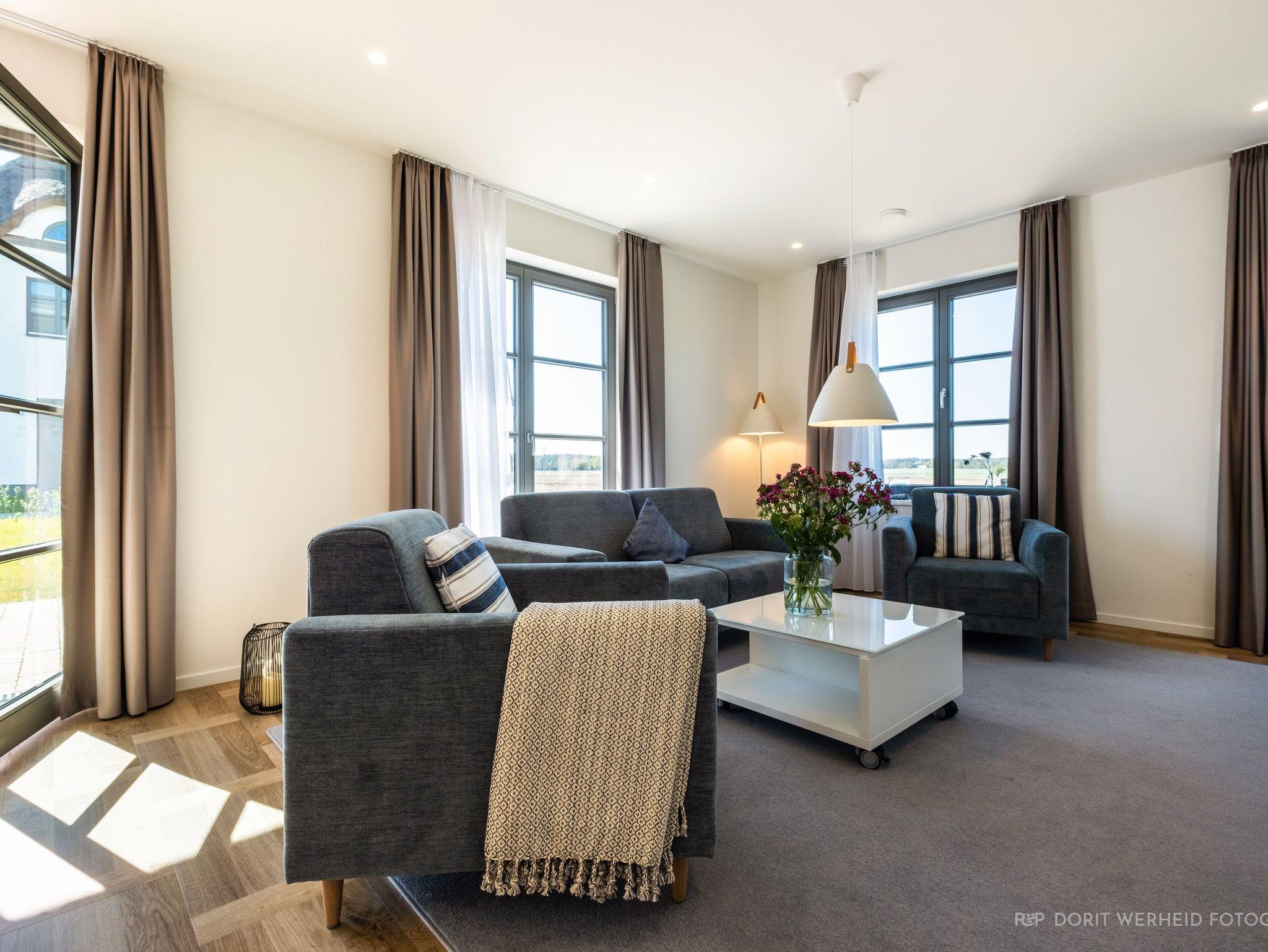 Die Reet gedeckten Häuser wurden in nachhaltiger Holzbauweise errichtet und die Einrichtung ist durch helle sowie freundliche Farben geprägt. Der Blick auf die Haffküste und die umliegende Natur machen Ihren Urlaub einzigartig.