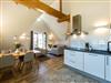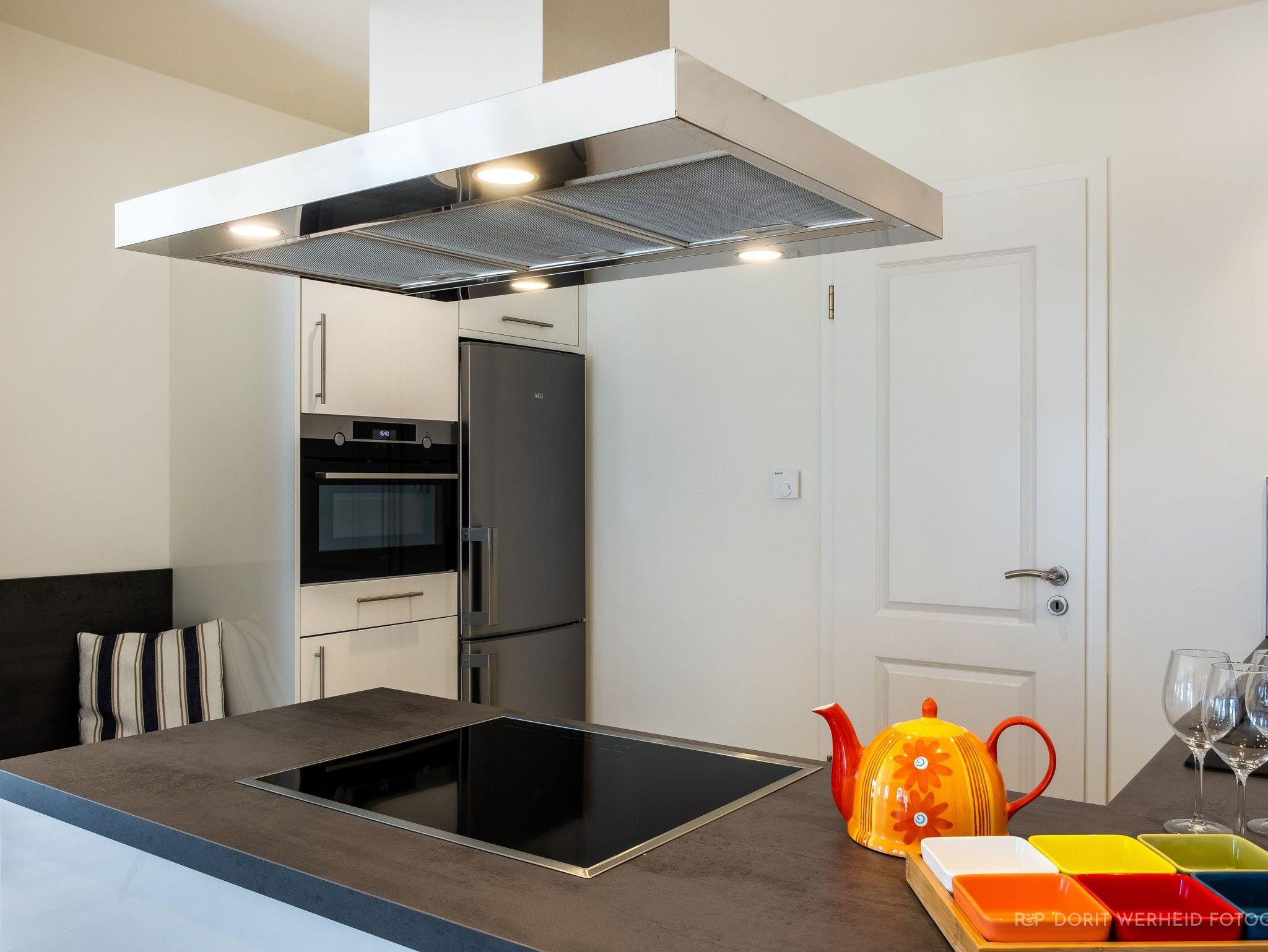 Der geräumige Wohn-Essbereich im Erdgeschoss bietet ausreichend Platz für gemeinsames Essen und gesellige Fernseh- oder Spielabende. Ein großer Flat TV sowie eine Hi-Fi- Anlage stehen Ihnen zur Verfügung. Die Wohnküche mit Vollausstattung verfügt über alle Standardgeräte, wie Kühl-/ Gefrierkombination, Spülmaschine, Backofen mit integrierter Mikrowelle, Induktionsherd, Kaffeemaschine, Wasserkocher und Toaster. Von diesem Bereich gelangen Sie direkt auf die beiden Terrassen mit herrlichem Blick ins Grüne. Für gemütliche Grillabende auf der Terrasse steht ein Weber- Elektrogrill zur Verfügung. Ebenfalls befindet sich im Erdgeschoss ein Schlafzimmer mit einem Boxspringbett und einem kleinen Badezimmer mit Waschbecken, WC und bodentiefer Dusche.