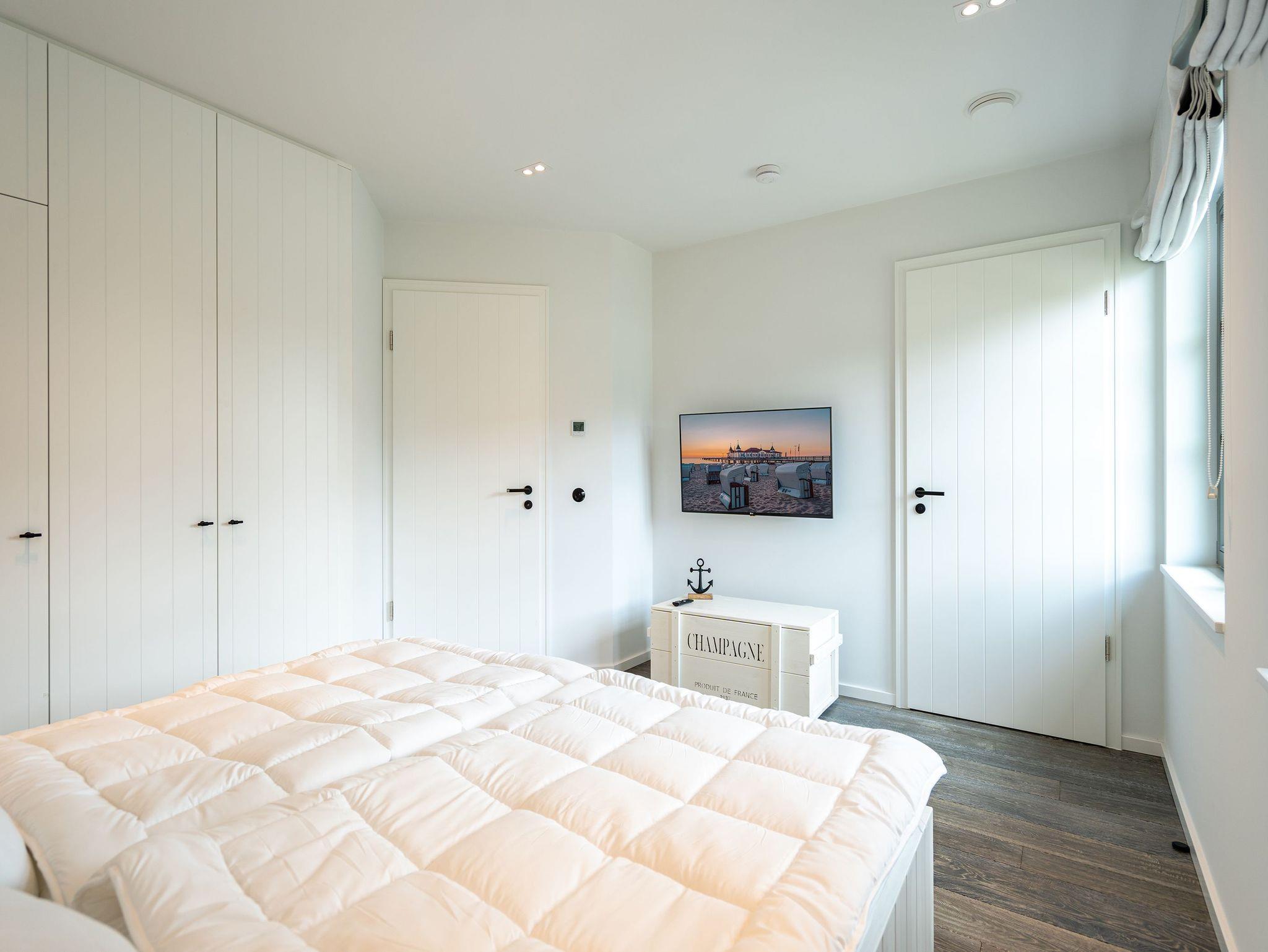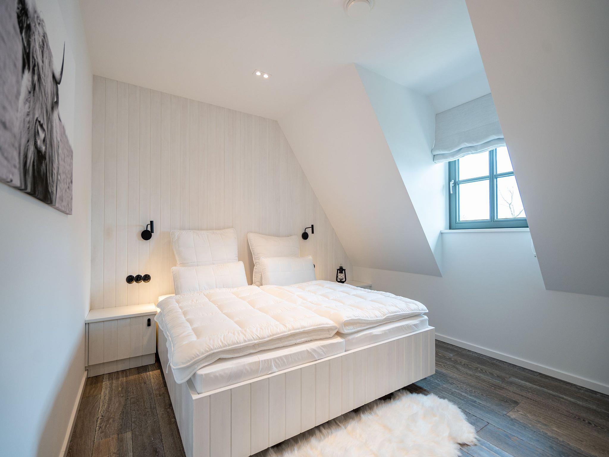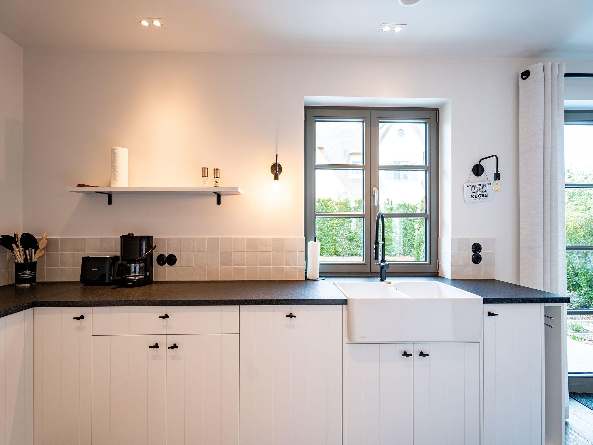 Willkommen in Ihrem exklusiven Haus N° 1 im malerischen Friesenstil! Umgeben von unberührter Natur und idyllischer Ruhe erwartet Sie hier ein traumhaftes Reetdachhaus, das Ihnen einen unvergesslichen Aufenthalt beschert. Die Lage ist perfekt nur wenige Gehminuten trennen Sie vom Haff und der Badebucht, wo Sie entspannte Stunden am Wasser genießen können. Auf großzügigen 130 m² bietet das Ferienhaus Platz für bis zu vier Personen und begeistert mit einer hochwertigen Ausstattung. Edle Echtholzböden und italienische Steinfliesen schaffen eine stilvolle und gemütliche Atmosphäre. Der offene Wohnbereich im Erdgeschoss lädt mit einer komfortablen Sitzgruppe, einem elektrischen Kamin und einem Flachbildfernseher zum Verweilen ein. Die moderne, voll ausgestattete Küche verfügt über eine Kochinsel mit Tresen sowie einen großen Esstisch mit zwei Bänken ideal für gesellige Mahlzeiten. Ein Gäste-WC sowie ein Hauswirtschaftsraum mit Waschmaschine und Trockner sorgen für zusätzlichen Komfort. Im Obergeschoss erwarten Sie zwei gemütliche Schlafzimmer, jeweils mit einem komfortablen Doppelbett (1,80 m x 2,00 m) und einem Flachbildfernseher. Hier können Sie sich zurückziehen und die Erlebnisse des Tages entspannt Revue passieren lassen. Ein Kinderreisebett findet ebenfalls problemlos Platz. Das Haus verfügt über zwei moderne Badezimmer: Das Hauptbad beeindruckt mit einer Badewanne, einer Dusche, einem Doppelwaschtisch und einer entspannenden Infrarot-Sauna, während das zweite Bad als Masterbad direkt an eines der Schlafzimmer angeschlossen mit einer Dusche, einem WC und einem weiteren Doppelwaschtisch ausgestattet ist. Für Ihren Komfort sind die Betten bei Anreise frisch bezogen und Handtücher liegen bereit. Der weitläufige Garten lädt mit zwei Sonnenterrassen dazu ein, die Natur in vollen Zügen zu genießen. Ein gemütlicher Strandkorb bietet den perfekten Platz für entspannte Stunden. Selbstverständlich steht Ihnen kostenloses WLAN zur Verfügung, sodass Sie jederzeit mit Ihren Lieben in Verbindung bleiben können. Ein eigener PKW-Stellplatz (Nr. 30) direkt am Haus, ein abschließbares Fahrrad-Gartenhaus mit Steckdose für E-Bikes sowie eine zusätzliche E-Ladestation auf dem Gelände des Inseldomizils runden das Angebot ab. Erleben Sie unvergessliche Urlaubsmomente in diesem luxuriösen Ferienhaus und lassen Sie sich von der Schönheit der Umgebung und der wohltuenden Ruhe verzaubern. Wir freuen uns darauf, Sie willkommen zu heißen!