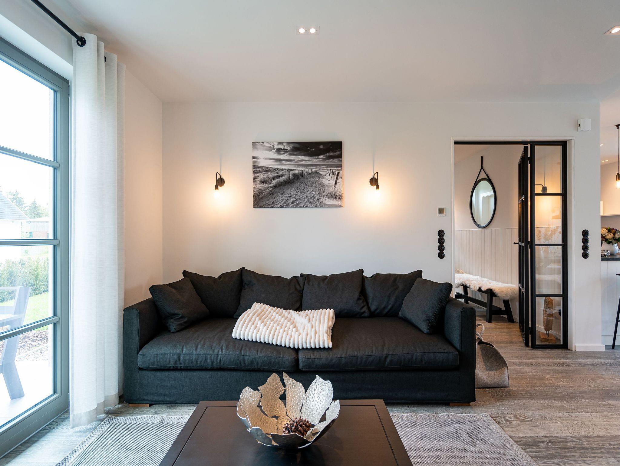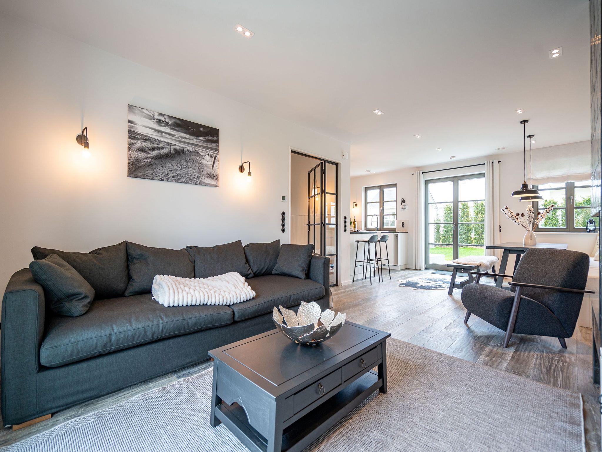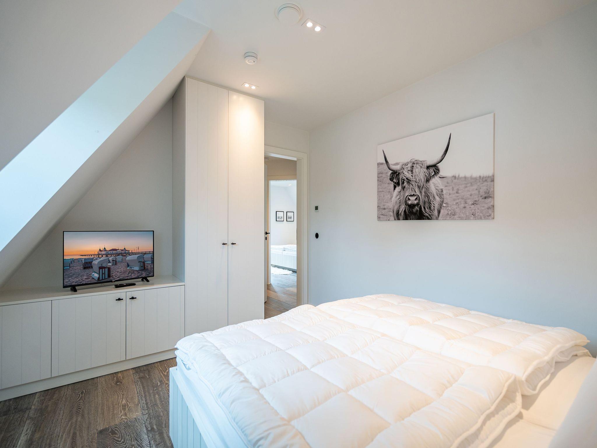 Willkommen in Ihrem exklusiven Haus N° 1 im malerischen Friesenstil! Umgeben von unberührter Natur und idyllischer Ruhe erwartet Sie hier ein traumhaftes Reetdachhaus, das Ihnen einen unvergesslichen Aufenthalt beschert. Die Lage ist perfekt nur wenige Gehminuten trennen Sie vom Haff und der Badebucht, wo Sie entspannte Stunden am Wasser genießen können. Auf großzügigen 130 m² bietet das Ferienhaus Platz für bis zu vier Personen und begeistert mit einer hochwertigen Ausstattung. Edle Echtholzböden und italienische Steinfliesen schaffen eine stilvolle und gemütliche Atmosphäre. Der offene Wohnbereich im Erdgeschoss lädt mit einer komfortablen Sitzgruppe, einem elektrischen Kamin und einem Flachbildfernseher zum Verweilen ein. Die moderne, voll ausgestattete Küche verfügt über eine Kochinsel mit Tresen sowie einen großen Esstisch mit zwei Bänken ideal für gesellige Mahlzeiten. Ein Gäste-WC sowie ein Hauswirtschaftsraum mit Waschmaschine und Trockner sorgen für zusätzlichen Komfort. Im Obergeschoss erwarten Sie zwei gemütliche Schlafzimmer, jeweils mit einem komfortablen Doppelbett (1,80 m x 2,00 m) und einem Flachbildfernseher. Hier können Sie sich zurückziehen und die Erlebnisse des Tages entspannt Revue passieren lassen. Ein Kinderreisebett findet ebenfalls problemlos Platz. Das Haus verfügt über zwei moderne Badezimmer: Das Hauptbad beeindruckt mit einer Badewanne, einer Dusche, einem Doppelwaschtisch und einer entspannenden Infrarot-Sauna, während das zweite Bad als Masterbad direkt an eines der Schlafzimmer angeschlossen mit einer Dusche, einem WC und einem weiteren Doppelwaschtisch ausgestattet ist. Für Ihren Komfort sind die Betten bei Anreise frisch bezogen und Handtücher liegen bereit. Der weitläufige Garten lädt mit zwei Sonnenterrassen dazu ein, die Natur in vollen Zügen zu genießen. Ein gemütlicher Strandkorb bietet den perfekten Platz für entspannte Stunden. Selbstverständlich steht Ihnen kostenloses WLAN zur Verfügung, sodass Sie jederzeit mit Ihren Lieben in Verbindung bleiben können. Ein eigener PKW-Stellplatz (Nr. 30) direkt am Haus, ein abschließbares Fahrrad-Gartenhaus mit Steckdose für E-Bikes sowie eine zusätzliche E-Ladestation auf dem Gelände des Inseldomizils runden das Angebot ab. Erleben Sie unvergessliche Urlaubsmomente in diesem luxuriösen Ferienhaus und lassen Sie sich von der Schönheit der Umgebung und der wohltuenden Ruhe verzaubern. Wir freuen uns darauf, Sie willkommen zu heißen!