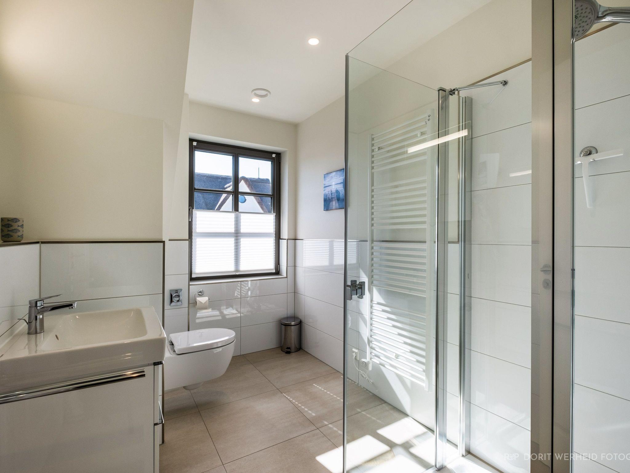 Alle Badezimmer sind mit bodentiefen Duschen, WCs und Waschbecken ausgestattet. WLAN und LAN sind in dem Haus vorhanden.