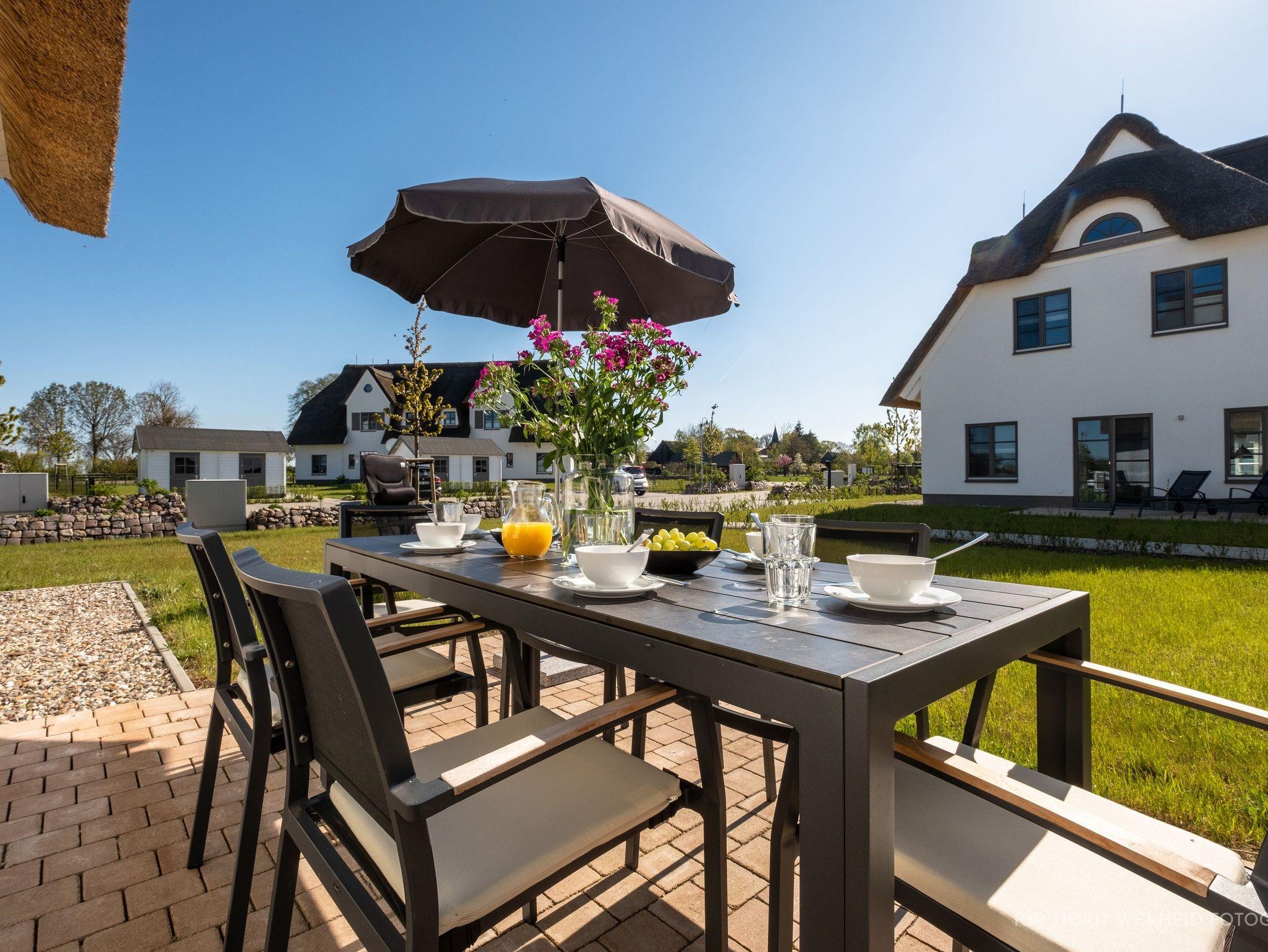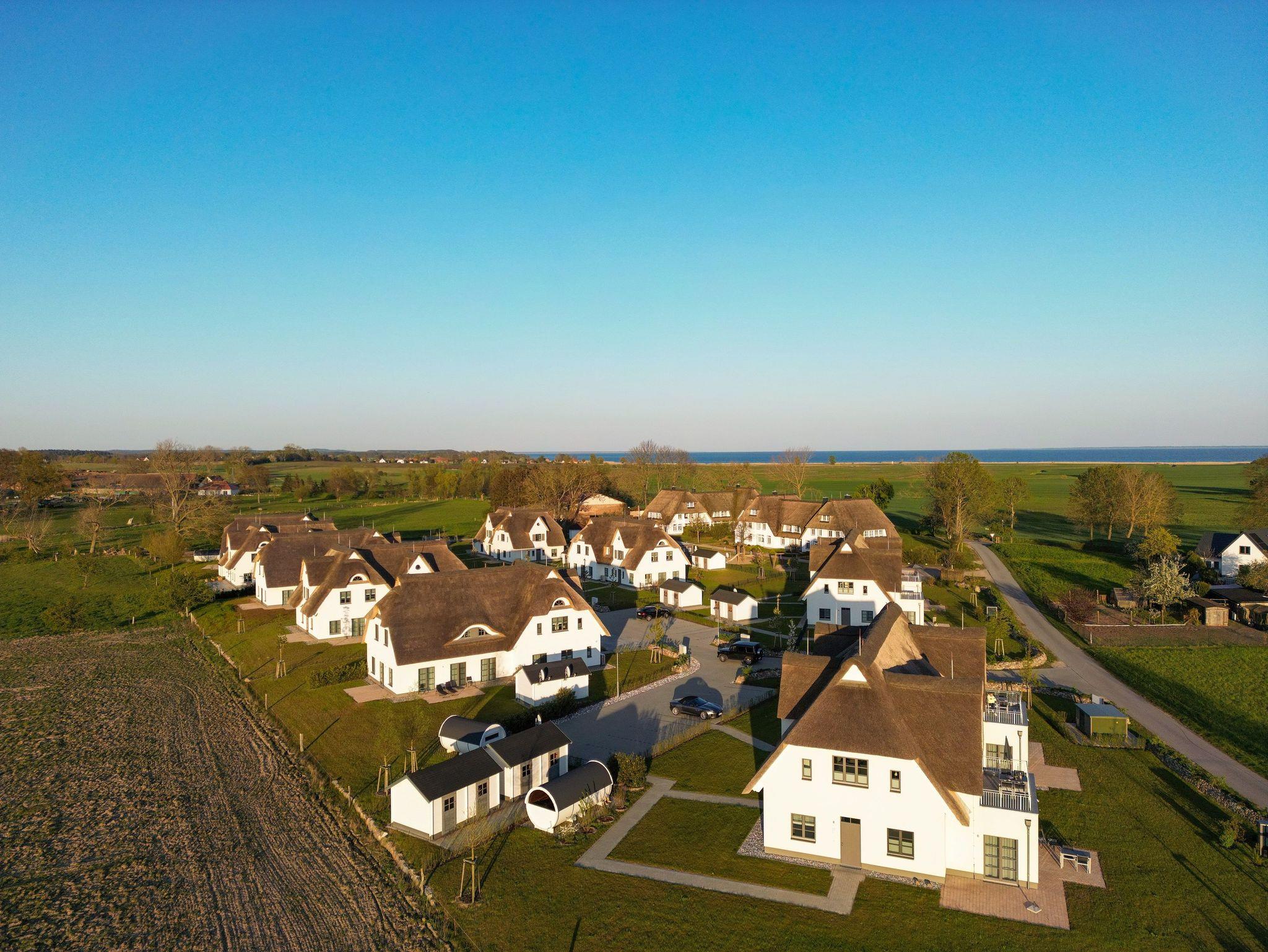 Die Reet gedeckten Häuser wurden in nachhaltiger Holzbauweise errichtet und die Einrichtung ist durch helle sowie freundliche Farben geprägt. Der Blick auf die Haffküste und die umliegende Natur machen Ihren Urlaub einzigartig.
