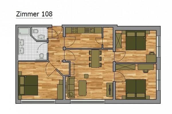 Hier haben in 3 getrennten Schlafzimmern 6 Personen Platz, bei Aufbettung der Schlafcouch können auch 8 Personen in diesem Appartement Urlauben.