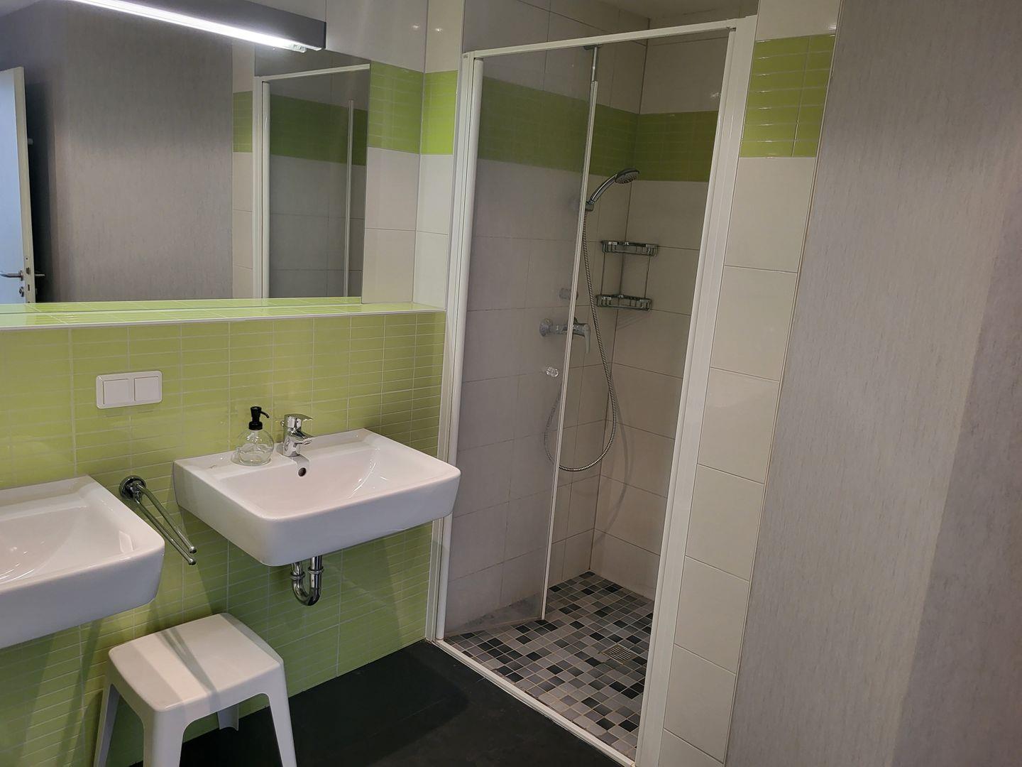 Die Küchenzeile in der separaten Küche ist vollausgestattet. Im Bad ermöglichen 2 Waschbecken und eine barrierefreie Dusche ausreichenden Komfort, 1 Gäste-WC ist zusätzlich vorhanden.