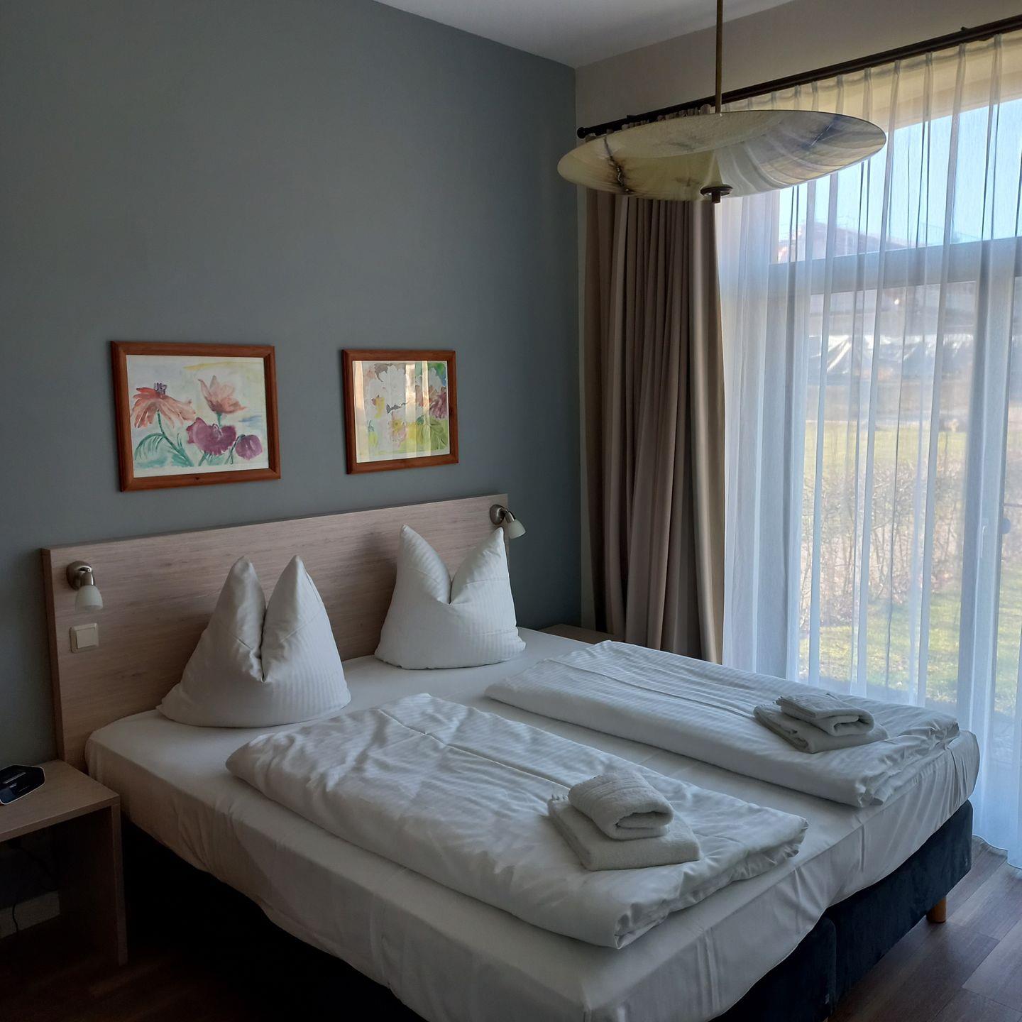 Ein Flat-TV, Radio, freies WLAN sind vorhanden. Sie parken auf einem kostenfreien Parkplatz in unmittelbarer Nähe.