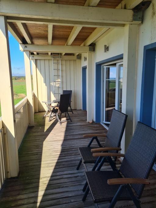 2,6 m tiefer, überdachter Balkon mit direktem Haffblick, Fernseher, WLAN, Parkplatz