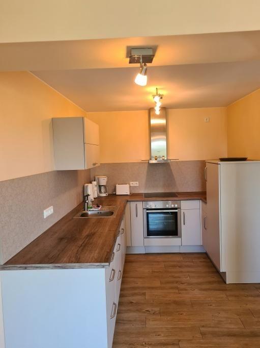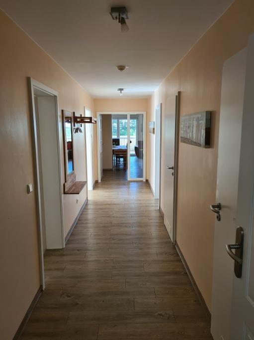 4 Zimmerappartement, 100m² für 7 Personen, 2 Schlafzimmer mit je 1 Doppelbett und 1 Schlafzimmert mit 2 Einzelbetten, Bad mit Dusche und Wanne, Gäste- WC, offene Küche mit Spülmaschine,