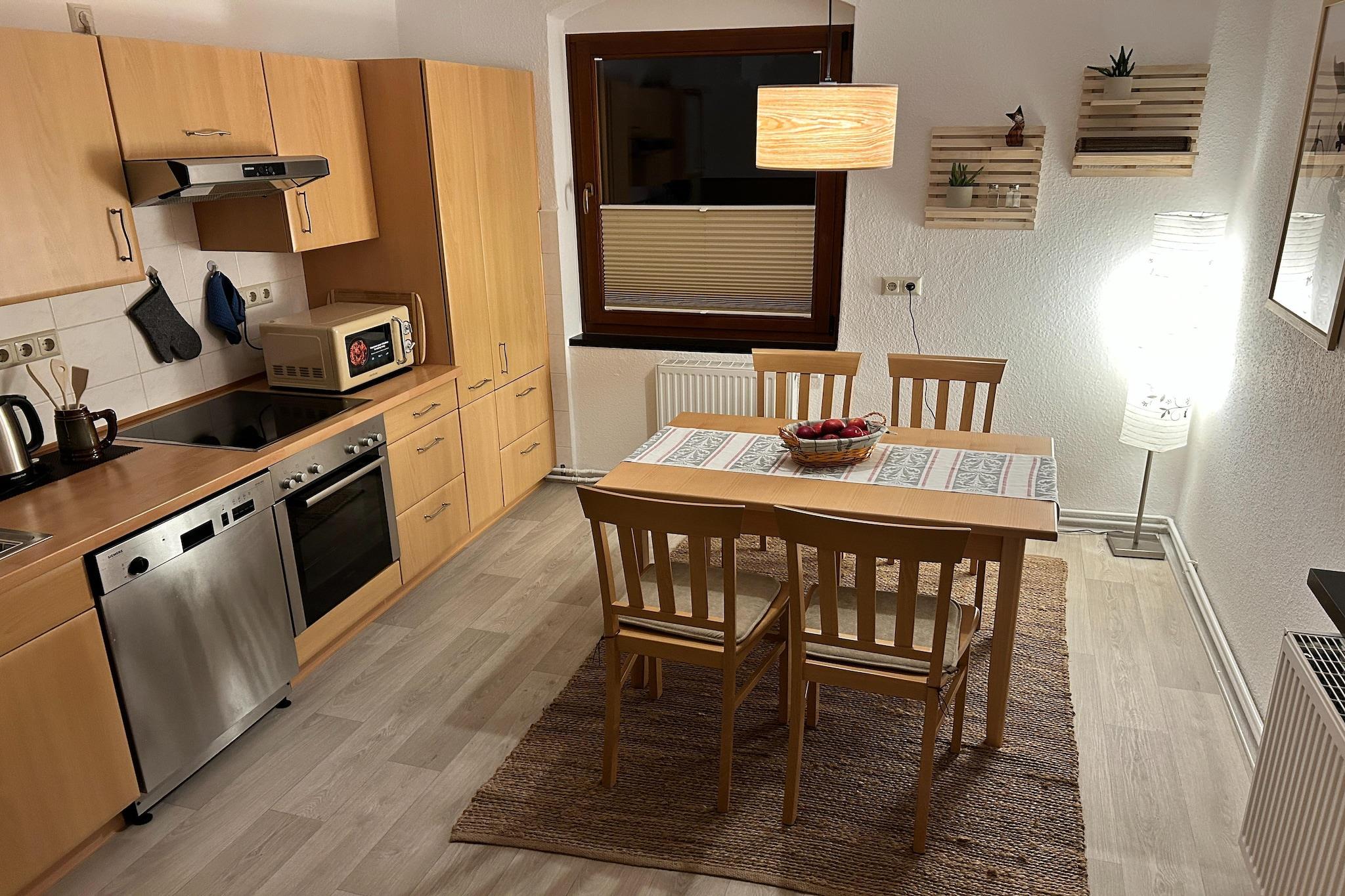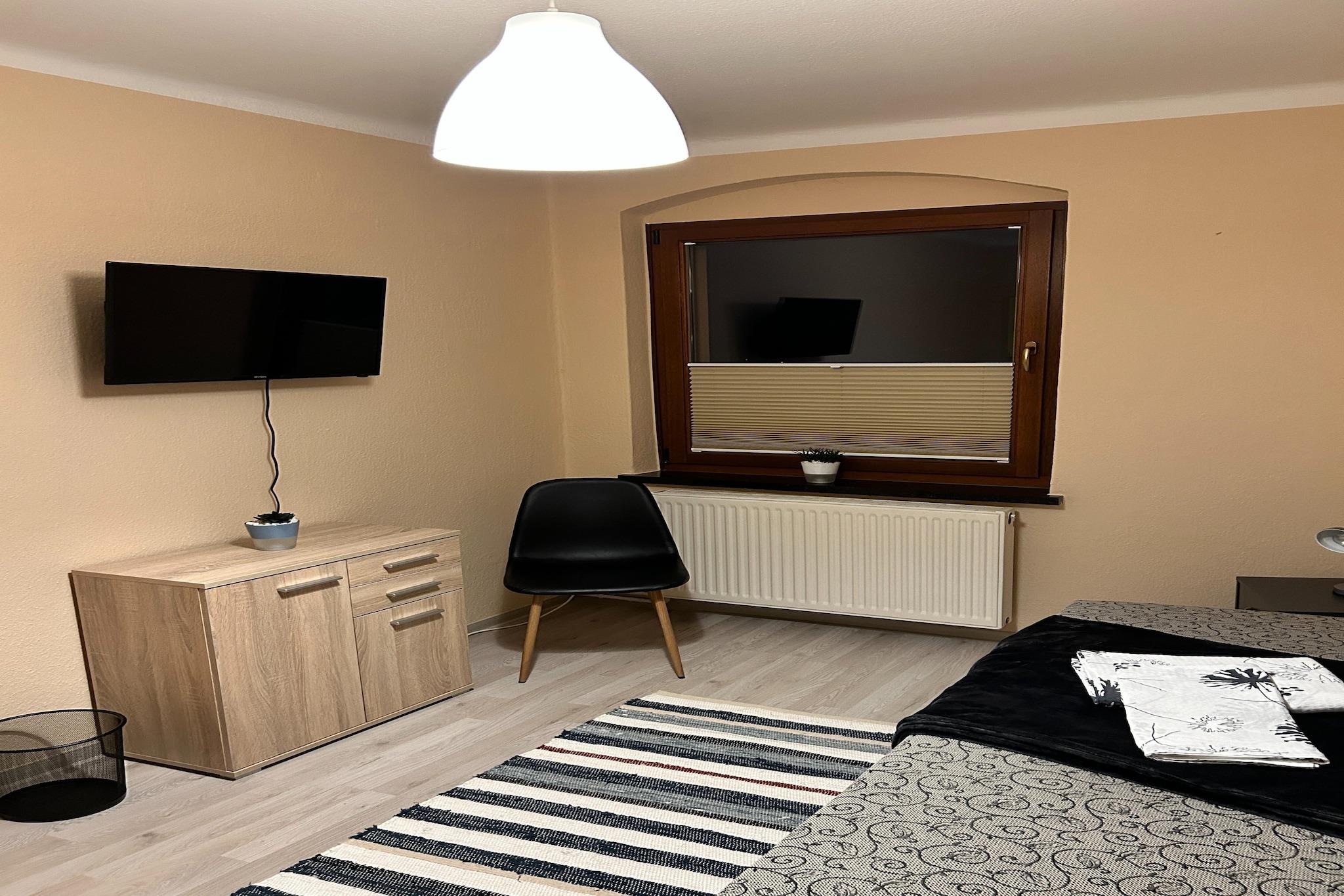Denne rummelige lejlighed på første sal i den historiske by Stolpen tilbyder et komfortabelt og kæledyrsvenligt ophold for op til fem gæster. Ideel til familier eller små grupper og har tre soveværelser – et med dobbeltseng, to med enkeltsenge (et med eget tv) – samt en stue med en sovesofa til én person, tv og siddeområde. Det fuldt udstyrede køkken med elkedel, kaffemaskine, ovn, mikrobølgeovn, opvaskemaskine og køleskab gør det nemt at lave mad selv. Badeværelset har badekar, håndvask og toilet, mens en brændeovn sørger for hyggelig varme. Udenfor finder du en indhegnet have med grill, havemøbler, cykelopbevaring og fantastiske ekstrafunktioner som bordtennisbord og brætspil. Der er parkering på stedet. Med butikker kun 200 meter væk, et bageri (500 meter) og restauranter (1,5 km) i nærheden, kan du nemt få dækket dine daglige behov. Udforsk lokale attraktioner som Stolpen Slot (600 m) og Ringelmauer (650 m), eller tag en dagstur til Dresden (30 km). Offentlig transport (100 m) og togstationen (1 km) gør det nemt at komme rundt. Dit kæledyr er velkommen, men skal registreres inden ankomst! Der ønskes maksimalt ét kæledyr.