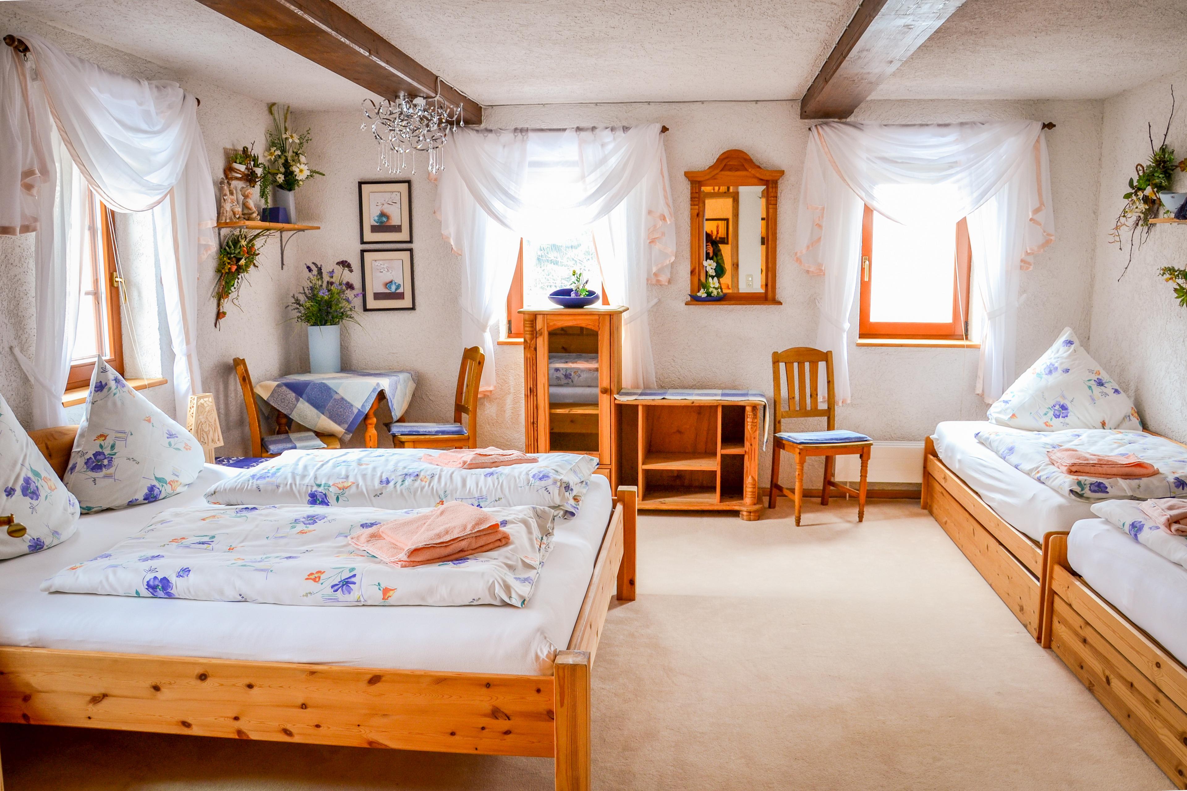 Kostenlose Privatparkplätze und ein Biergarten im Grünen stehen Ihnen zur Verfügung. Hier findet jeder Besucher ein schattiges Plätzchen, ein frisch Gezapftes und schmackhafte Speisen. Erleben Sie einen unvergesslichen Urlaub auf dem 3-Seiten-Hof mit gemütlichen Zimmern in ruhiger Lage. Ob Einzel- oder Doppelzimmer, Familienzimmer, Appartement, Ferienwohnung oder Hochzeitssuite – das außergewöhnliche Ambiente bietet das richtige Umfeld für viele Anlässe. Alle Zimmer sind mit einem eigenen Bad mit Dusche und WC sowie mit Flachbild-TV, Kleiderschrank und kostenfreiem WLAN ausgestattet. In den Bädern liegt jeweils ein Haartrockner bereit, Bettwäsche und Handtücher gehören zum Service. In der Bauernwirtschaft wird ein Frühstücksbuffet bereit gestellt, und auch abends besteht die Möglichkeit, unsere Gaststätte zu nutzen.