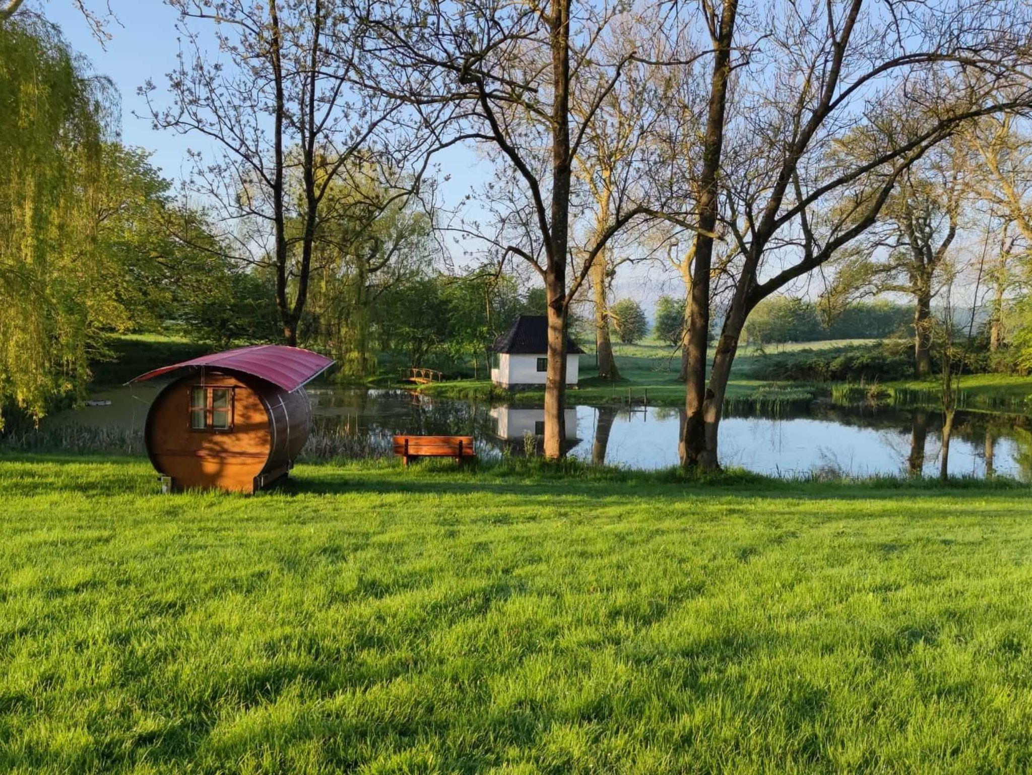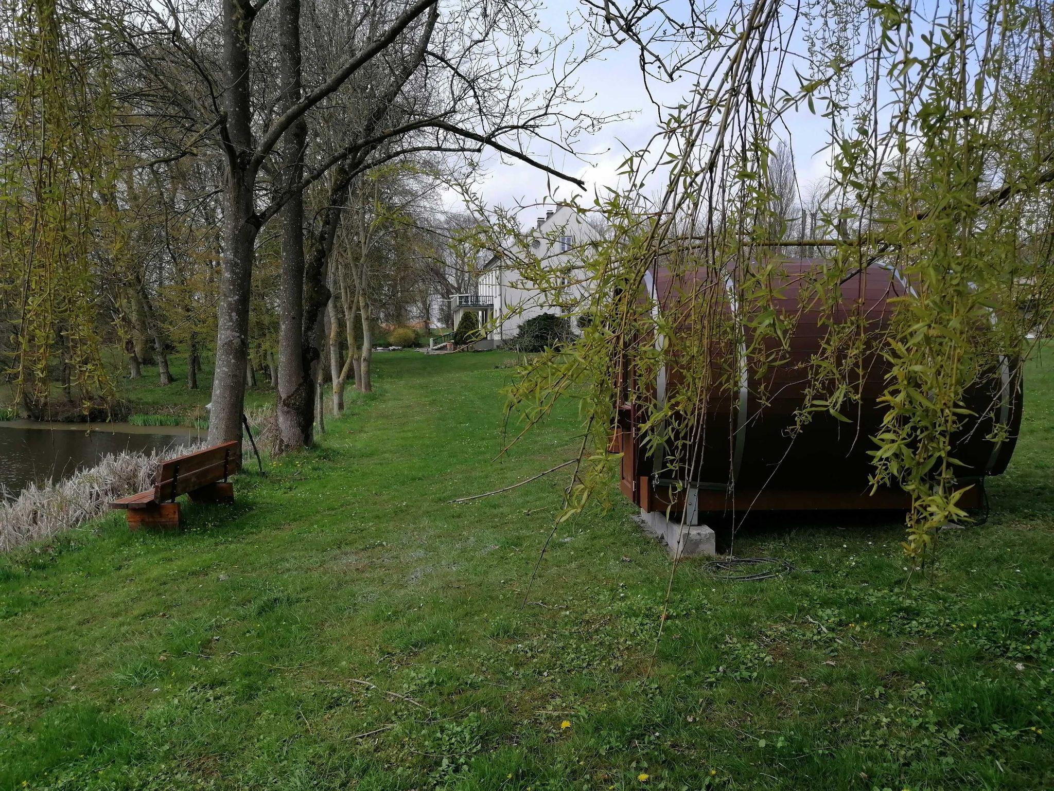 Hygge und Auszeit zu zweit im kuscheligen Holzfass direkt am See in idyllischer Parklandschaft.