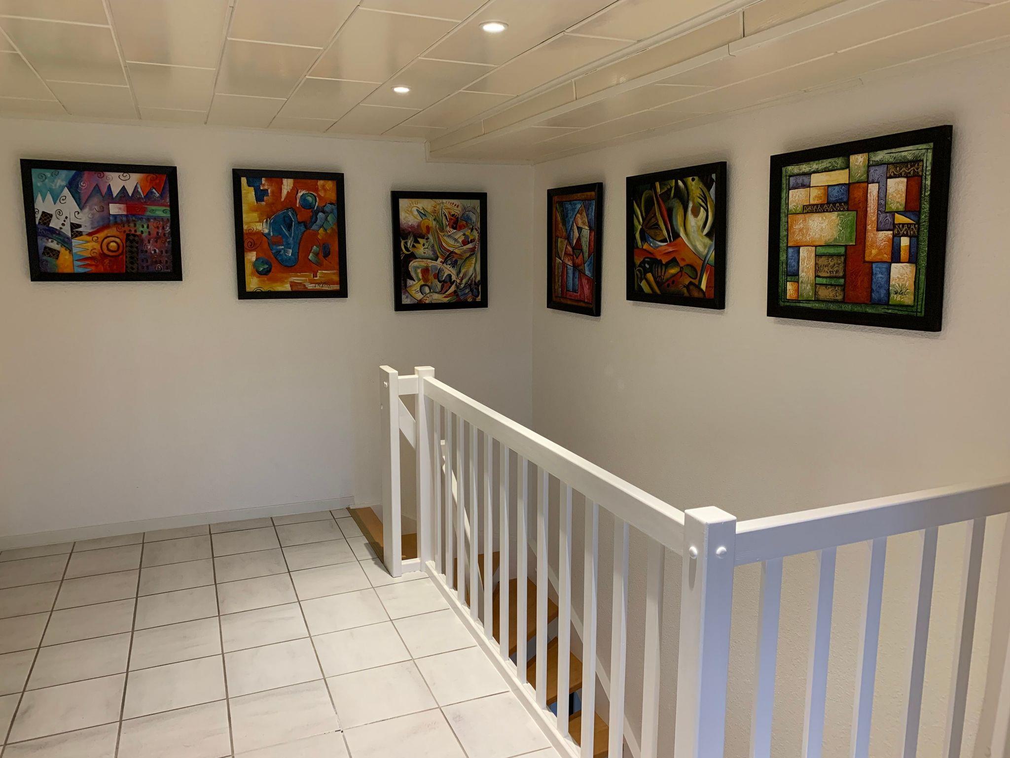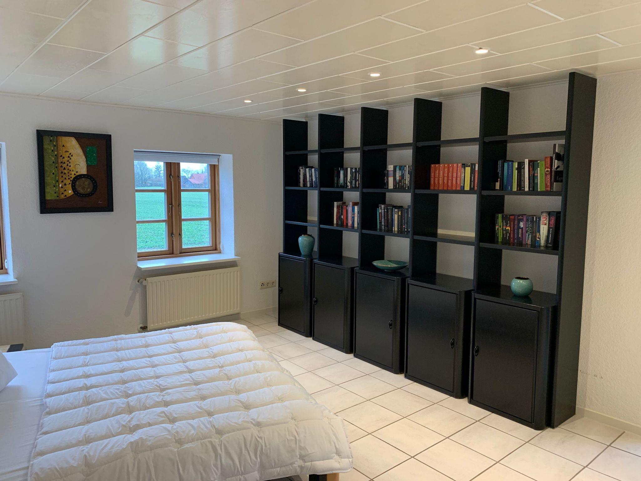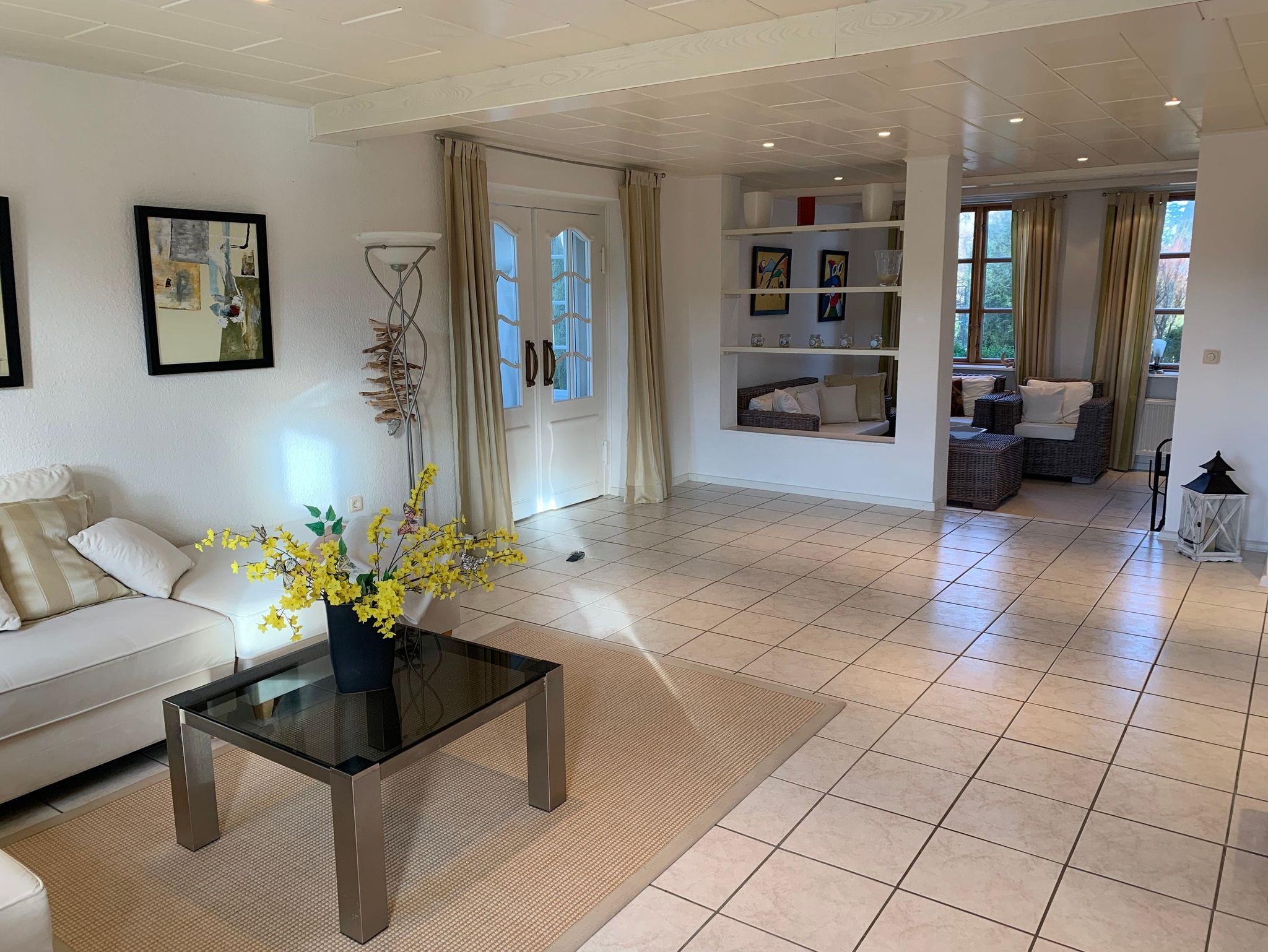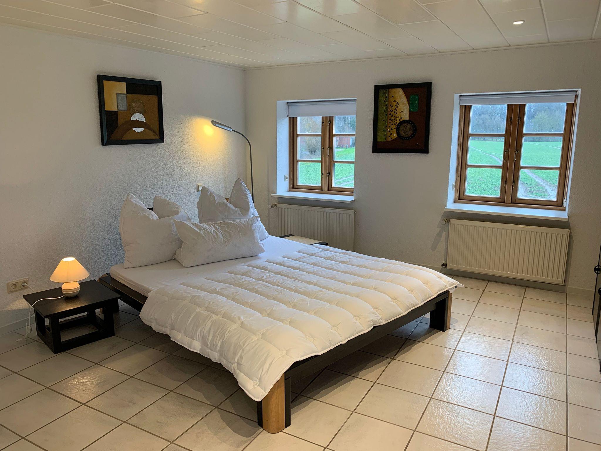 Das Ferienhaus Alte Mühle für bis zu 8 Personen (plus 1 Kleinkind) ist im großzügigen Landhausstil gestaltet. Ein besonderer Hingucker sind die zahlreichen Bilder im modernen Stil an vielen Wänden.