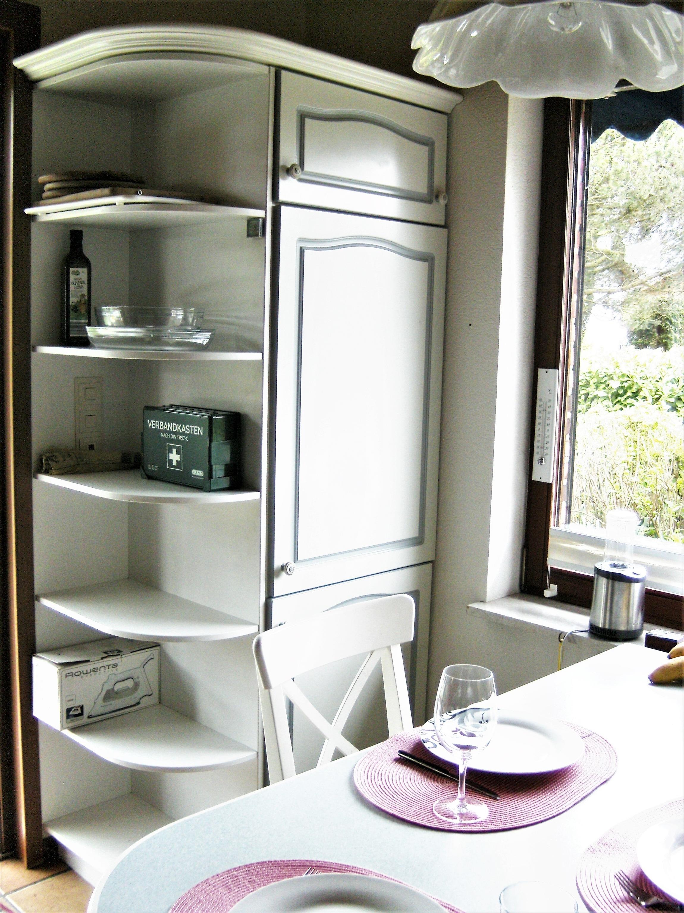 Separater Raum: Waschmaschine, Backofen, Gefrierschrank, Gefrierbox, Mikrowelle, Reinigungsutensilien, weiter Töpfe, Bräter