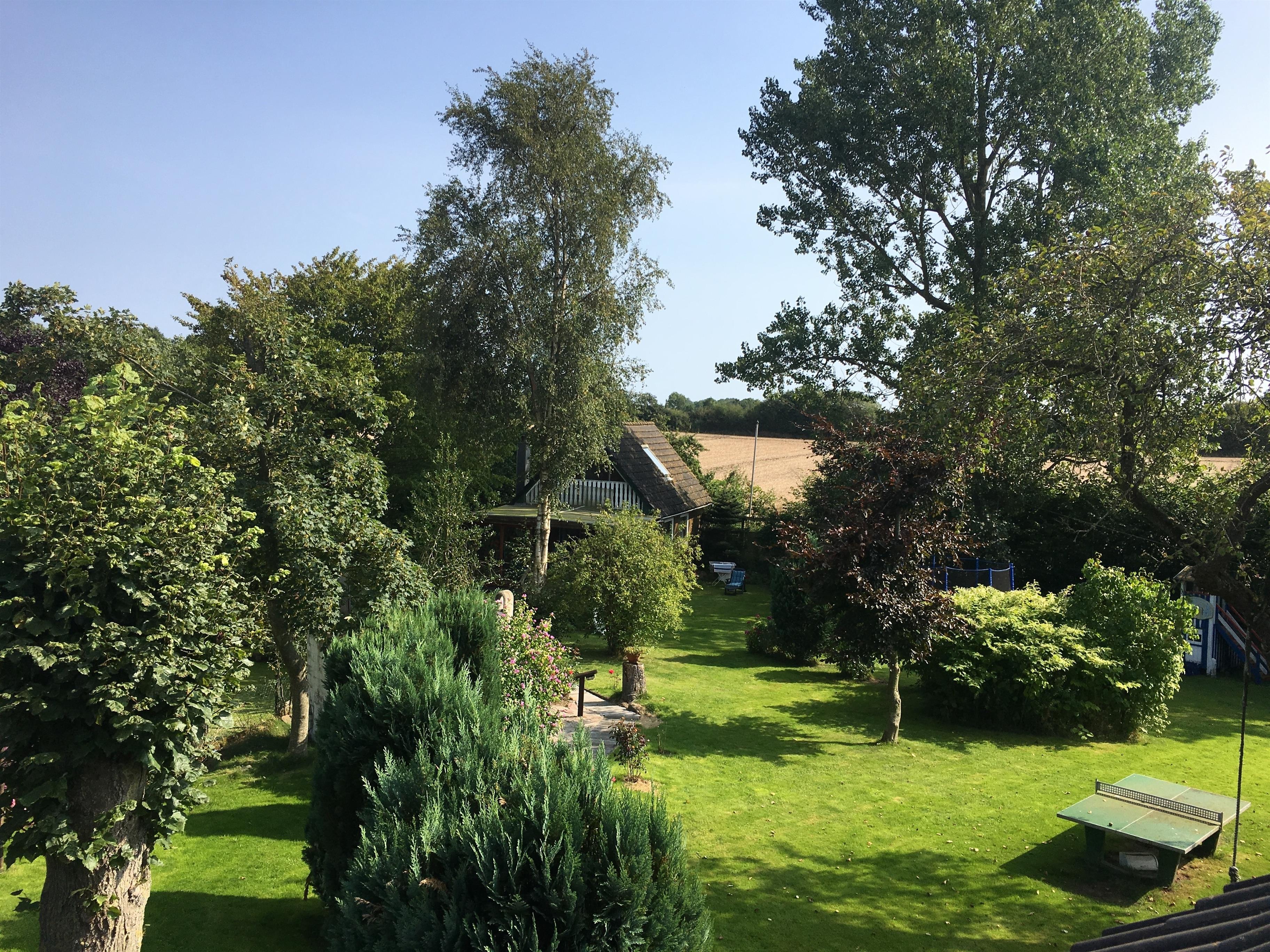 Schöne 60 Quadratmeter, in 50 Metern Entfernung vom Haupthaus, bestehend aus zweieinhalb komplett eingerichteten Zimmern mit insgesamt vier Betten, Duschbad und moderner Wohnküche mit Geschirrspülmaschine - natürlich mit Balkon, überdachter Terrasse und Garten sowie einem dänischen Holzofen - warten auf Sie. Eine Waschmaschine und ein Fernseher sind ebenfalls vorhanden. Einfach ideal für Familien, denn hier haben Sie richtig Platz und Ihre Kinder können toben, Trampolin springen sowie Tischtennis, Billard oder Basketball spielen. Seit kurzem stehen auch eine große Rutsche und eine Seilbahn im Garten zur Verfügung.