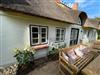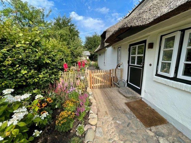 Traumhafte Reetdachkate auf dem Land mit großem Bauerngarten
