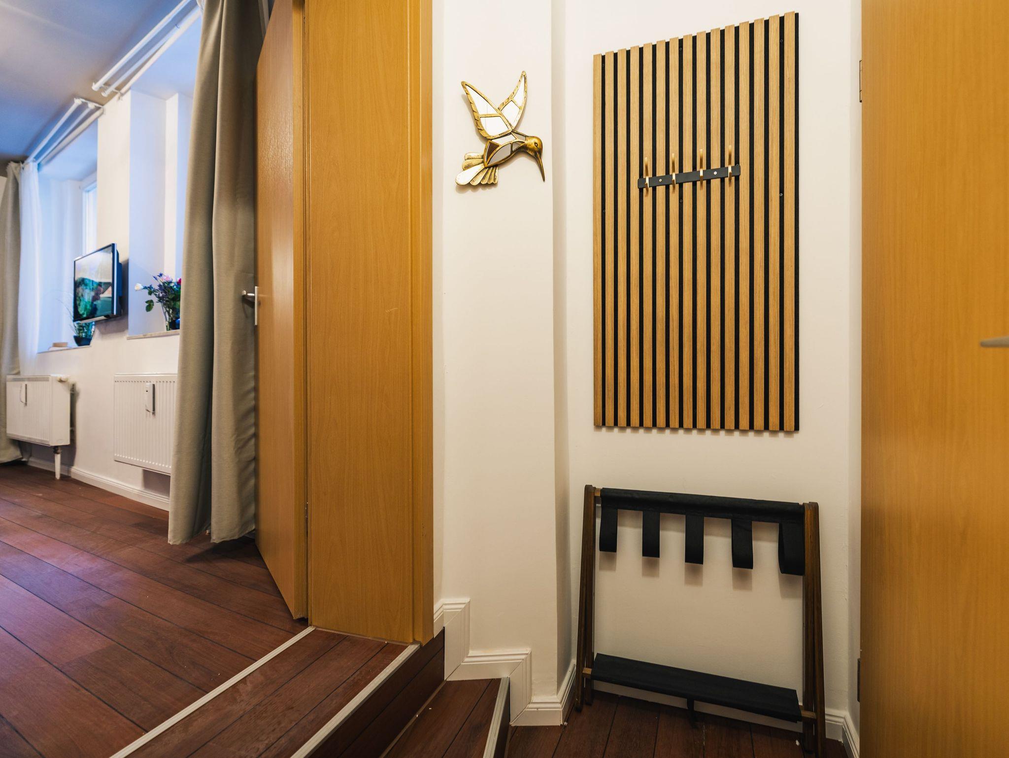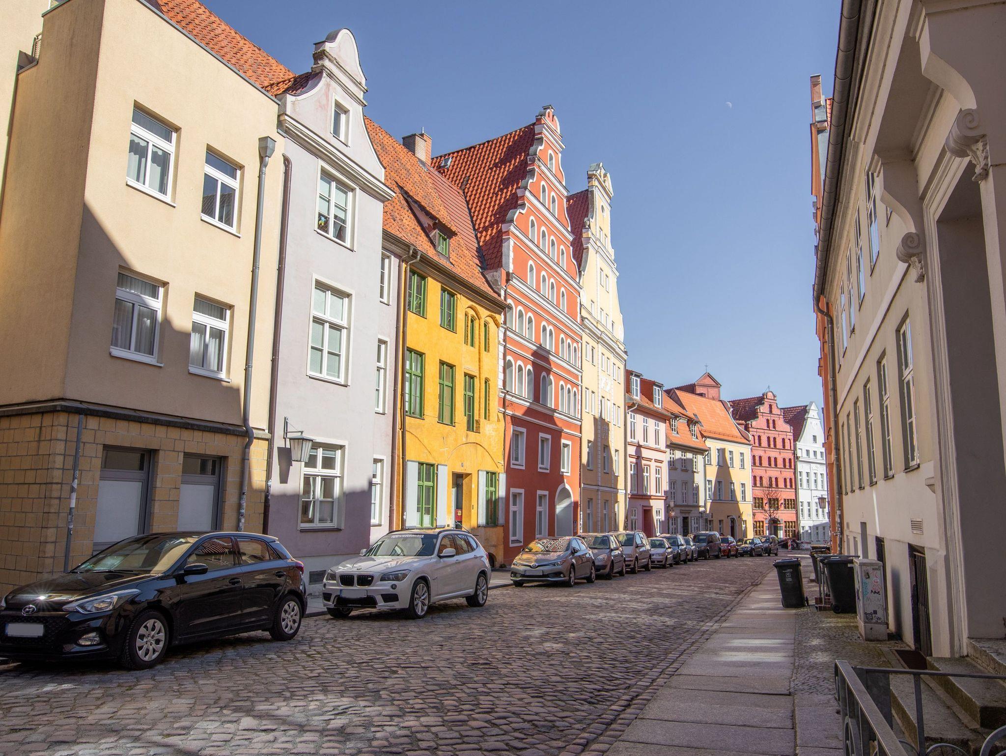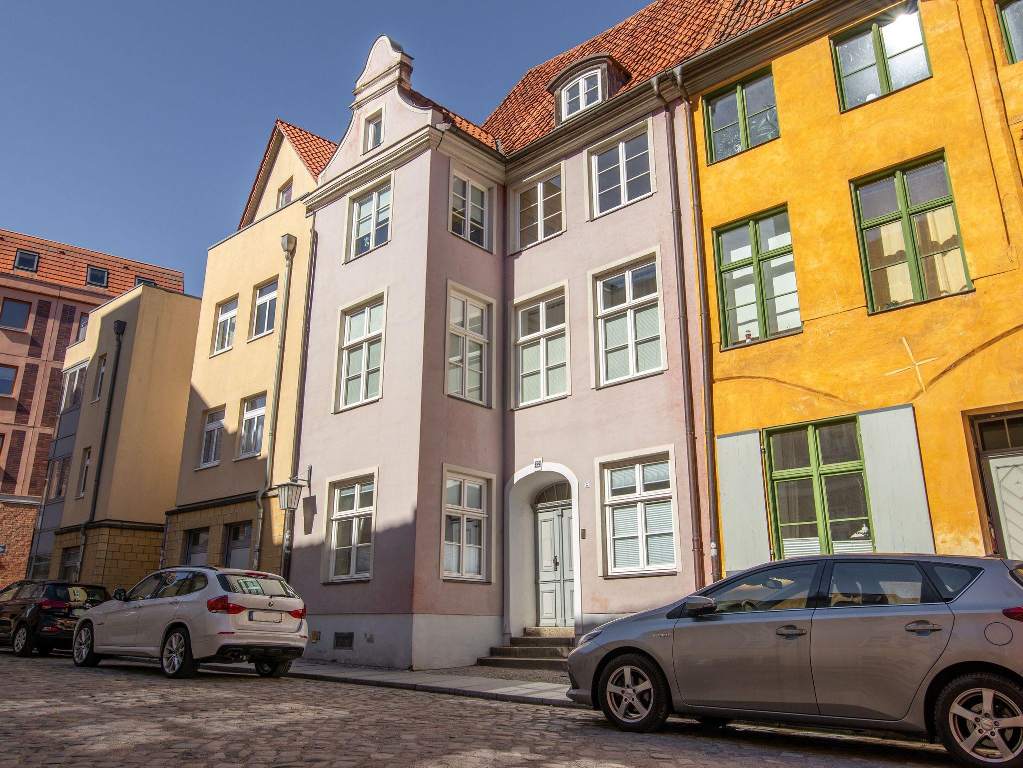 Die drei Appartements liegen direkt im Stadtzentrum am Alten Markt, in einer ruhigen und historischen Seitenstraße. Sie wohnen in einem dreigeschossigen, sanierten Altbau, der im Jahr 1331 gebaut wurde und damit zu einem der ältesten Gebäude Stralsunds gehört.