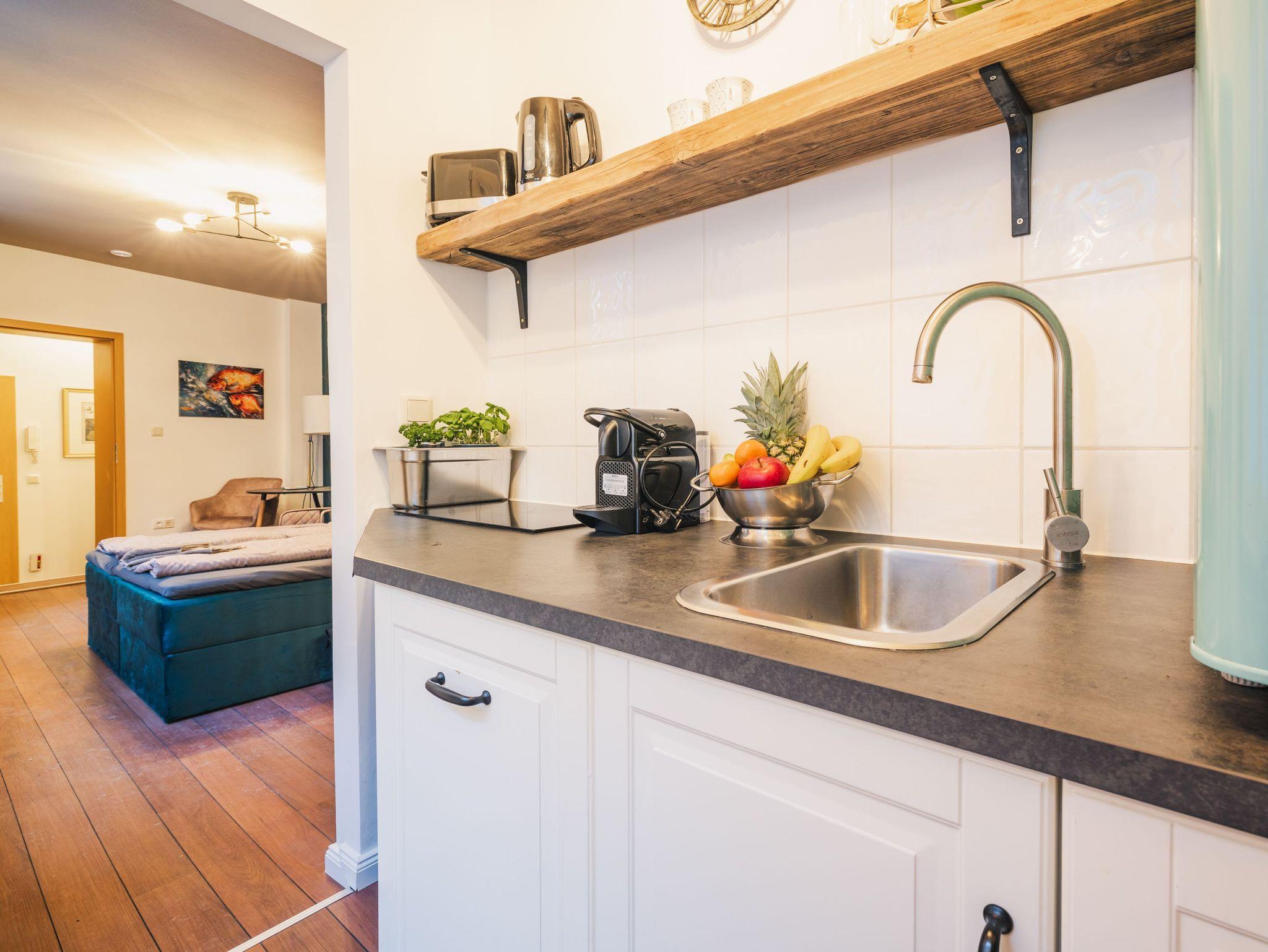 Jedes der drei Appartements ist geschmackvoll und individuell eingerichtet. Sie finden jeweils eine voll ausgestattete Küche vor.