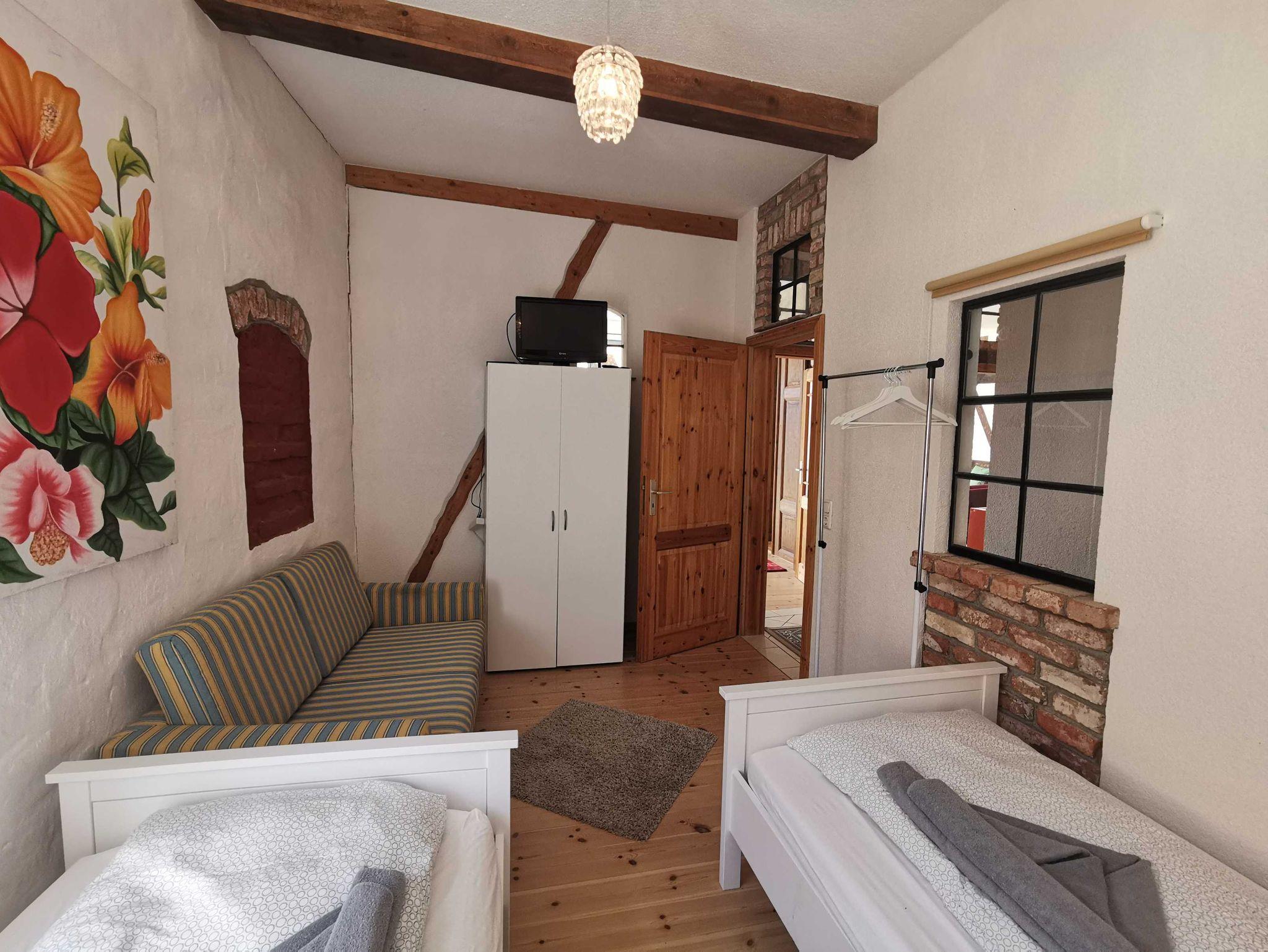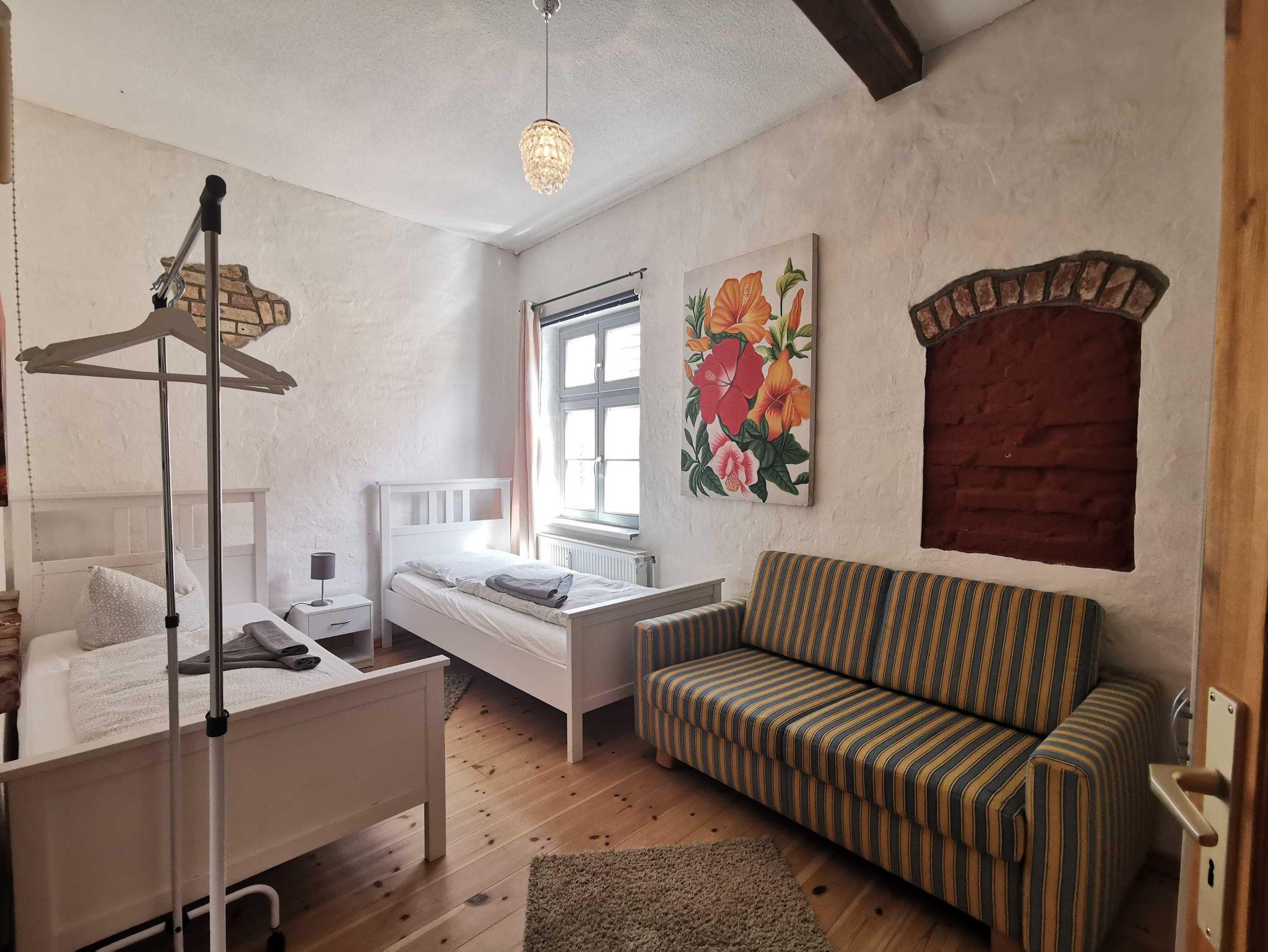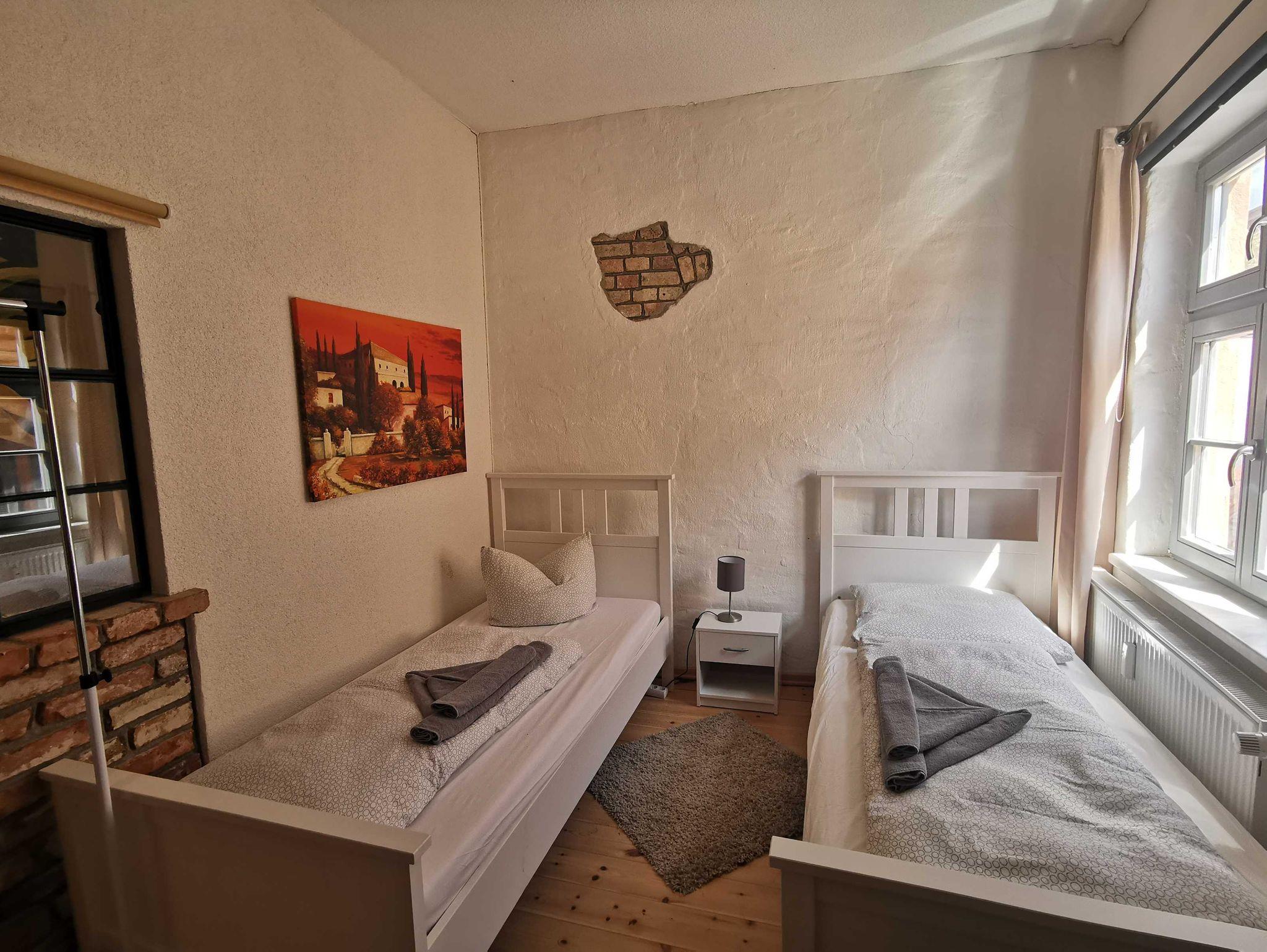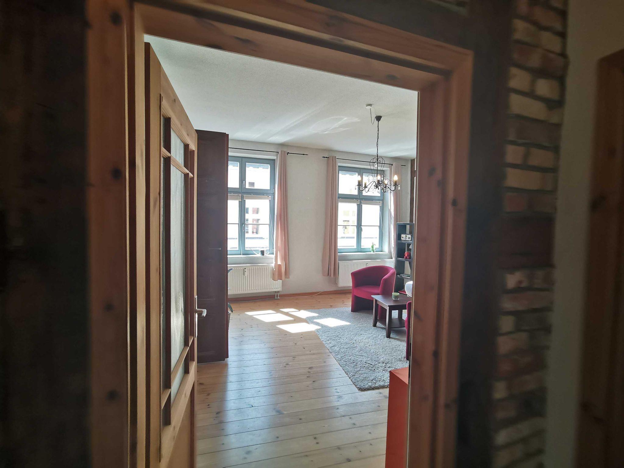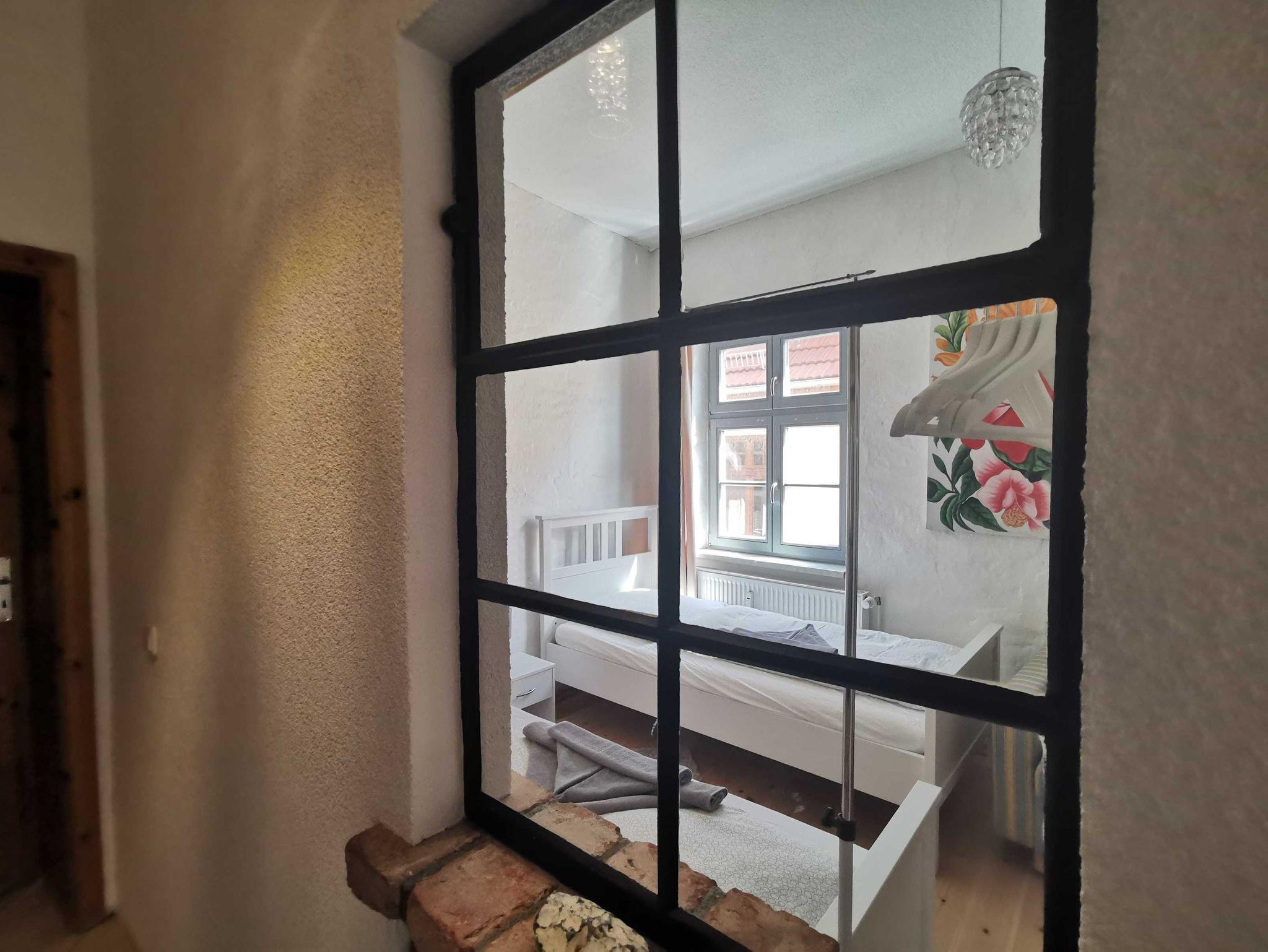 Unsere Ferienwohnung Utkiek 2, ideal für 2 ? 5 Personen, befindet sich im 2. OG in der Frankenstraße 49 in Stralsund, mit Dielen & Fliesen, offener Küche, Balkon, offenem historisches Fachwerk.