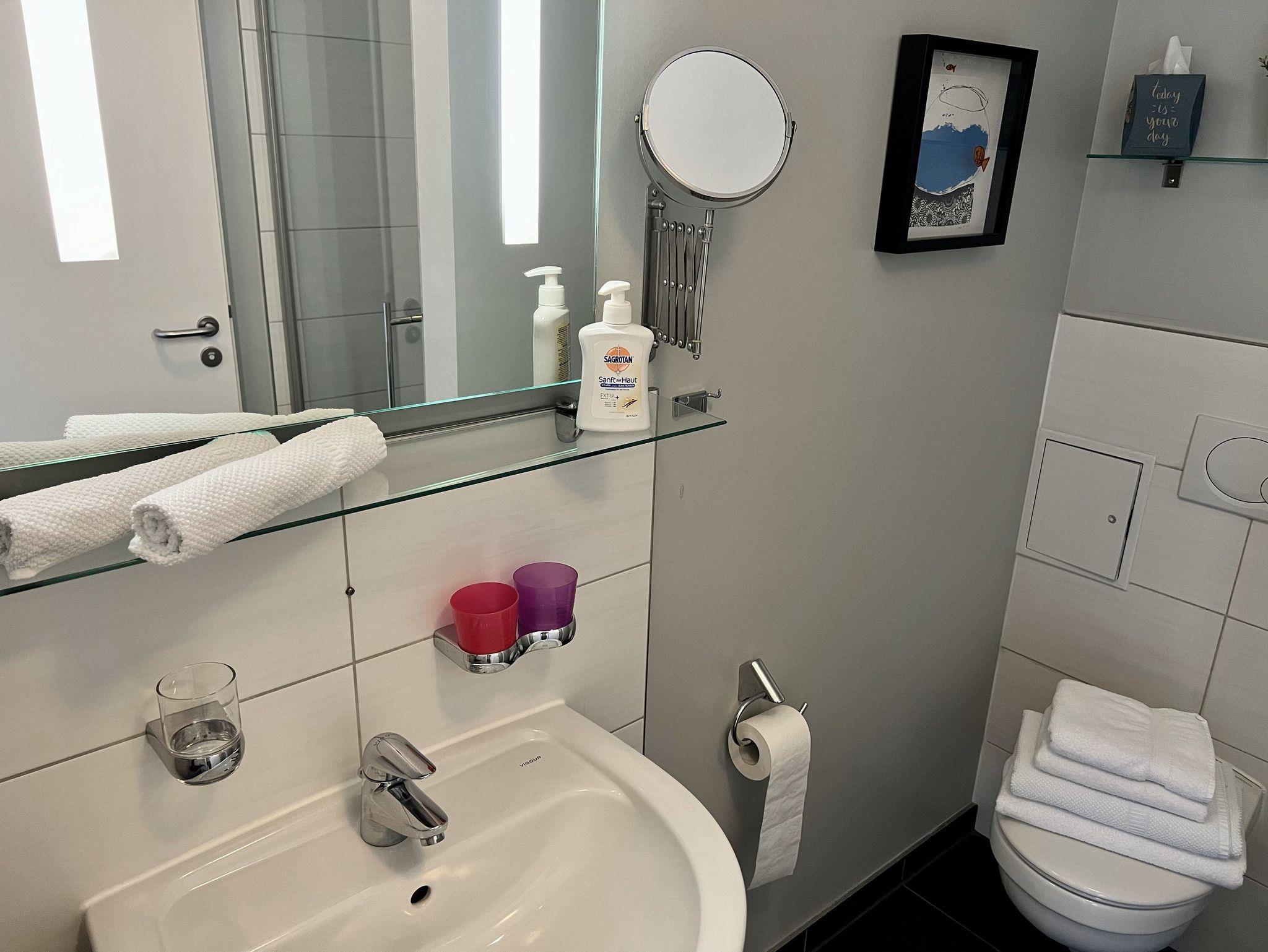 Parkmöglichkeiten sind nach Verfügbarkeit (je Wohnung 1 Parkplatz) vorhanden (6,00 Euro pro Tag).