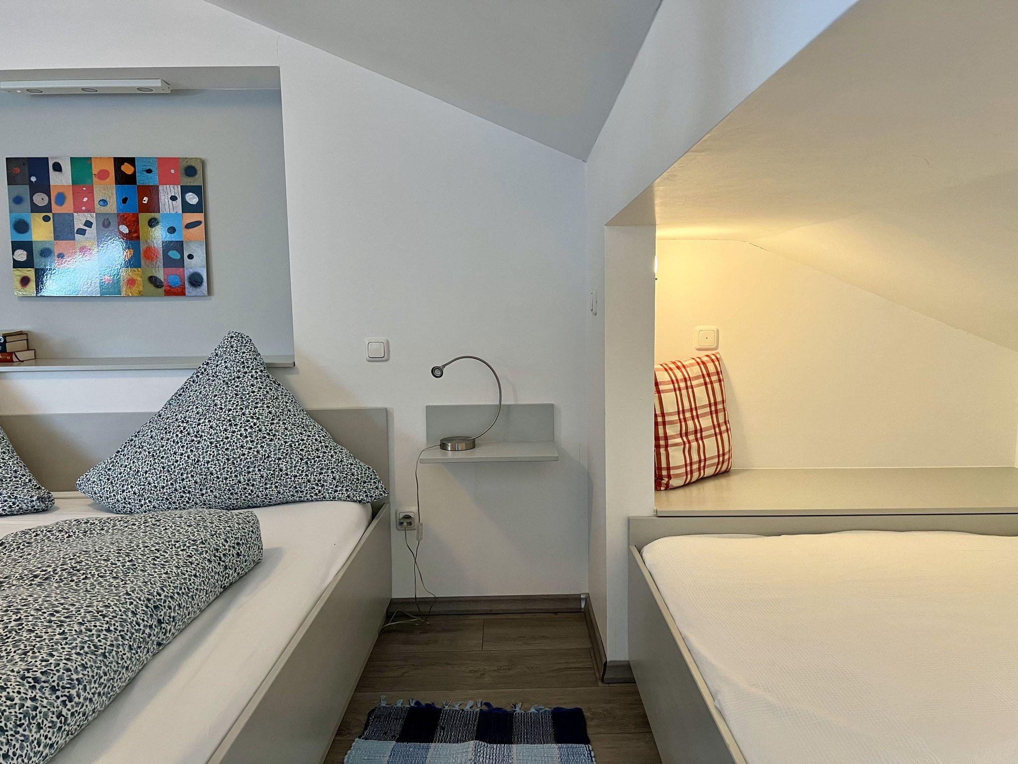 Die Nichtraucher-Wohnung ist geeignet für zwei bis maximal drei Personen, liegt im Dachgeschoss und ist über einen Fahrstuhl zu erreichen (Eingang Haus Palme 1).