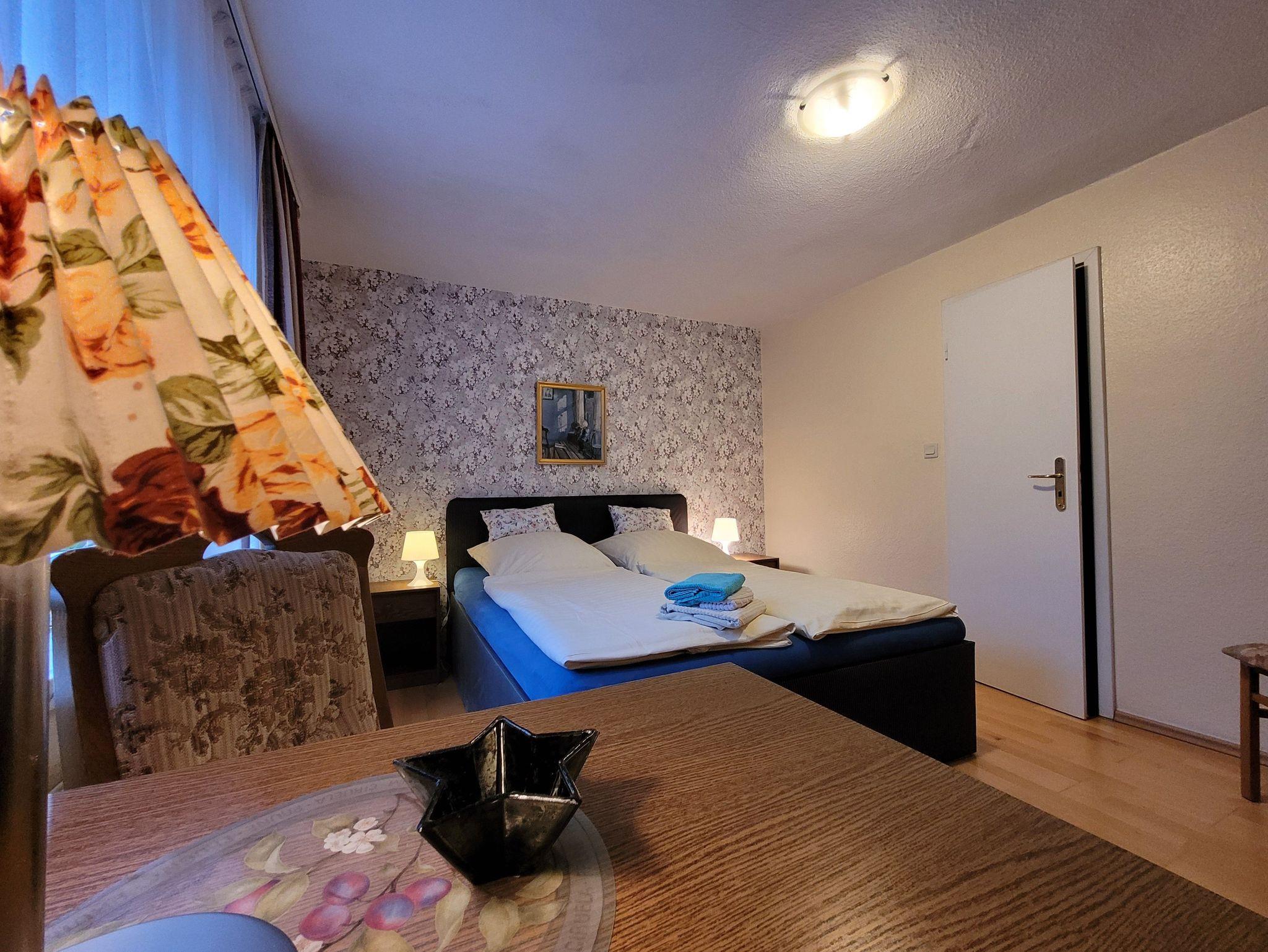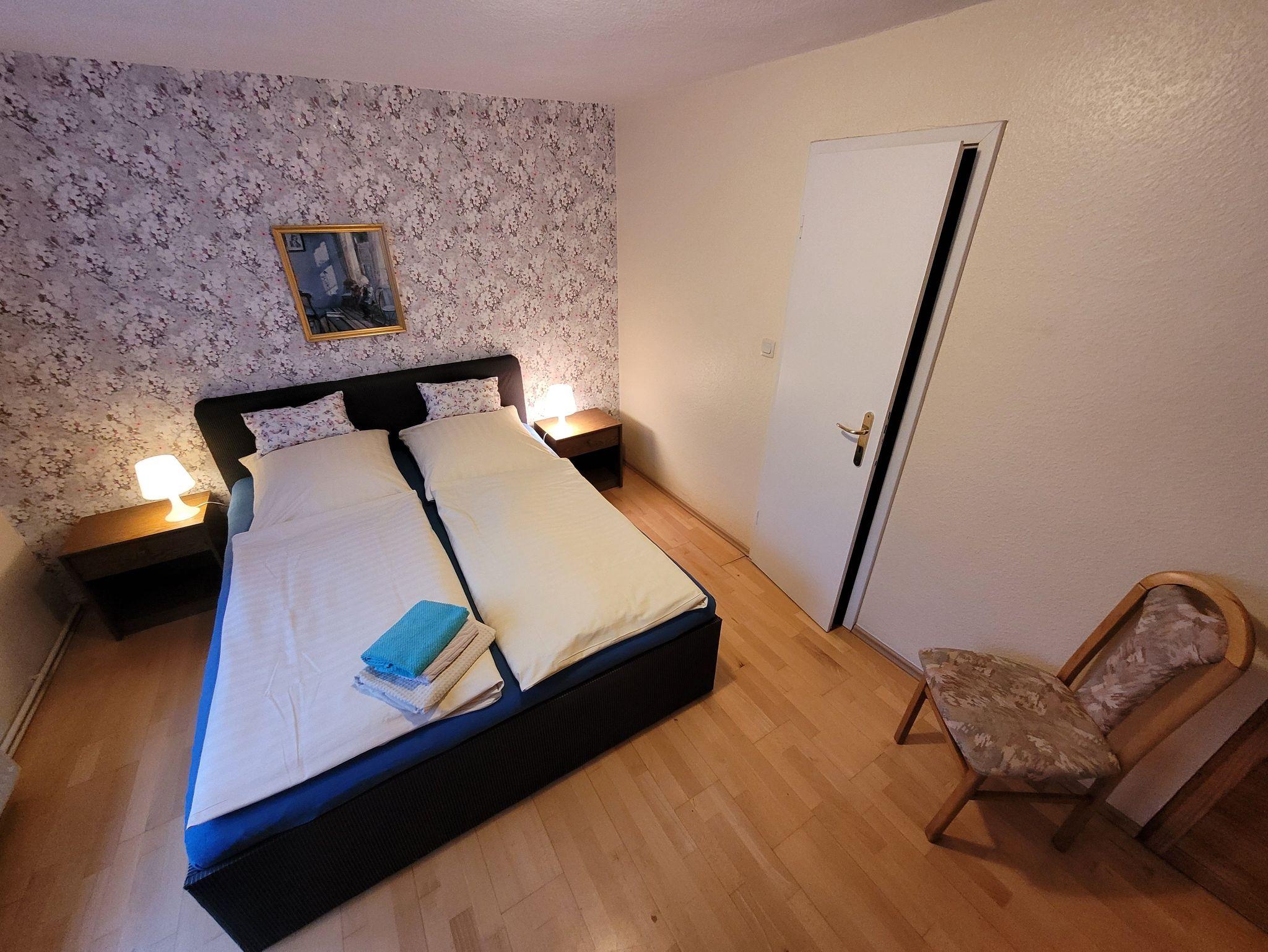 Unser zweckmäßiges Doppelzimmer verfügt über ein Doppelbett (180x200m) sowie Dusche/WC.