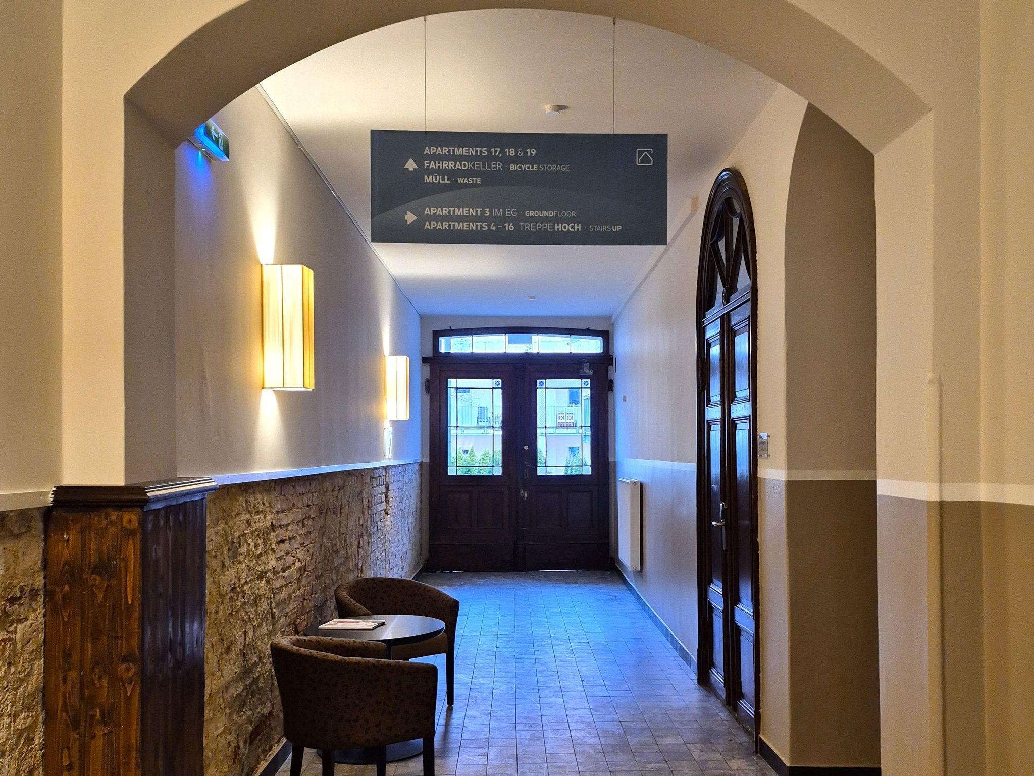 Die 16 Apartments verteilen sich auf 4 Etagen. Bitte beachten Sie, dass es aufgrund der historischen Bausstruktur keinen Fahrstuhl gibt.