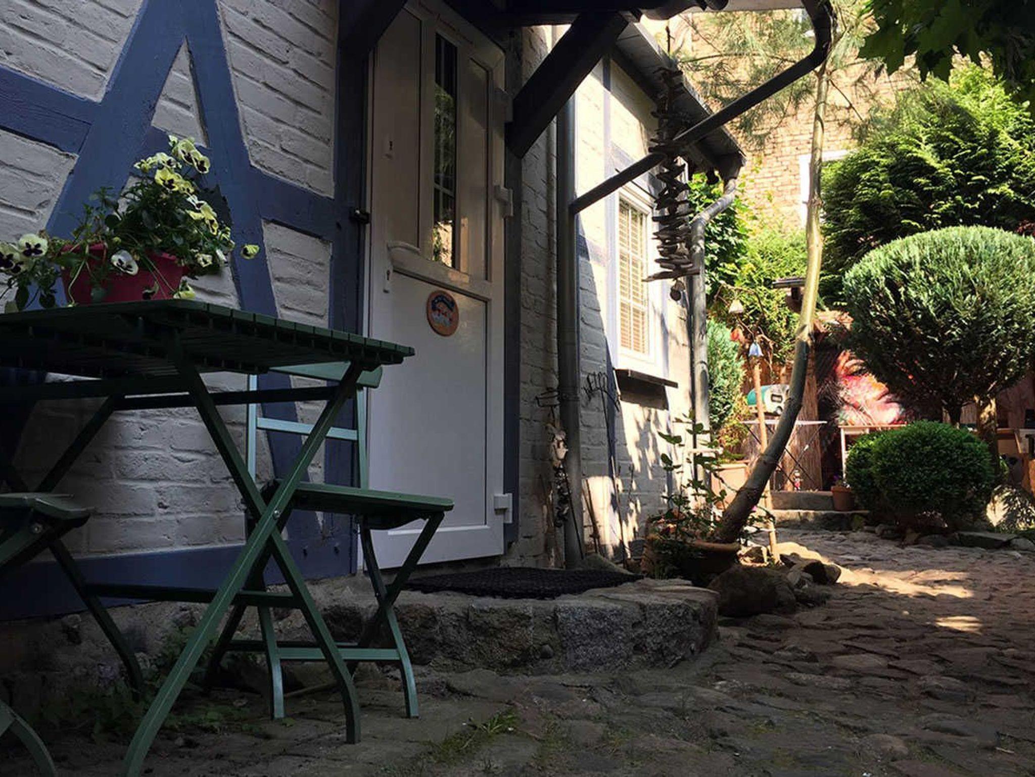 Unser kleines, aber feines Ferienhaus(ca 20 m² groß) liegt besonders ruhig, da es sich in einem wunderschön angelegten, begrünten Innenhof befindet. Das Ferienhaus befindet sich in der Frankenstraße 50, über 3 Stufen erreichbar zum Haupteingang.