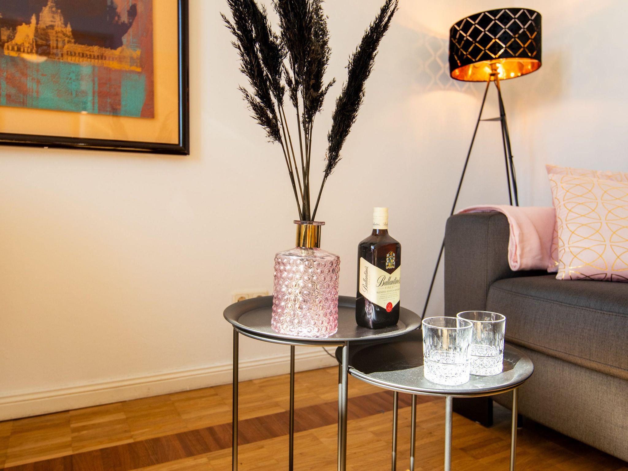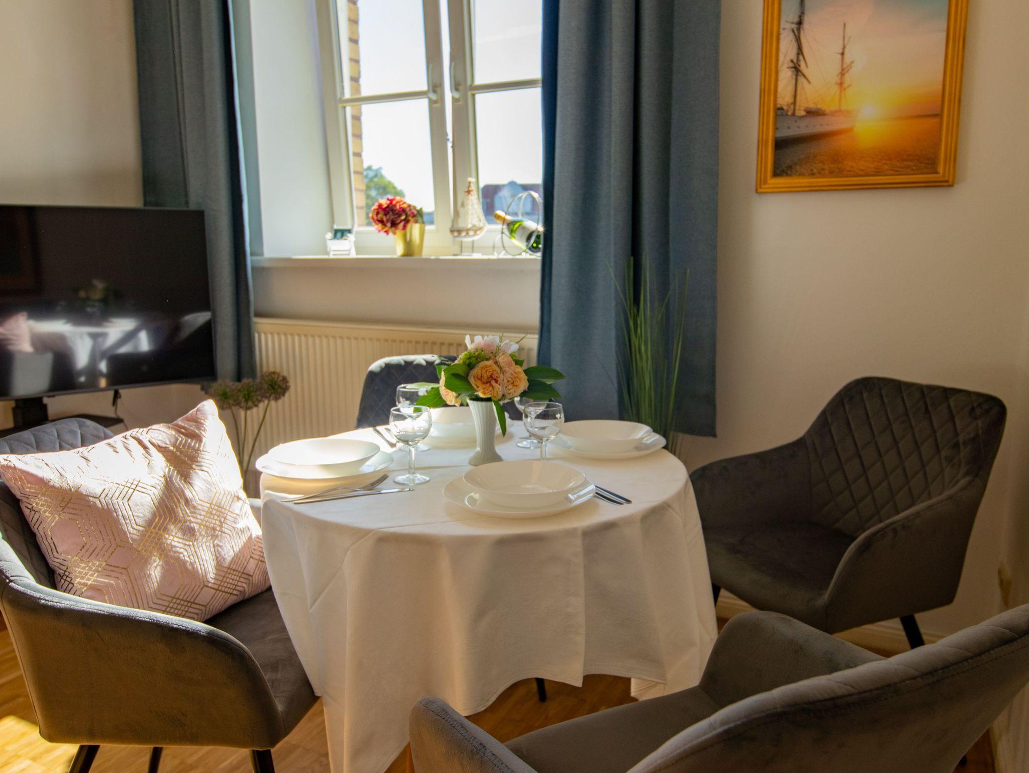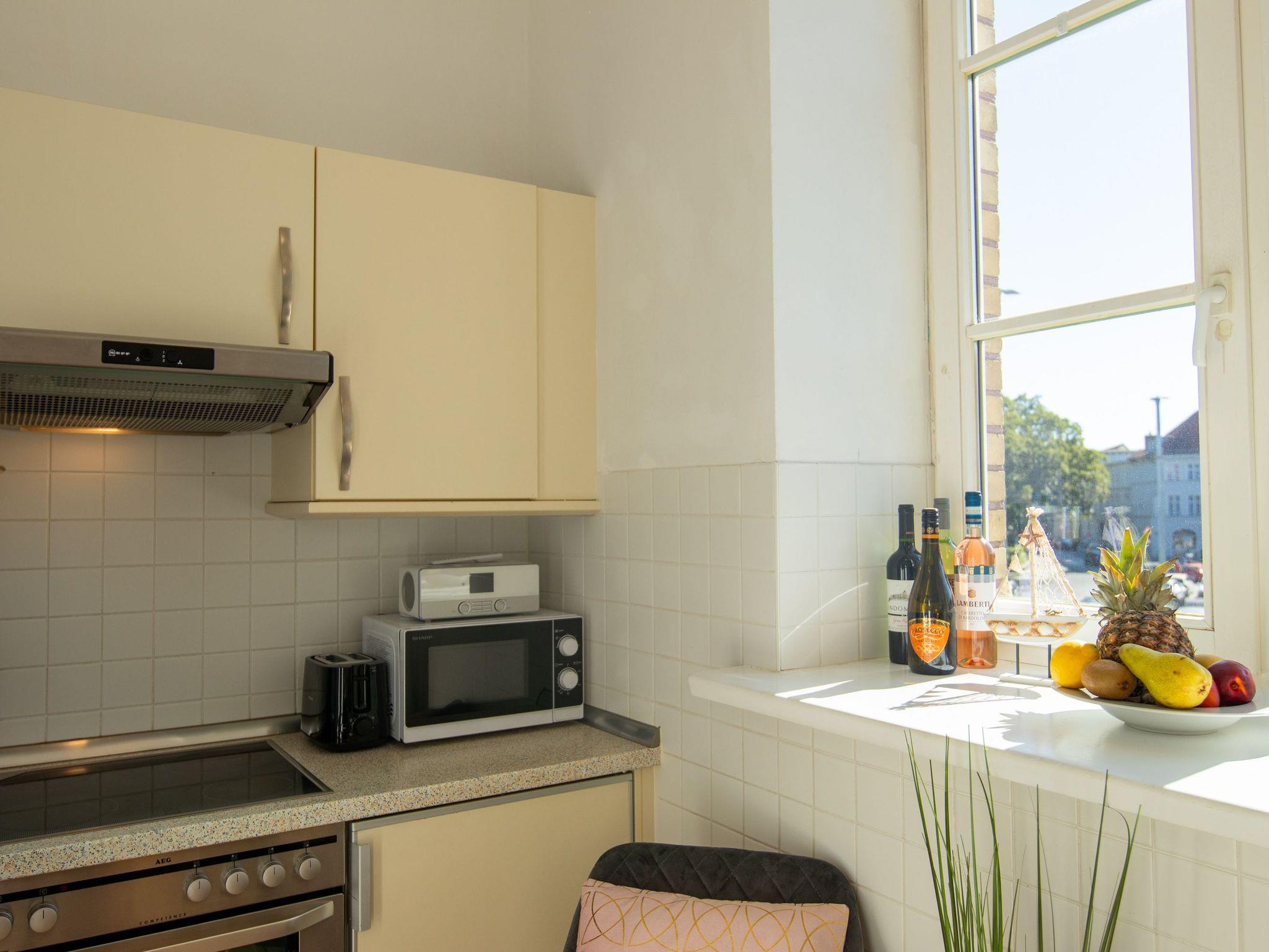 Das Altstadt-Studio 3 befindet sich im 1. OG am Neuen Markt in der Stralsunder Altstadt. Über den Fahrstuhl erreichen sie das moderne, helle Studio mit altbaustypischen hohen Decken. Hier stehen ihnen ein Schlafzimmer, ein Wohnzimmer mit Schlafsofa (160x200), TV und Essbereich, eine Küche und ein Bad mit Dusche zur Verfügung. In der Küche finden sie neben Backofen, Herd, Kühlschrank und Mikrowelle auch Kochutensilien für den täglichen Bedarf. Das Schlafzimmer ist mit einem Doppelbett (180x200) und einem Deckenventilator ausgestattet.