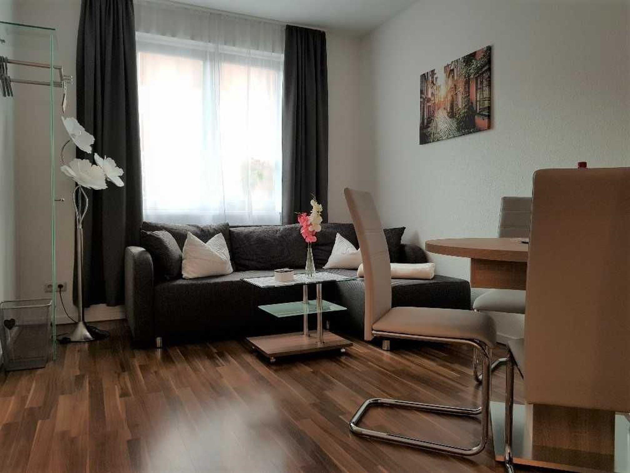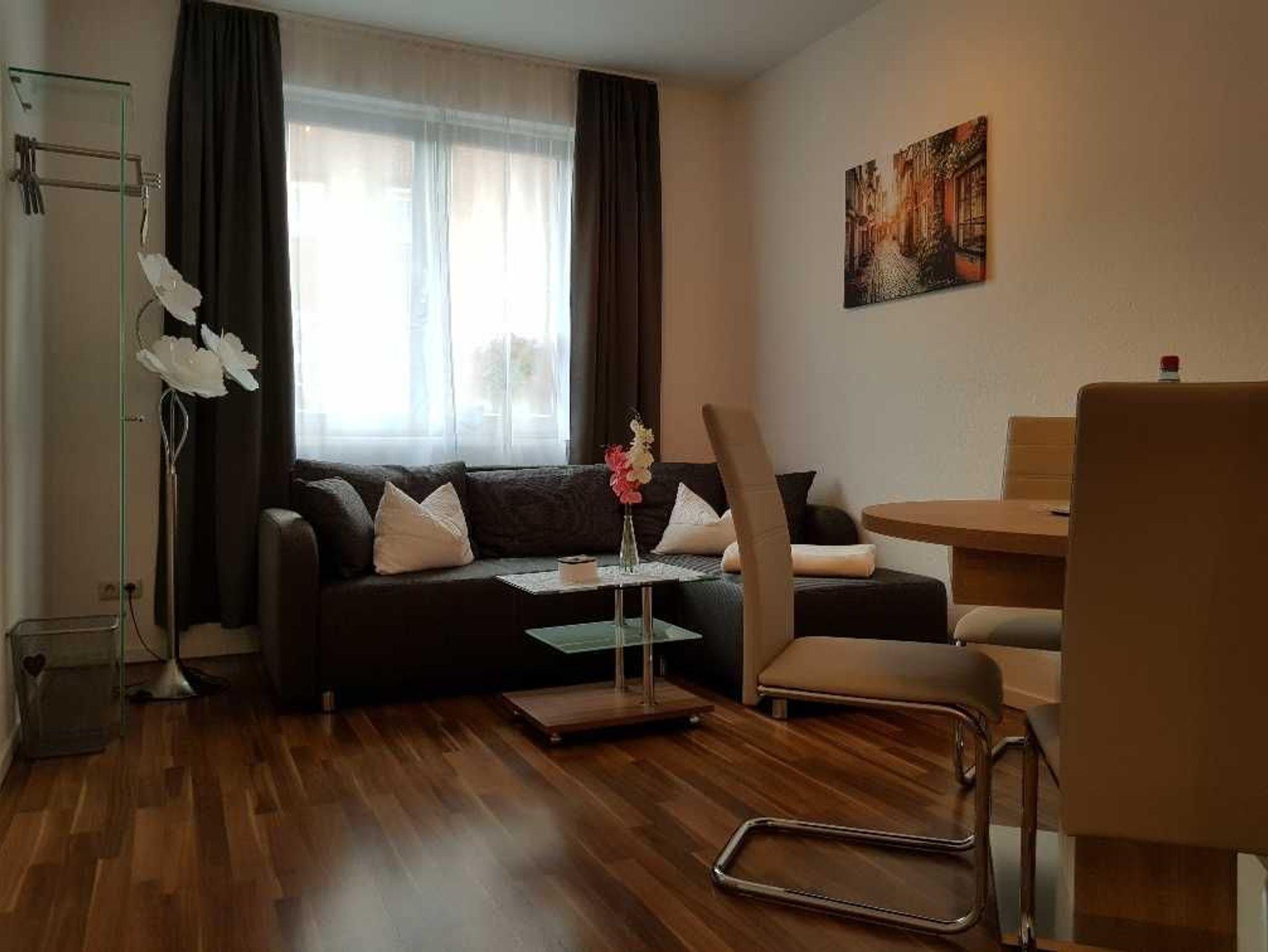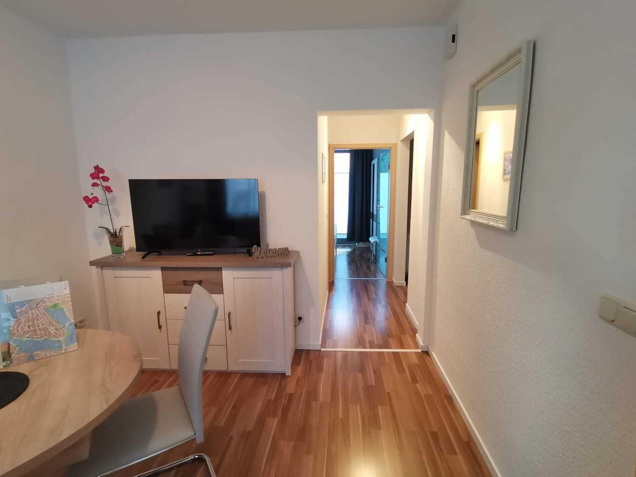 Die Nichtraucher-Ferienwohnung liegt im Erdgeschoß (nur 1 Stufe) eines Stadthauses. Sie verfügt über ein modern-komfortabel eingerichtetes Wohnzimmer mit Laminatboden, großzügiger Couchecke (mit Schlaffunktion), Kommode mit Flachbild-TV sowie Essgarnitur. Das Schlafzimmer besticht durch seinen Ausblick auf den Kirchturm der Marienkirche und ist mit Laminat, Doppelbett (2 getrennte Matratzen 0,90 x 2,00m) mit Topperauflagen und Kleiderschrank ausgestattet. Bettwäsche und Handtücher sind in der Erstausstattung im Preis enthalten. Zusätzliche Bandscheibenkissen liegen bereit.