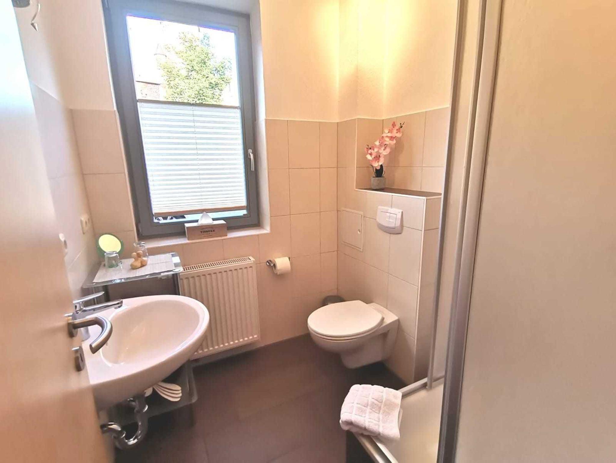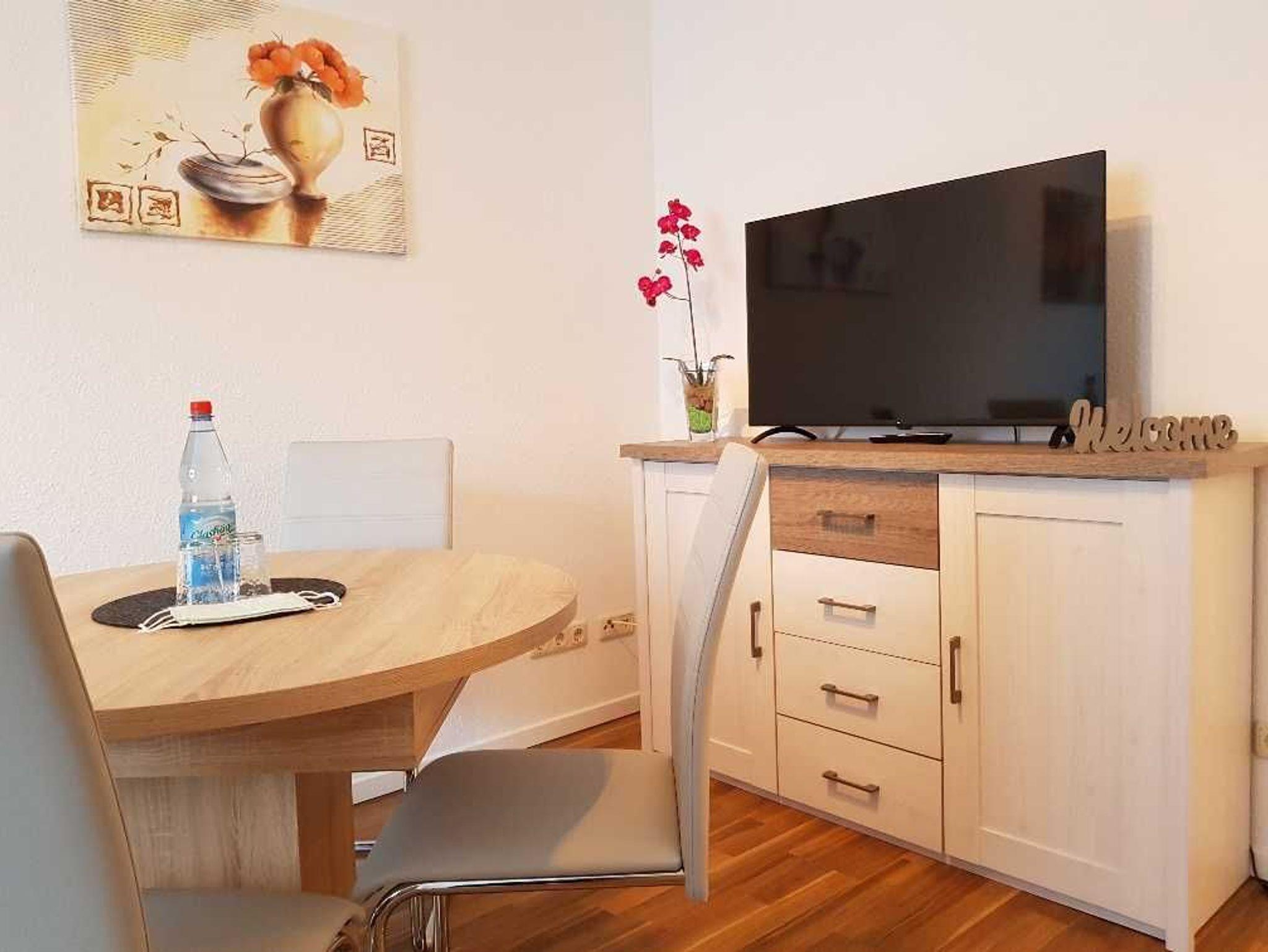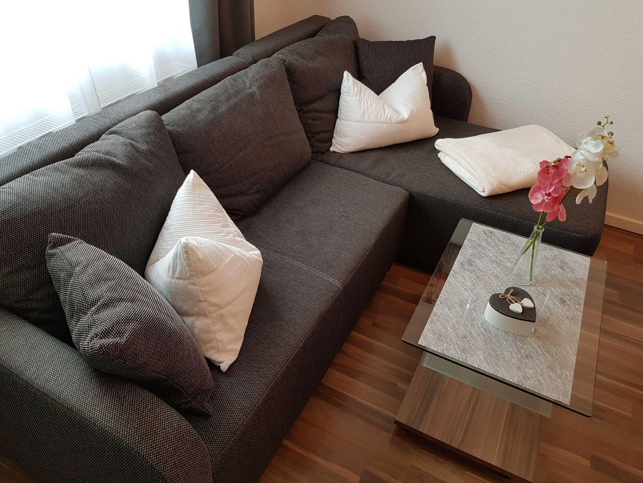 Die Nichtraucher-Ferienwohnung liegt im Erdgeschoß (nur 1 Stufe) eines Stadthauses. Sie verfügt über ein modern-komfortabel eingerichtetes Wohnzimmer mit Laminatboden, großzügiger Couchecke (mit Schlaffunktion), Kommode mit Flachbild-TV sowie Essgarnitur. Das Schlafzimmer besticht durch seinen Ausblick auf den Kirchturm der Marienkirche und ist mit Laminat, Doppelbett (2 getrennte Matratzen 0,90 x 2,00m) mit Topperauflagen und Kleiderschrank ausgestattet. Bettwäsche und Handtücher sind in der Erstausstattung im Preis enthalten. Zusätzliche Bandscheibenkissen liegen bereit.