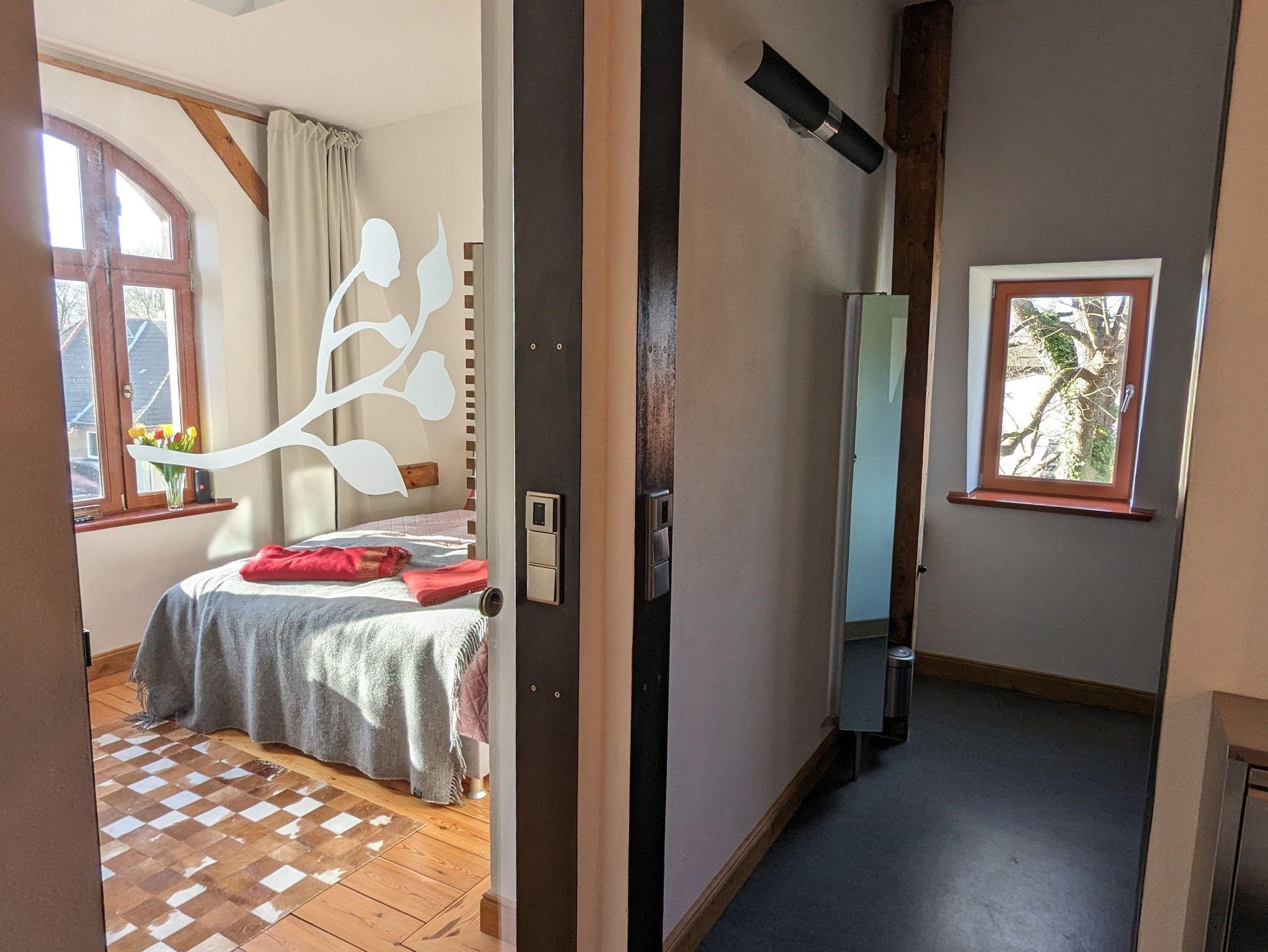 Bei der Sanierung verwendeten wir Lehmputz und sie wird mit Strahlungswärme Heizkörpern beheizt.