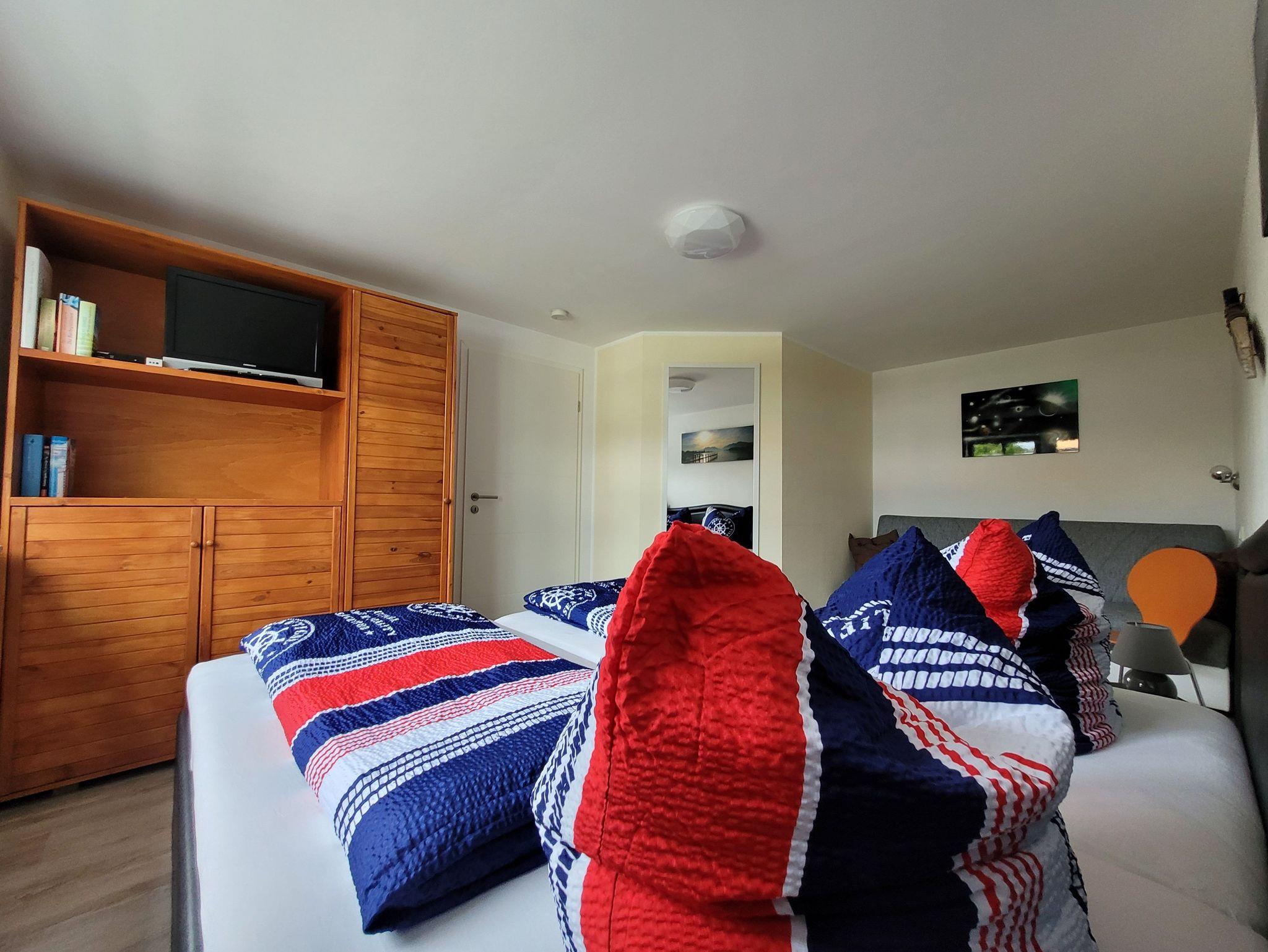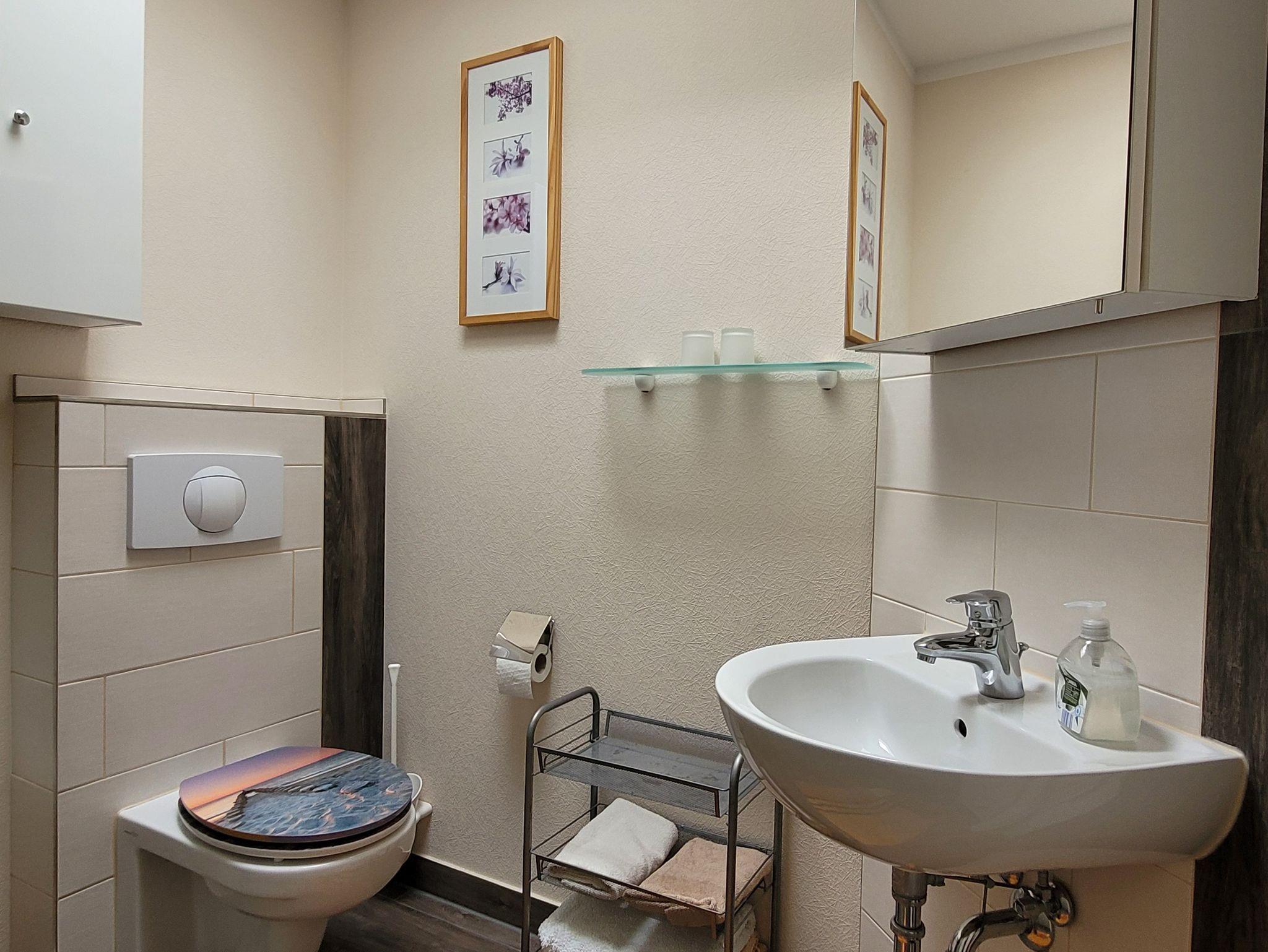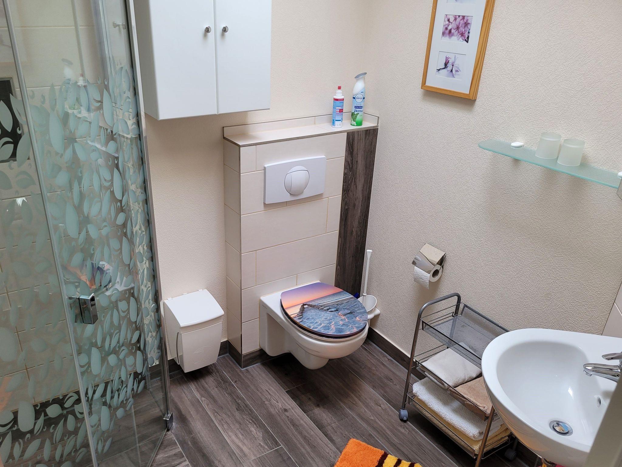 Modern eingerichtete 2-Raum-Ferienwohnung mit Schlafzimmer, Wohnzimmer mit offener Küche, Badezimmer und gemütlicher überdachter Sonnenterrasse. Die Bushaltestelle (Sophienweg) der Linie 4 befindet sich nur ca. 250m entfernt.