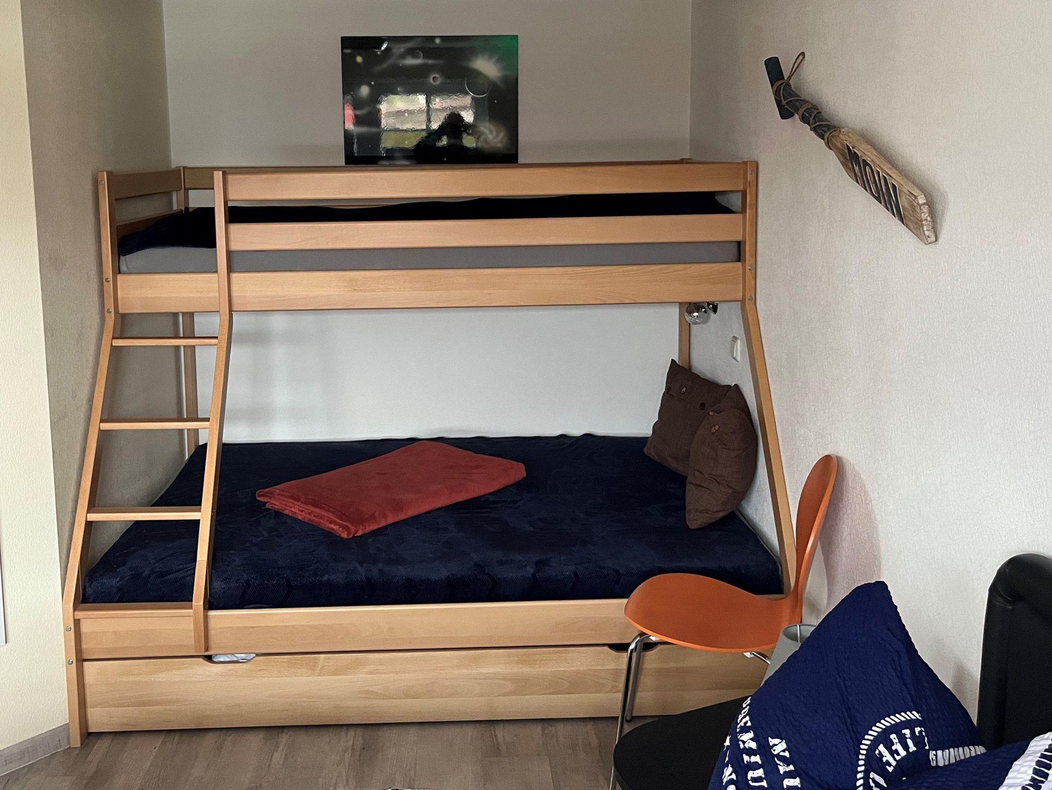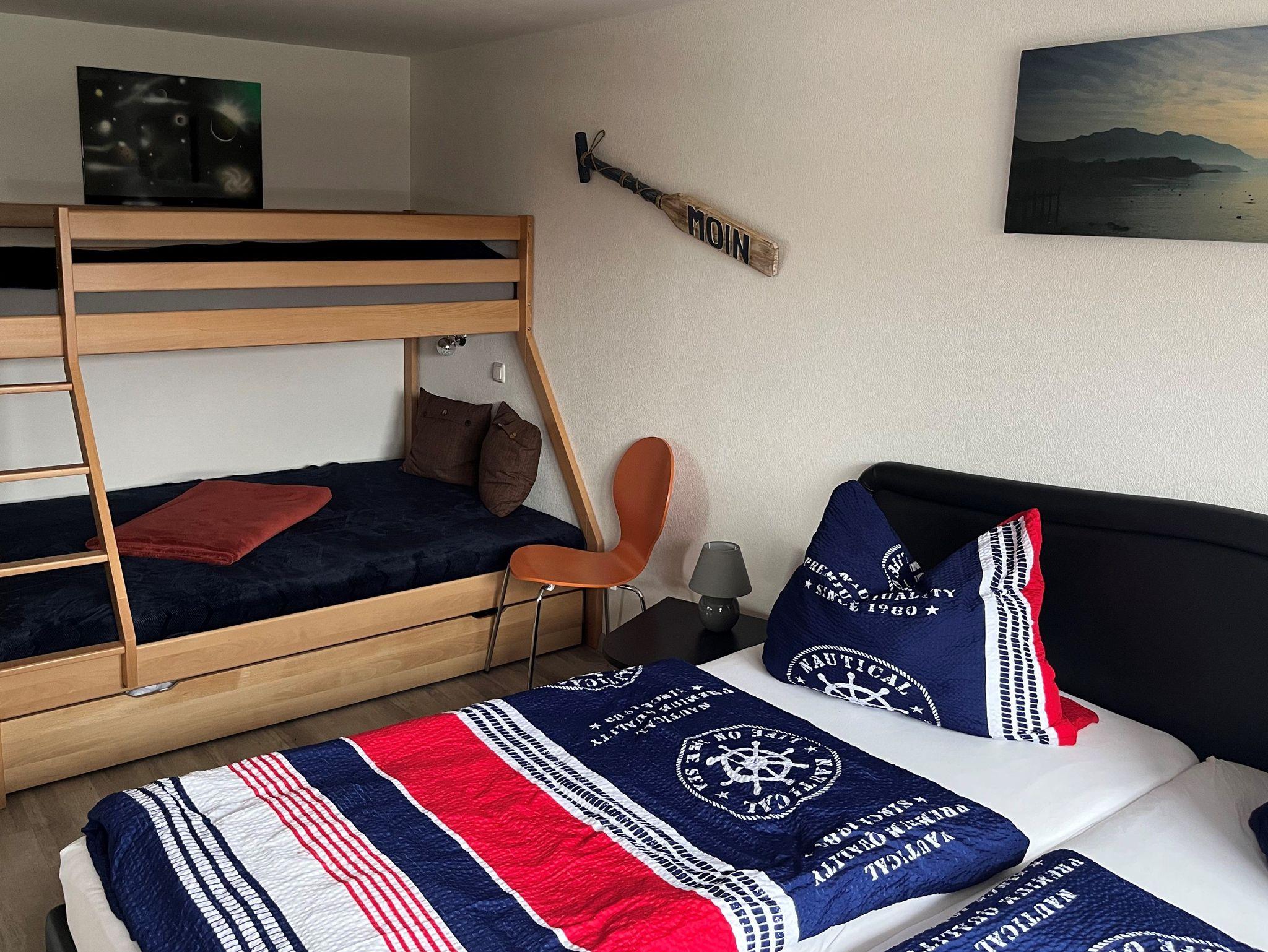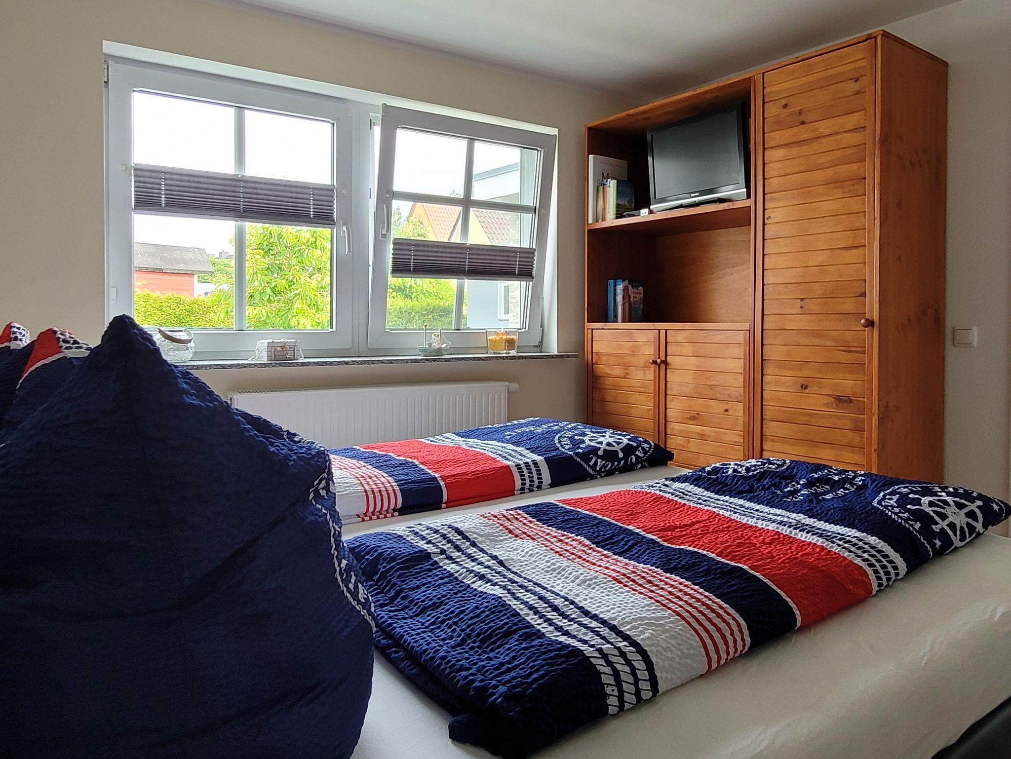 Modern eingerichtete 2-Raum-Ferienwohnung mit Schlafzimmer, Wohnzimmer mit offener Küche, Badezimmer und gemütlicher überdachter Sonnenterrasse. Die Bushaltestelle (Sophienweg) der Linie 4 befindet sich nur ca. 250m entfernt.