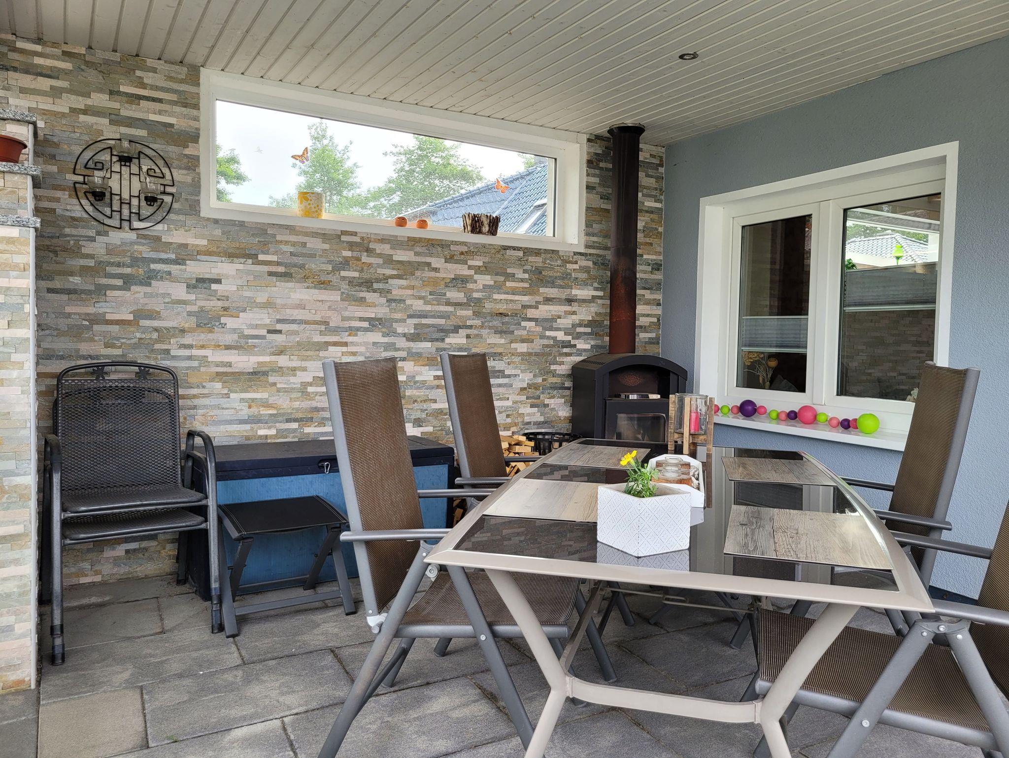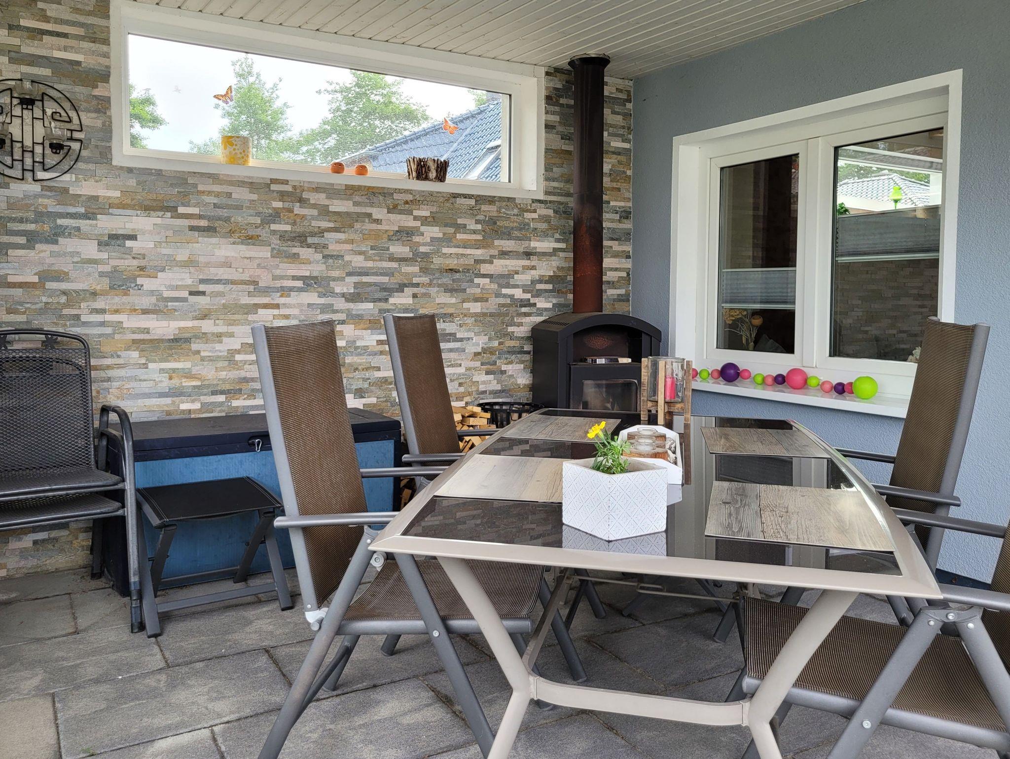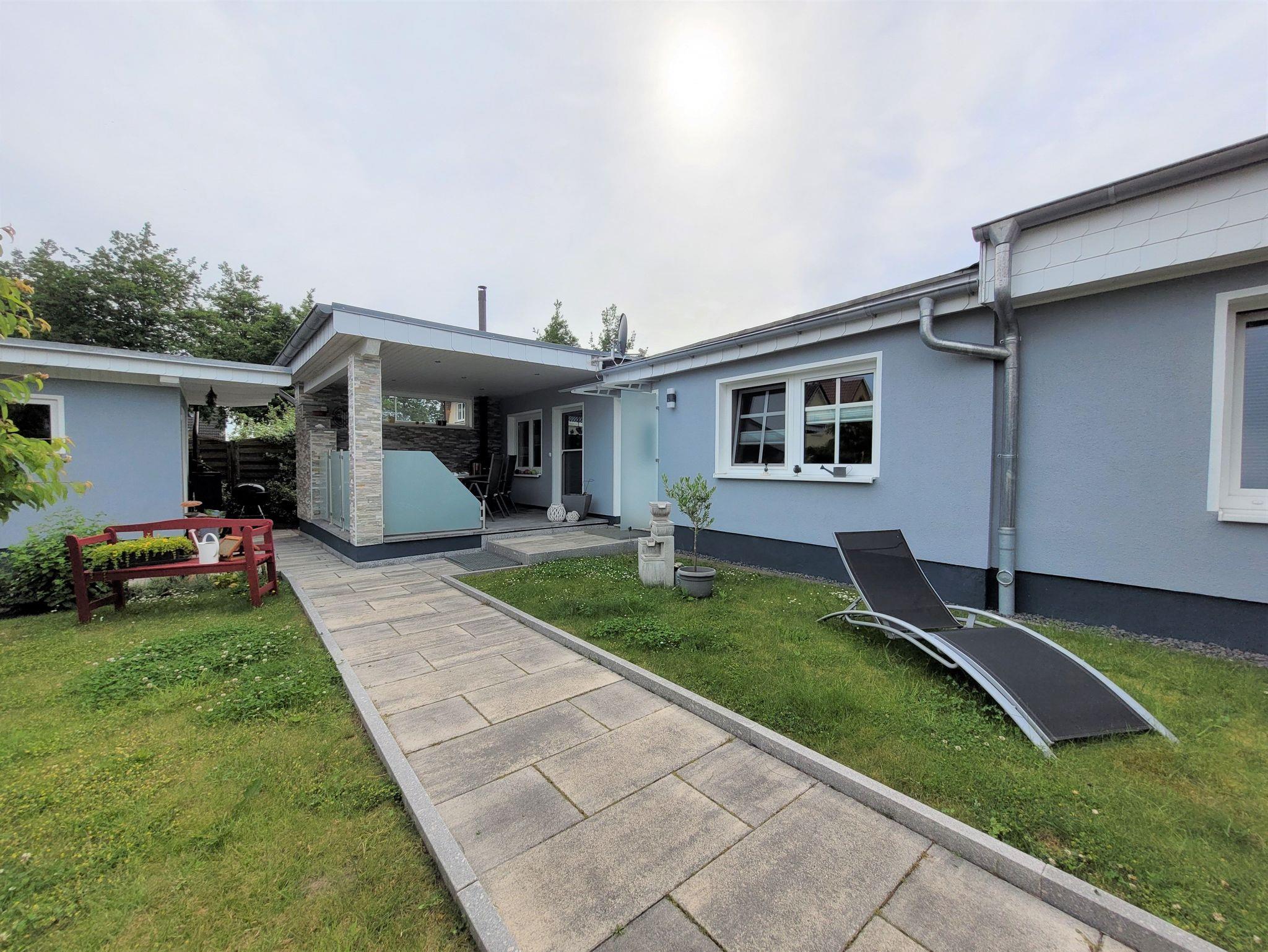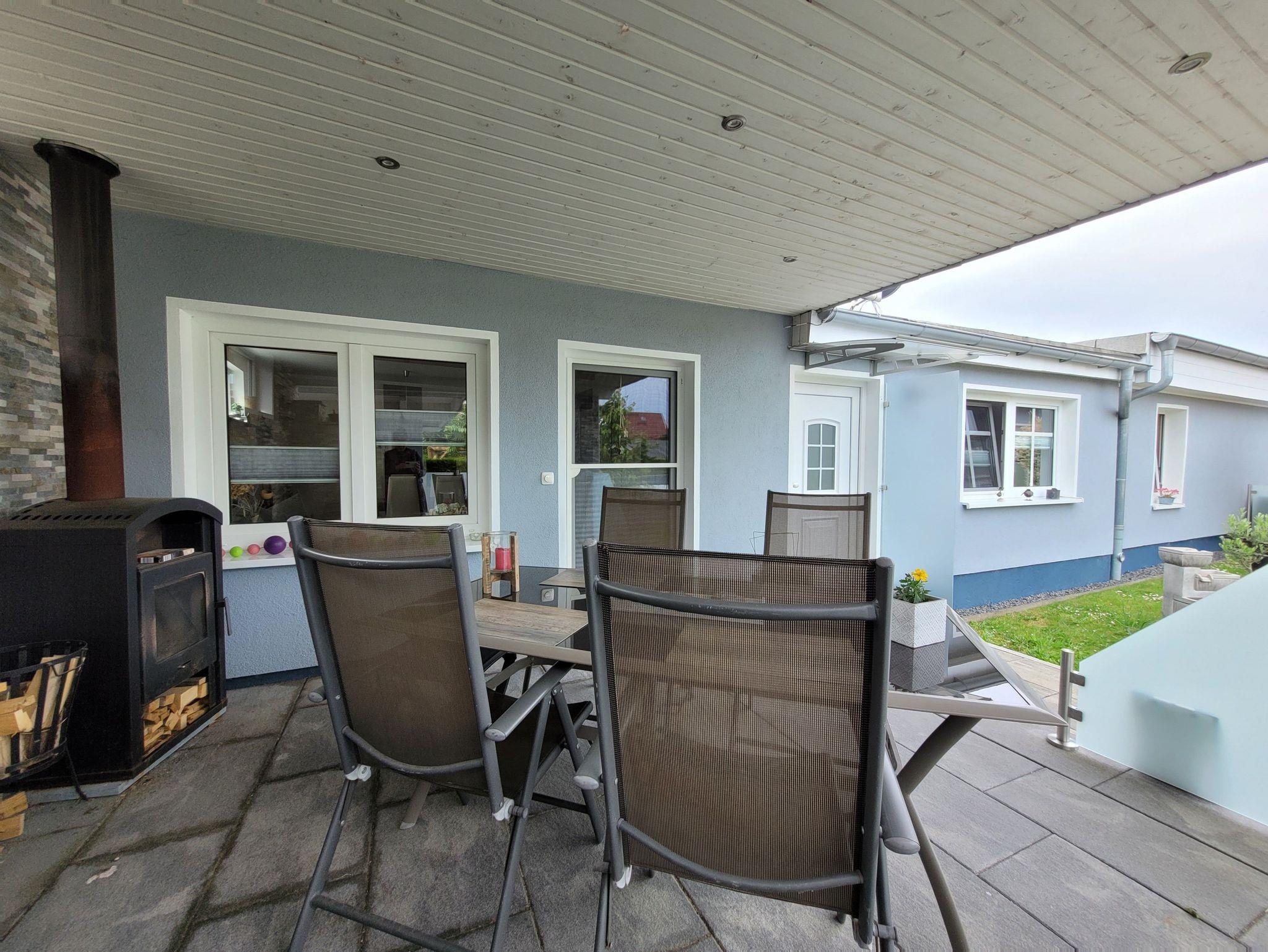 Sie ist ausgestattet mit einem Flur, einem Bad mit ebenerdiger Dusche, einem Schlafzimmer mit Doppelbett (1,80 Meter breit) und Schlafcouch, einem Wohnzimmer mit integrierter Küche sowie einem Essbereich ausgestattet. Ein TV ist natürlich sowohl im WZ, als auch im SZ vorhanden, ebenso wie kostenfreies W-LAN. Die Küche ist mit einem 2 flammigen Induktionsherd und einem Kühlschrank ausgerüstet, eine gemütliche überdachte Terrasse lädt zum Verweilen und Relaxen ein.